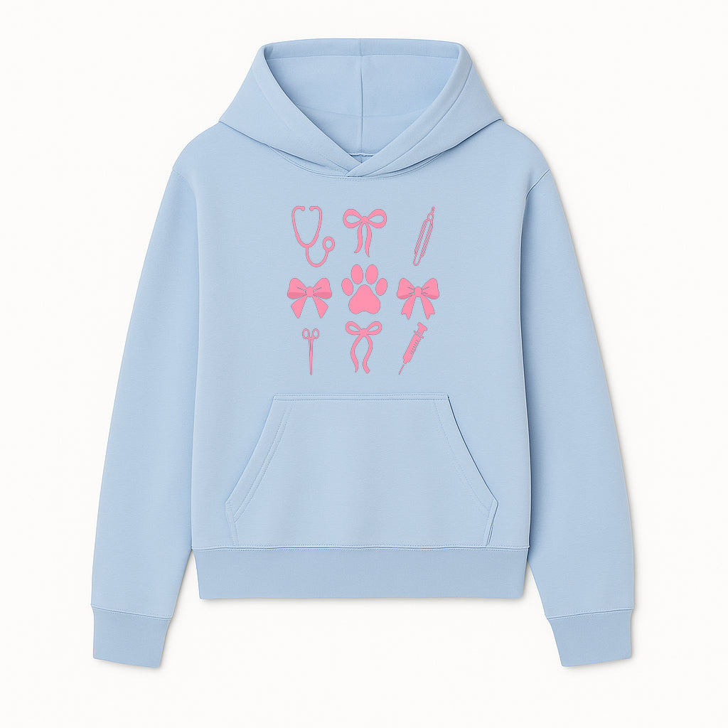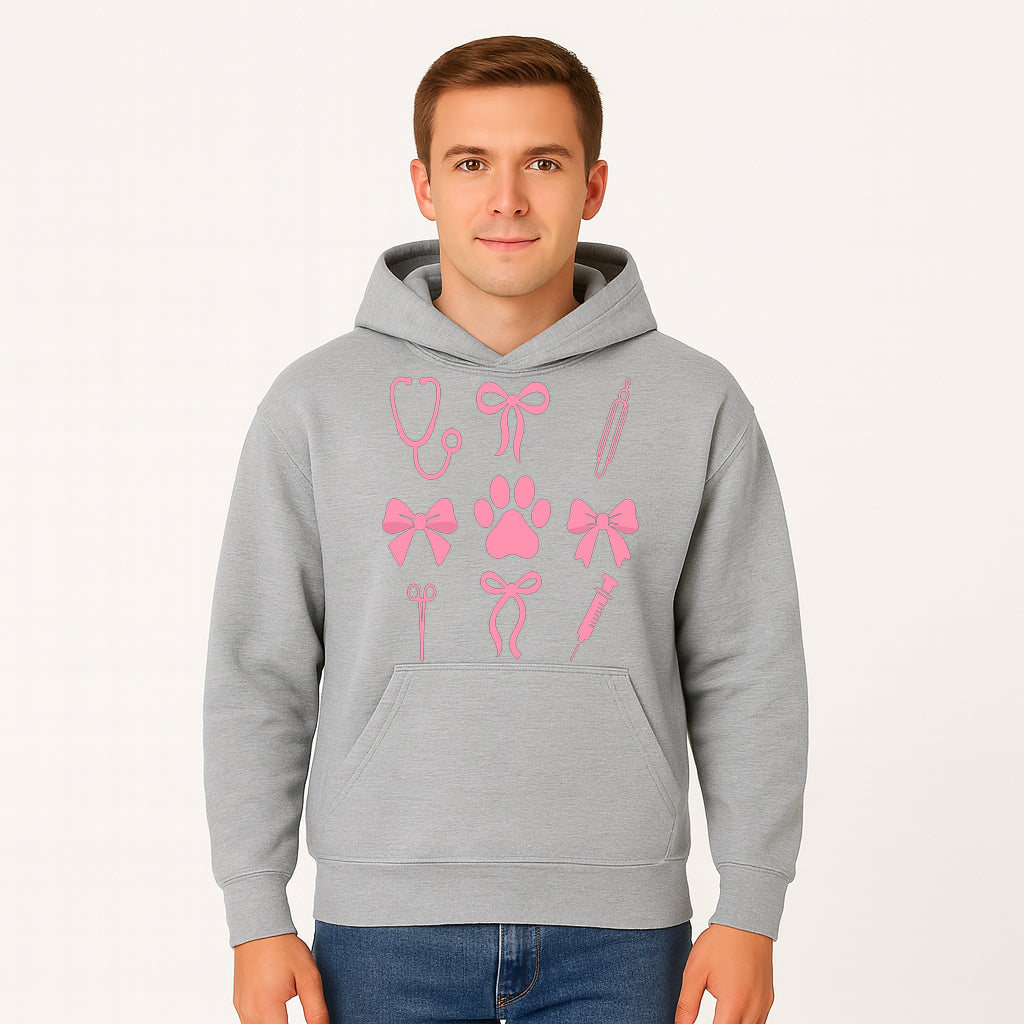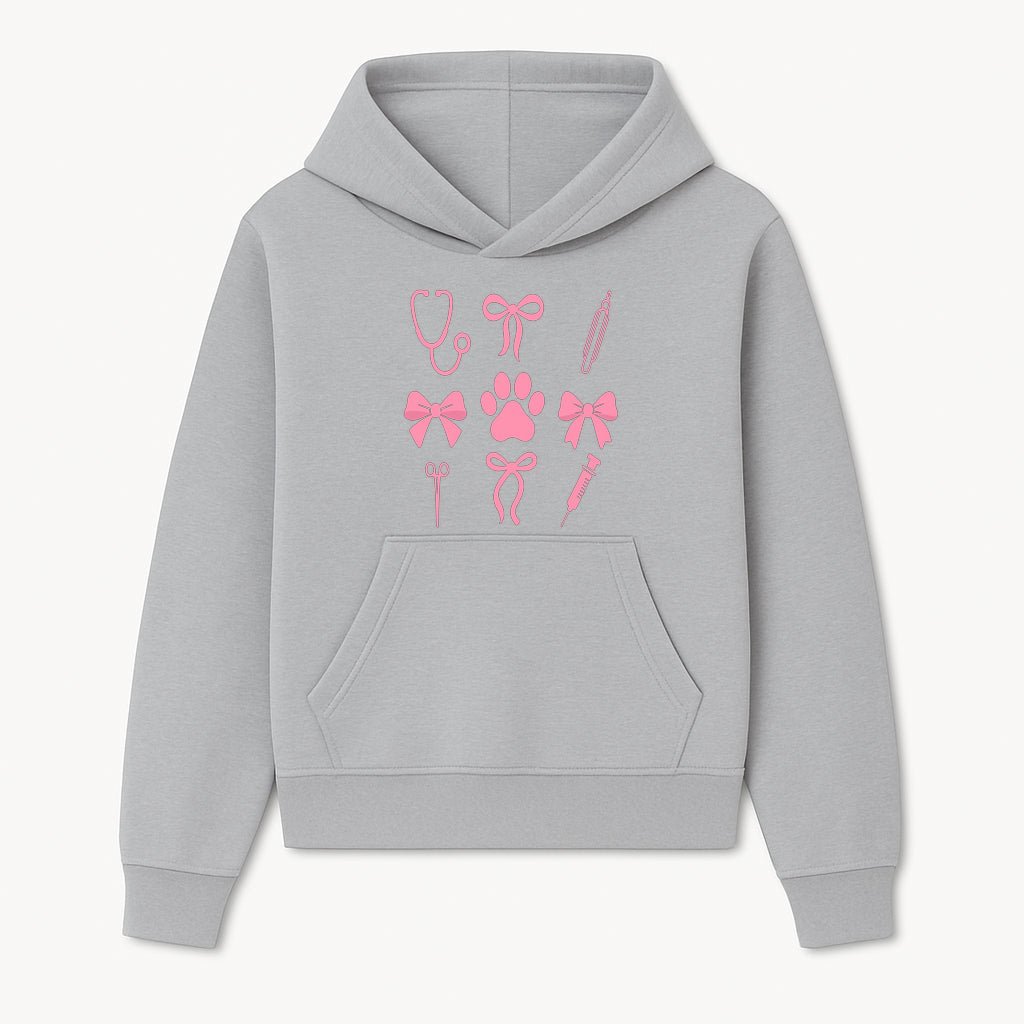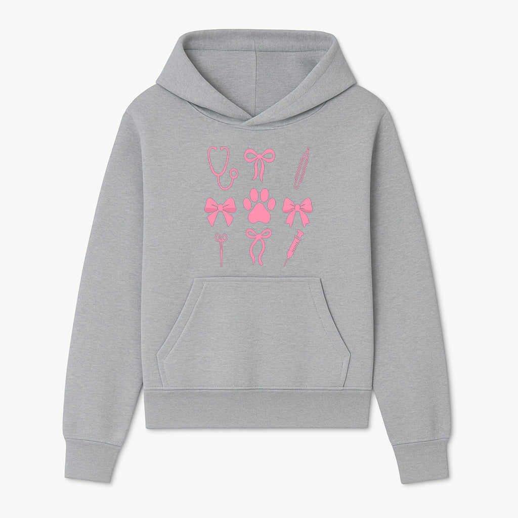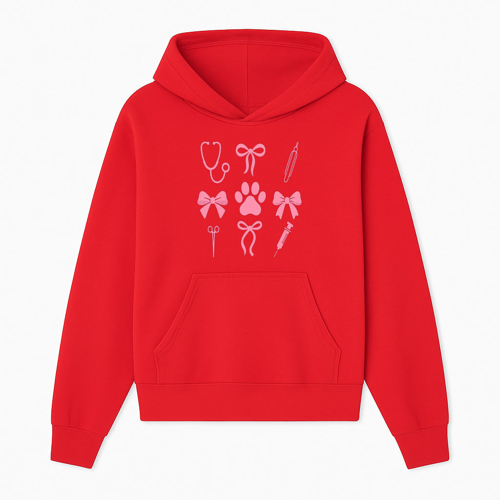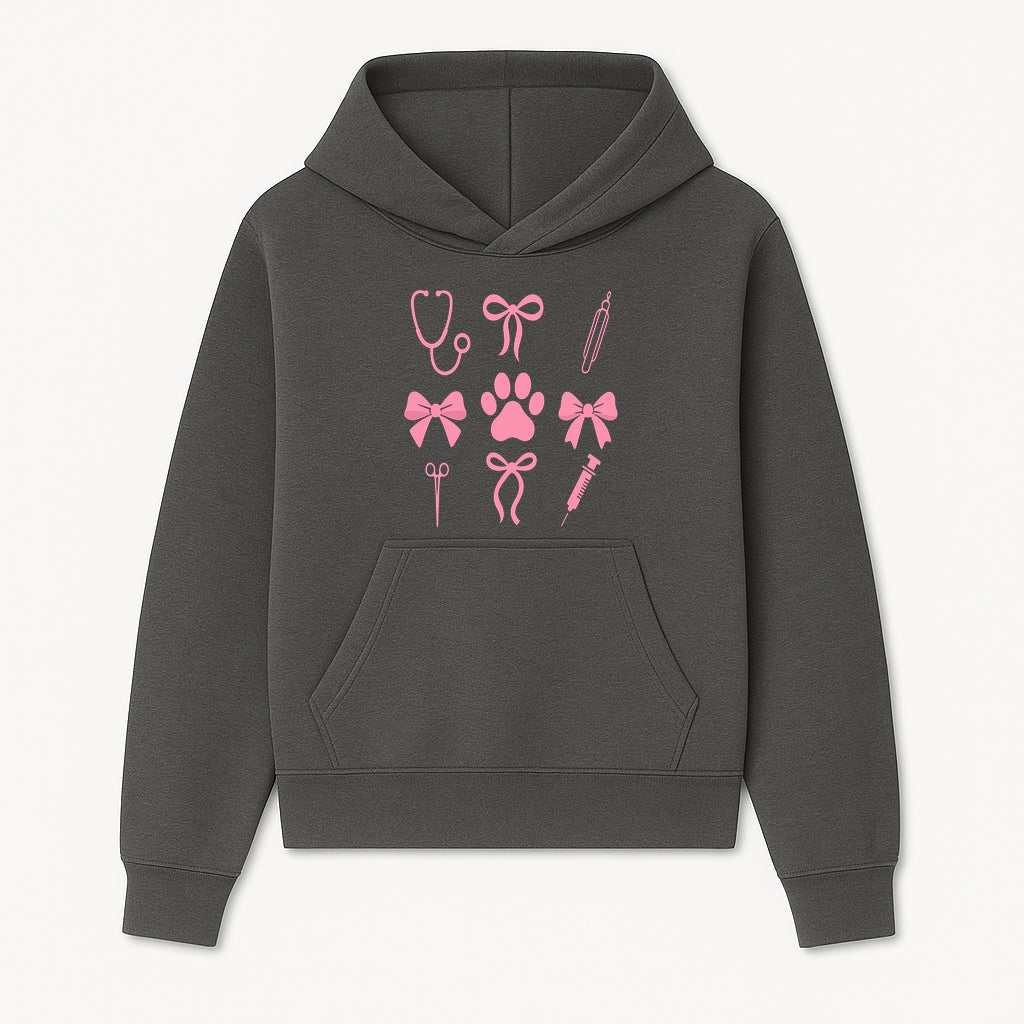 Pink Veterinary Theme Clipart | Pet Care Stethoscope, Paw Prints, Syringe & Bows | Cute Digital Graphics for Animal Lovers - Hoodie