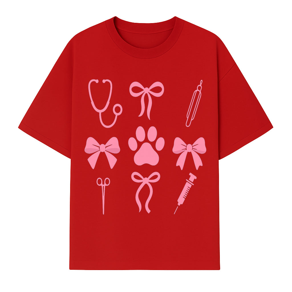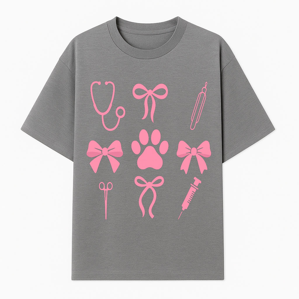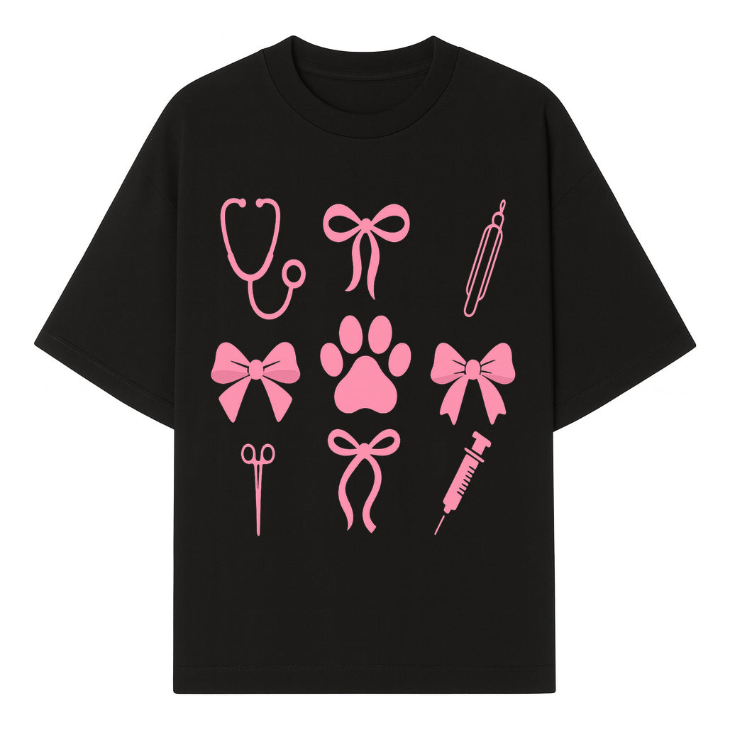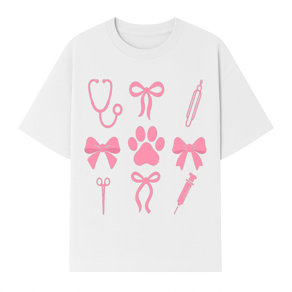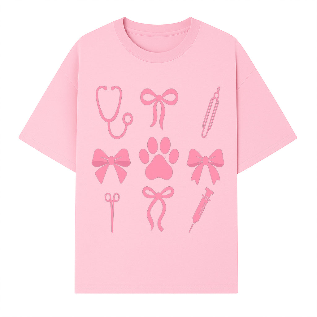Pink Veterinary Theme Clipart | Pet Care Stethoscope, Paw Prints, Syringe & Bows | Cute Digital Graphics for Animal Lovers - T-shirt