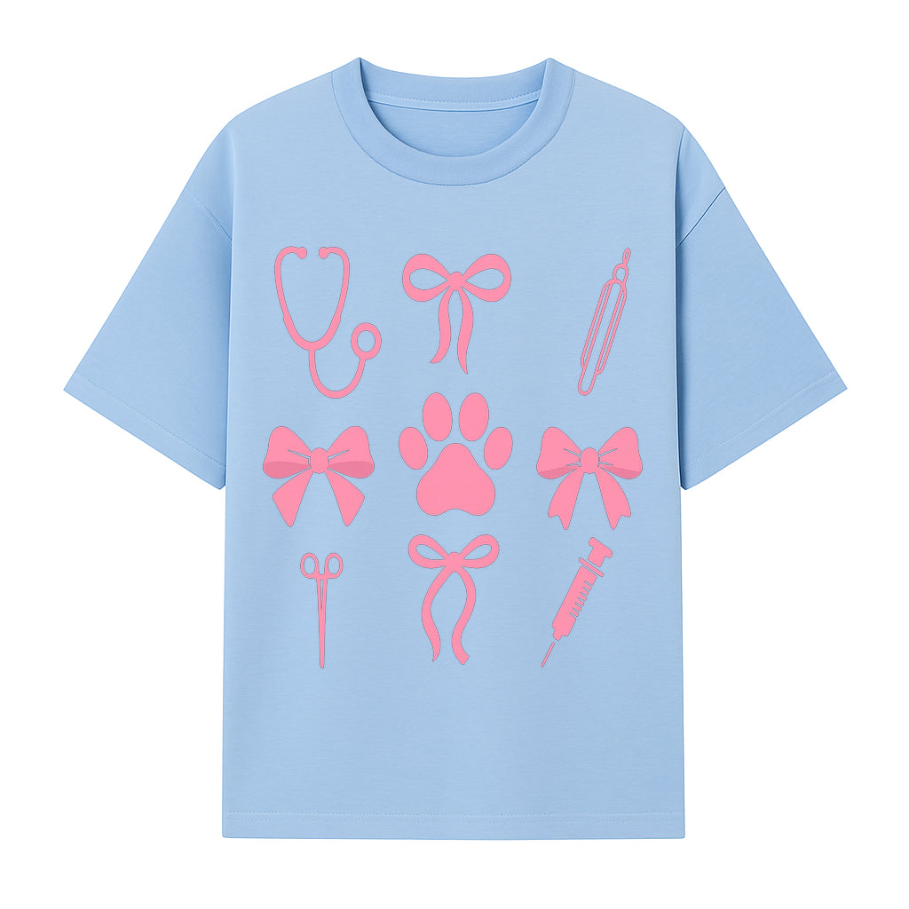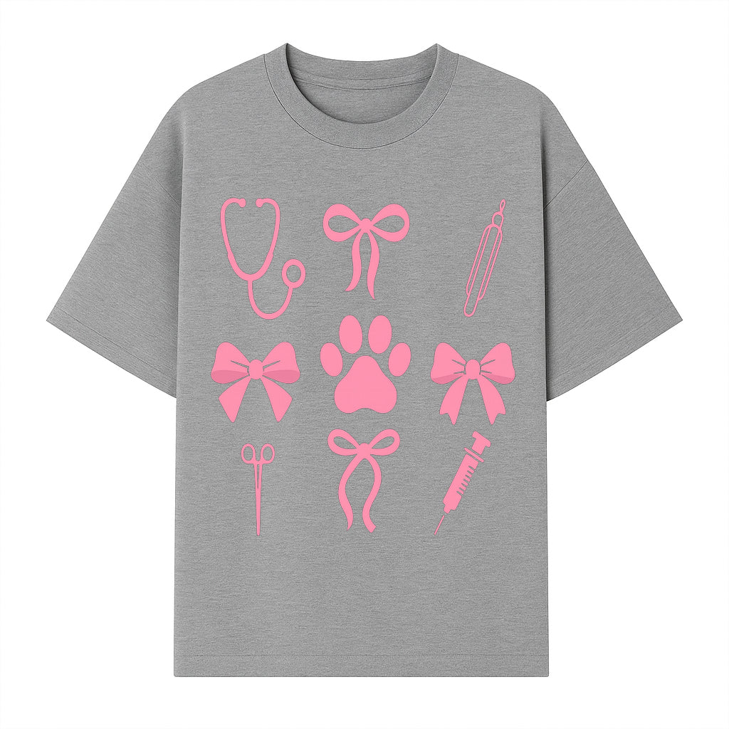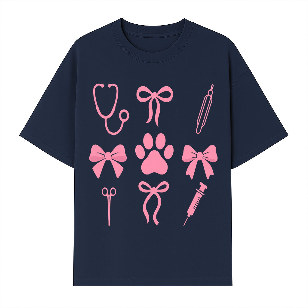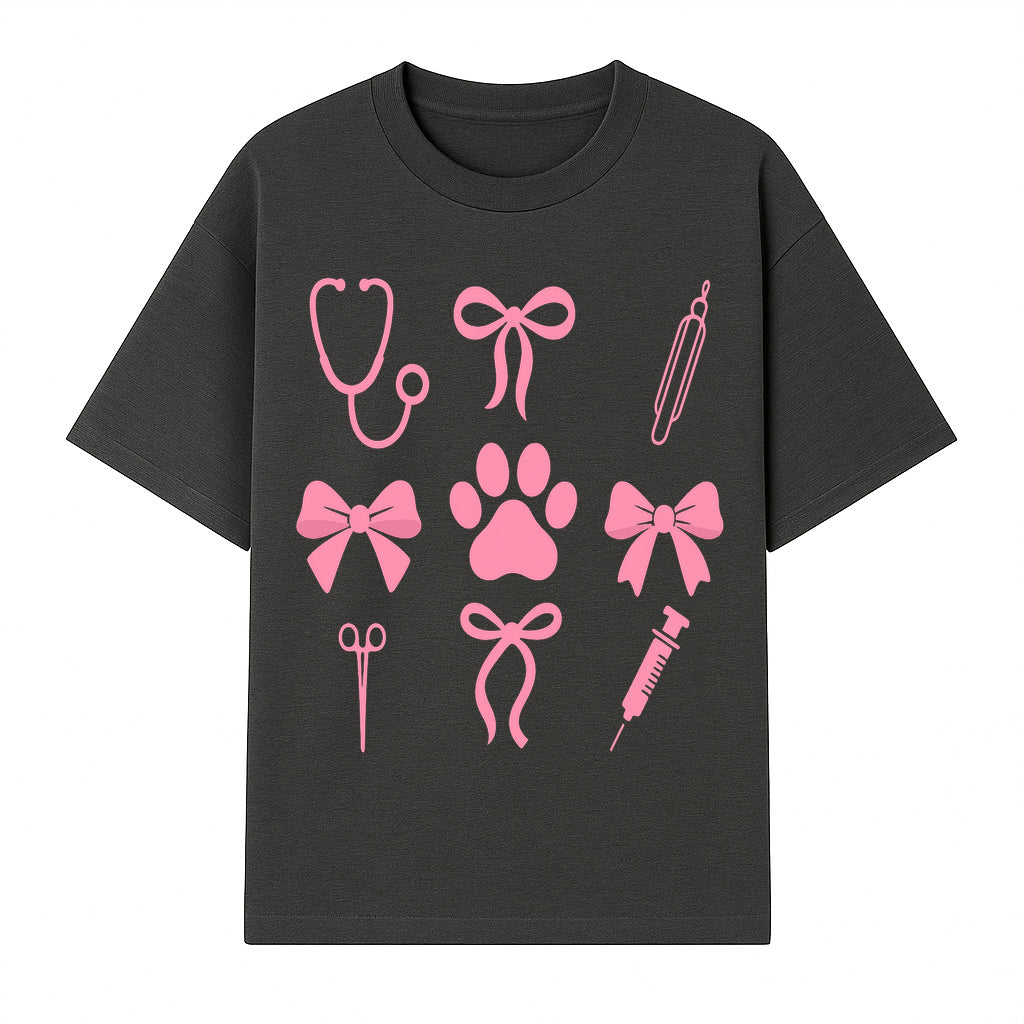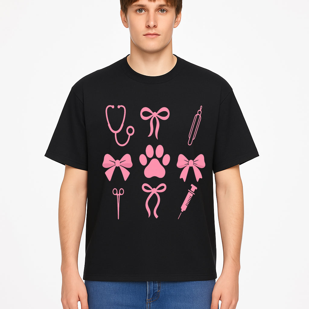 Pink Veterinary Theme Clipart | Pet Care Stethoscope, Paw Prints, Syringe & Bows | Cute Digital Graphics for Animal Lovers - T-shirt