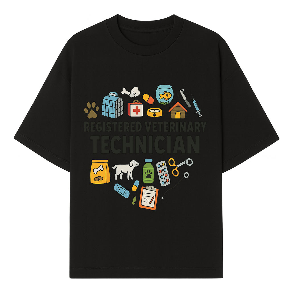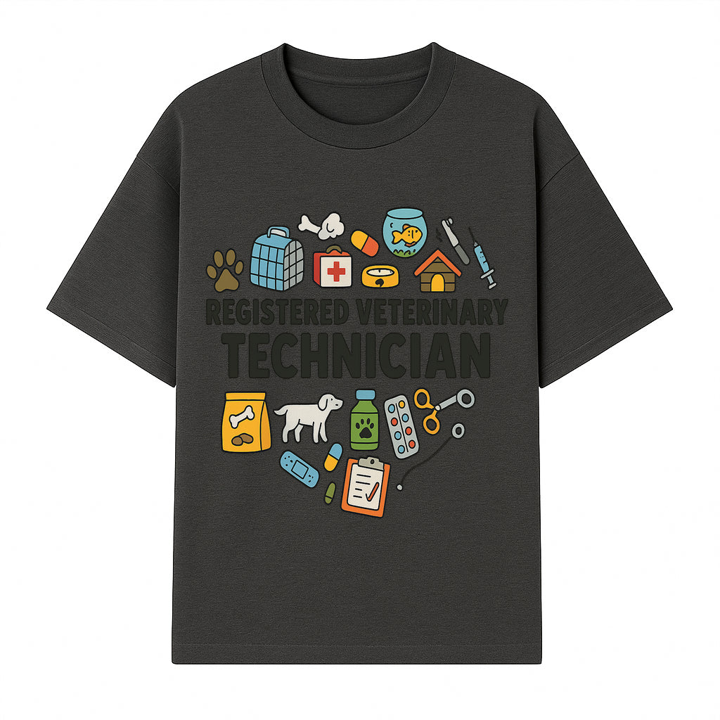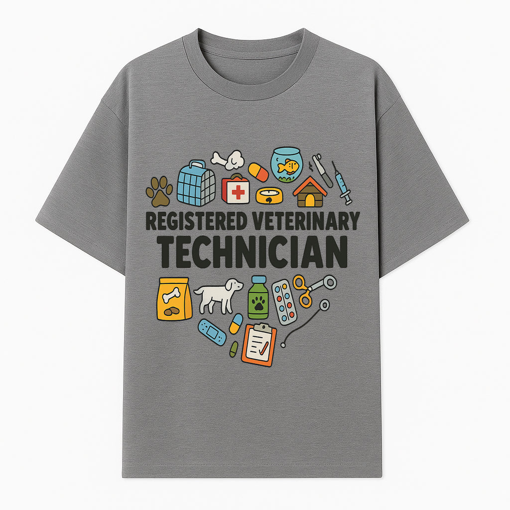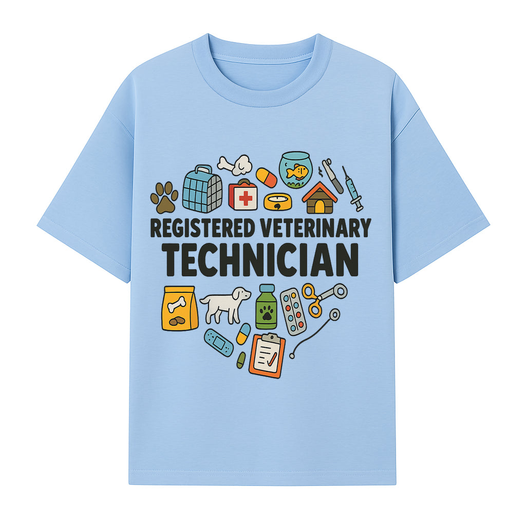 Registered Veterinary Technician Art Print - Pet Care, Animal Health, Veterinary Tools, Cute Dog & Cat Theme Decor - T-shirt