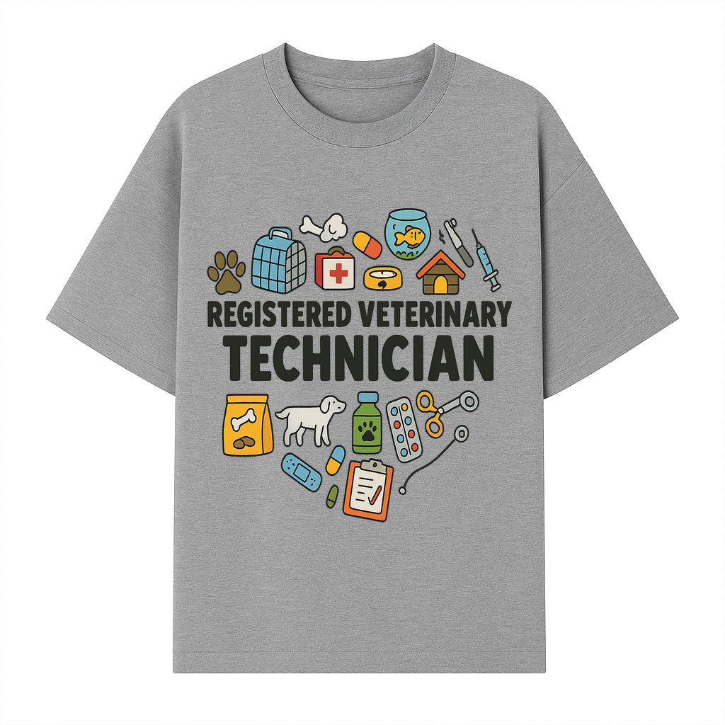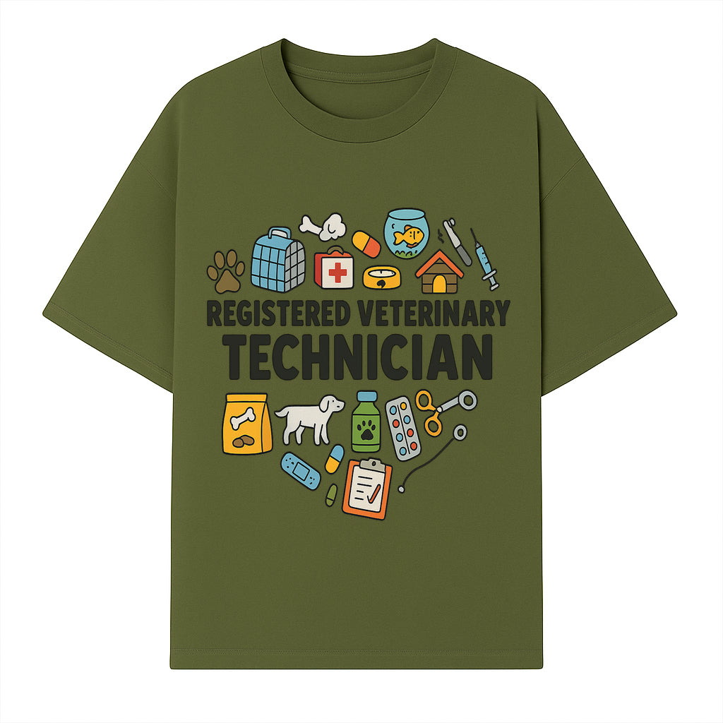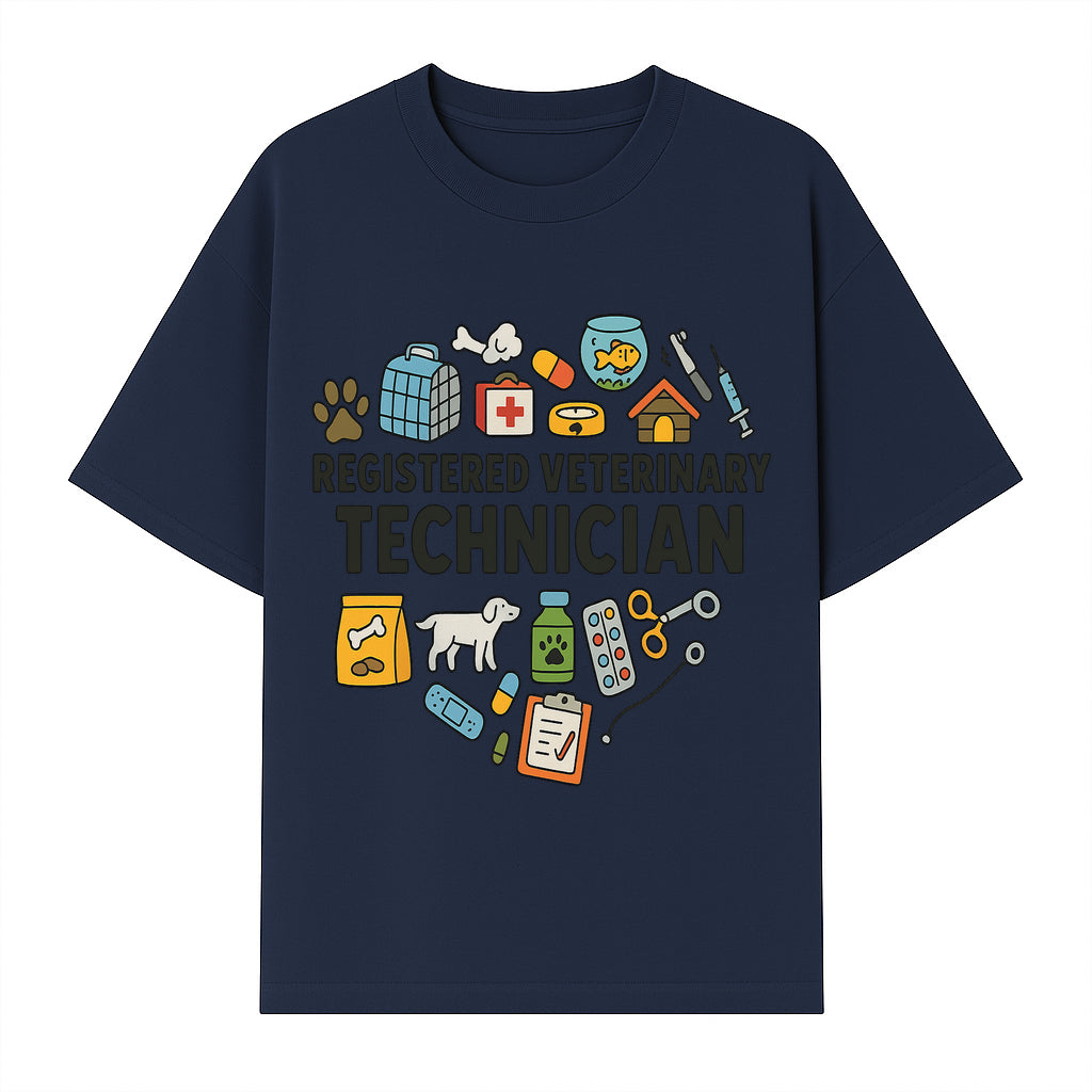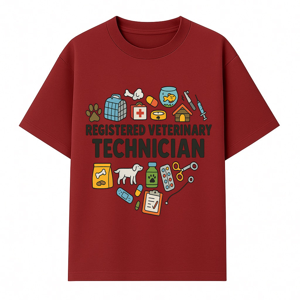 Registered Veterinary Technician Art Print - Pet Care, Animal Health, Veterinary Tools, Cute Dog & Cat Theme Decor - T-shirt