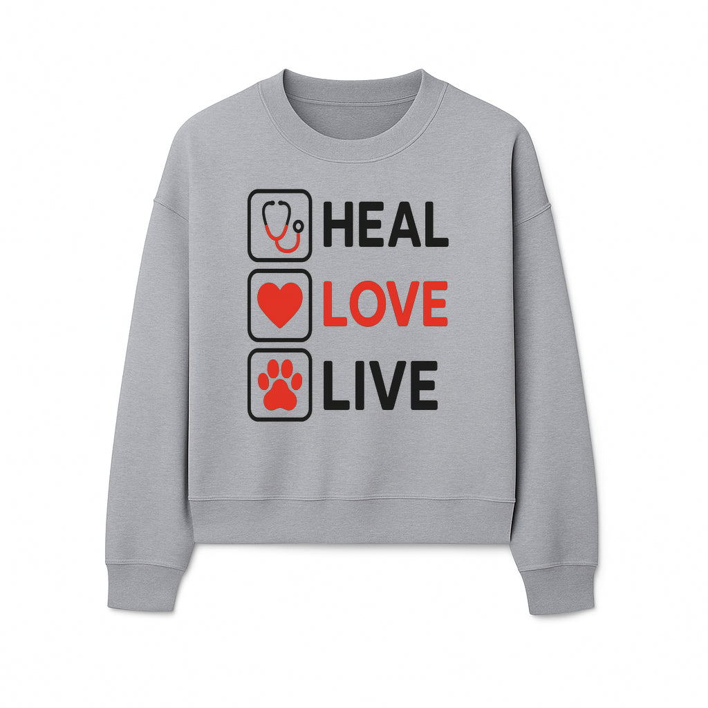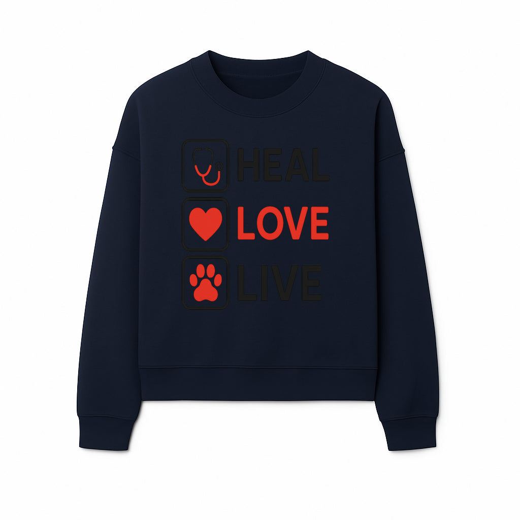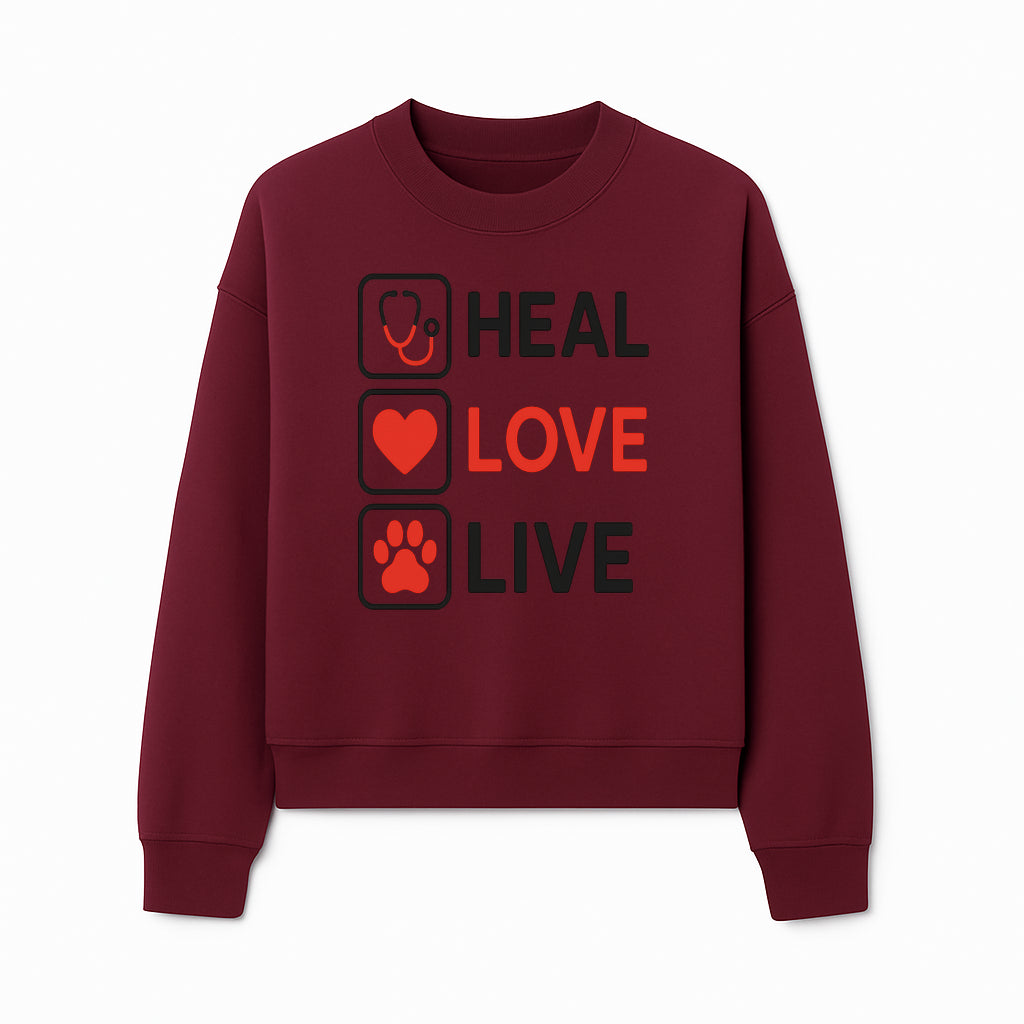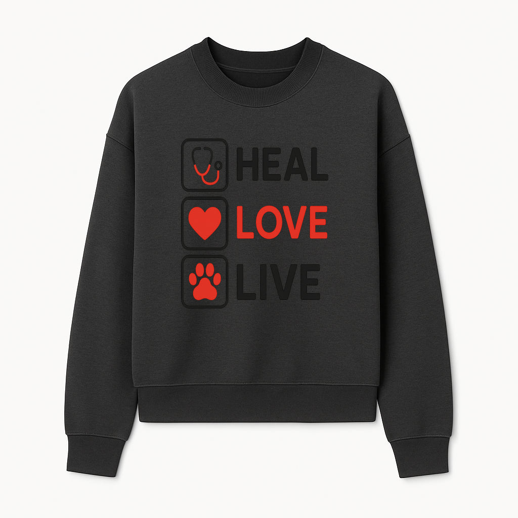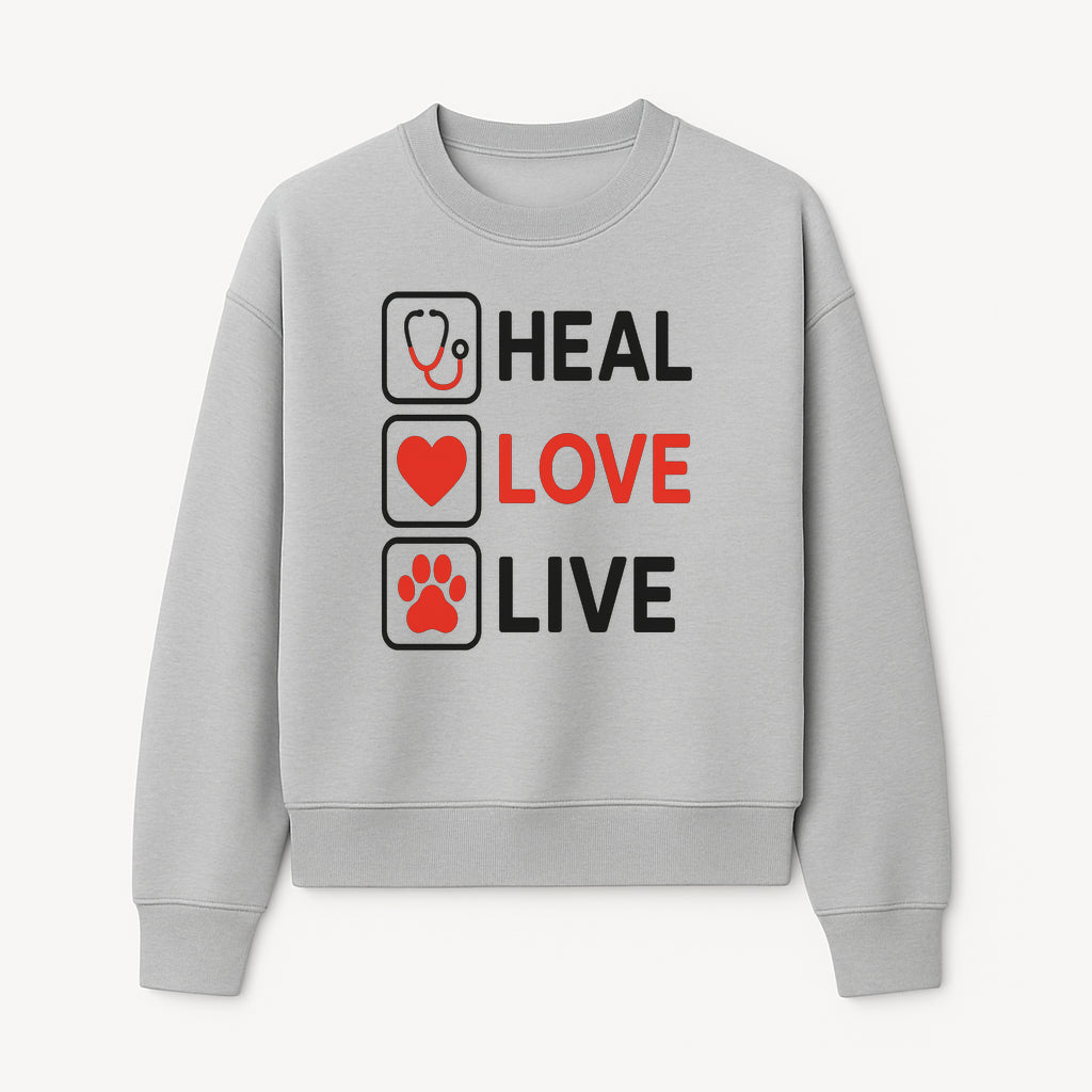 Stethoscope Wall Art - Heal, Love, Live Neon Sign - Inspirational Decor for Medical Professionals and Animal Lovers - Sweatshirt