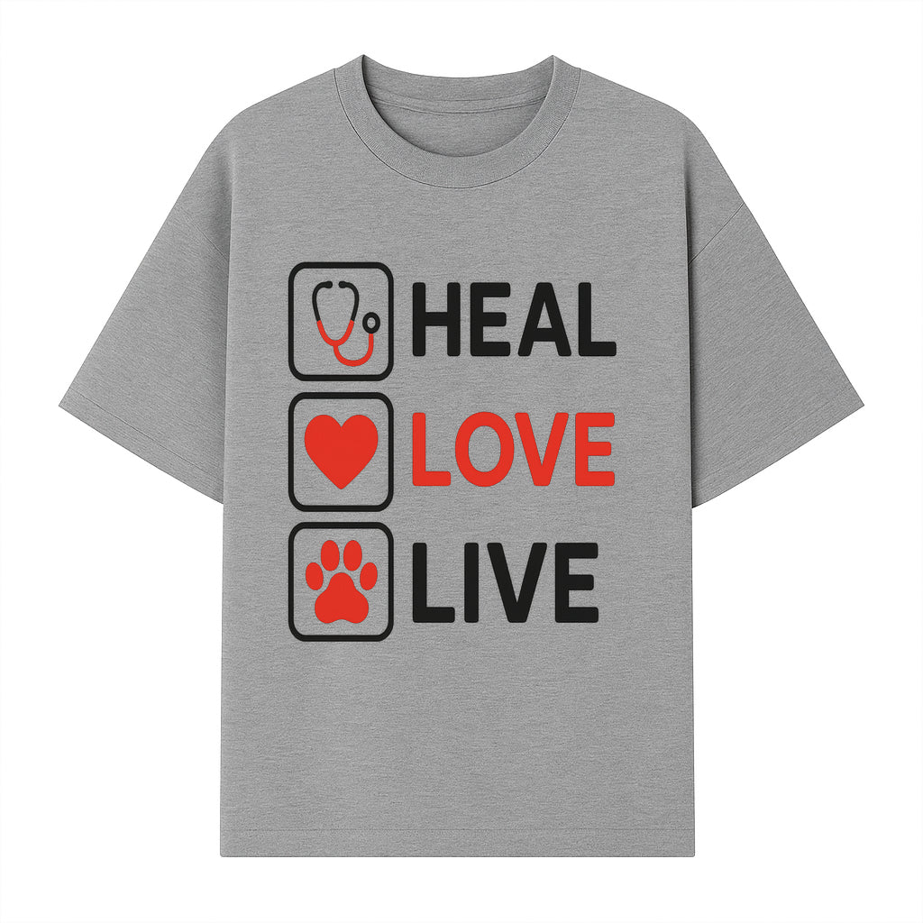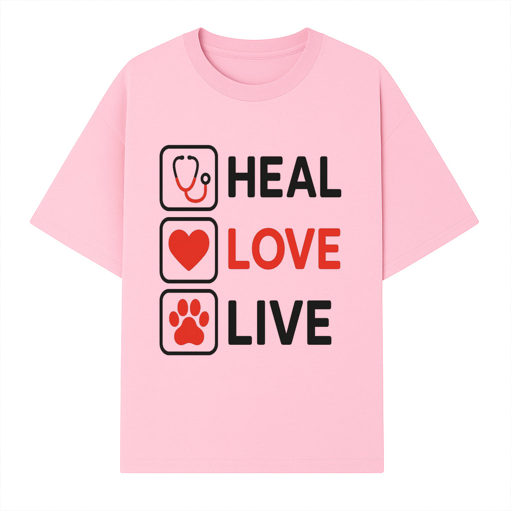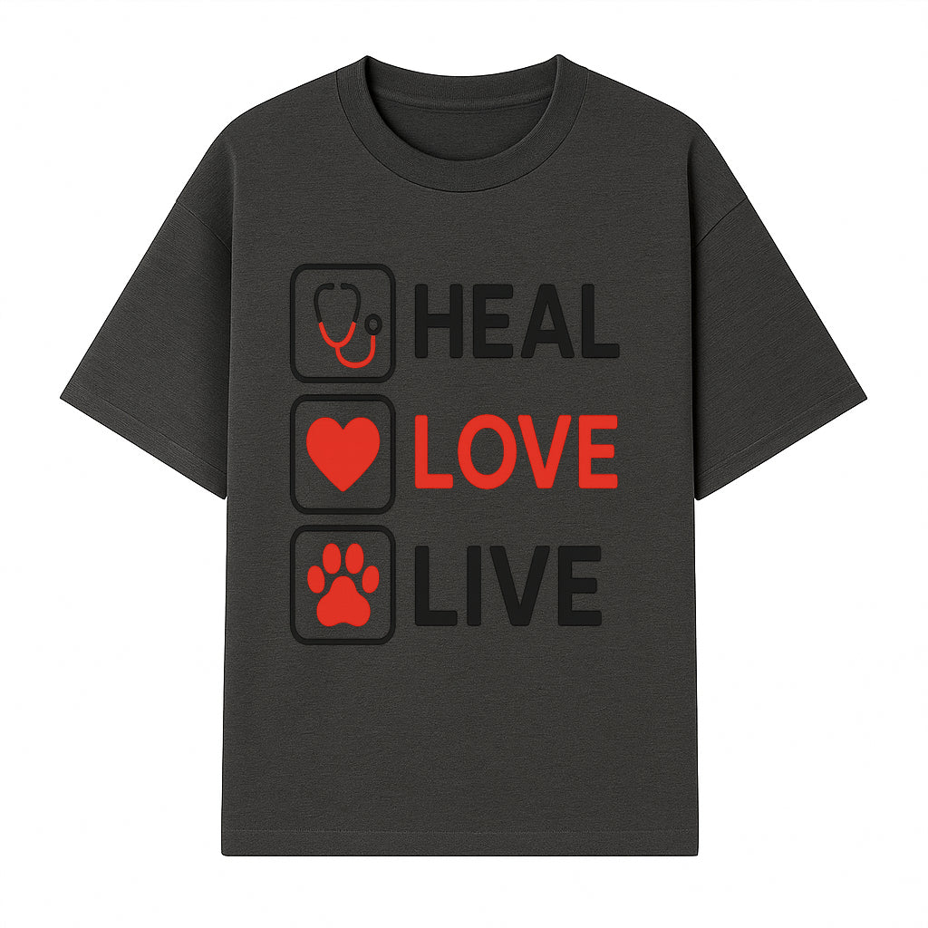 Stethoscope Wall Art - Heal, Love, Live Neon Sign - Inspirational Decor for Medical Professionals and Animal Lovers - T-shirt