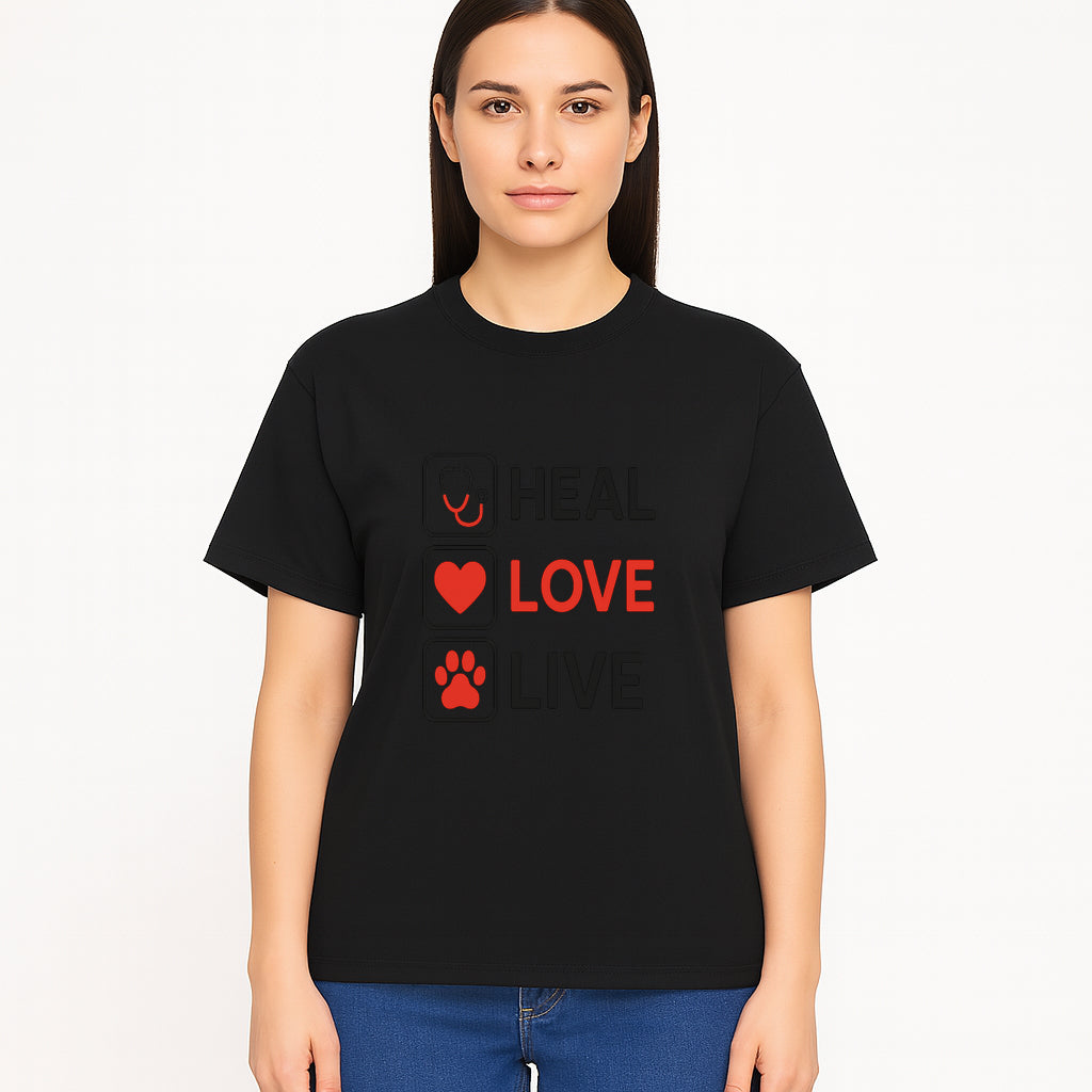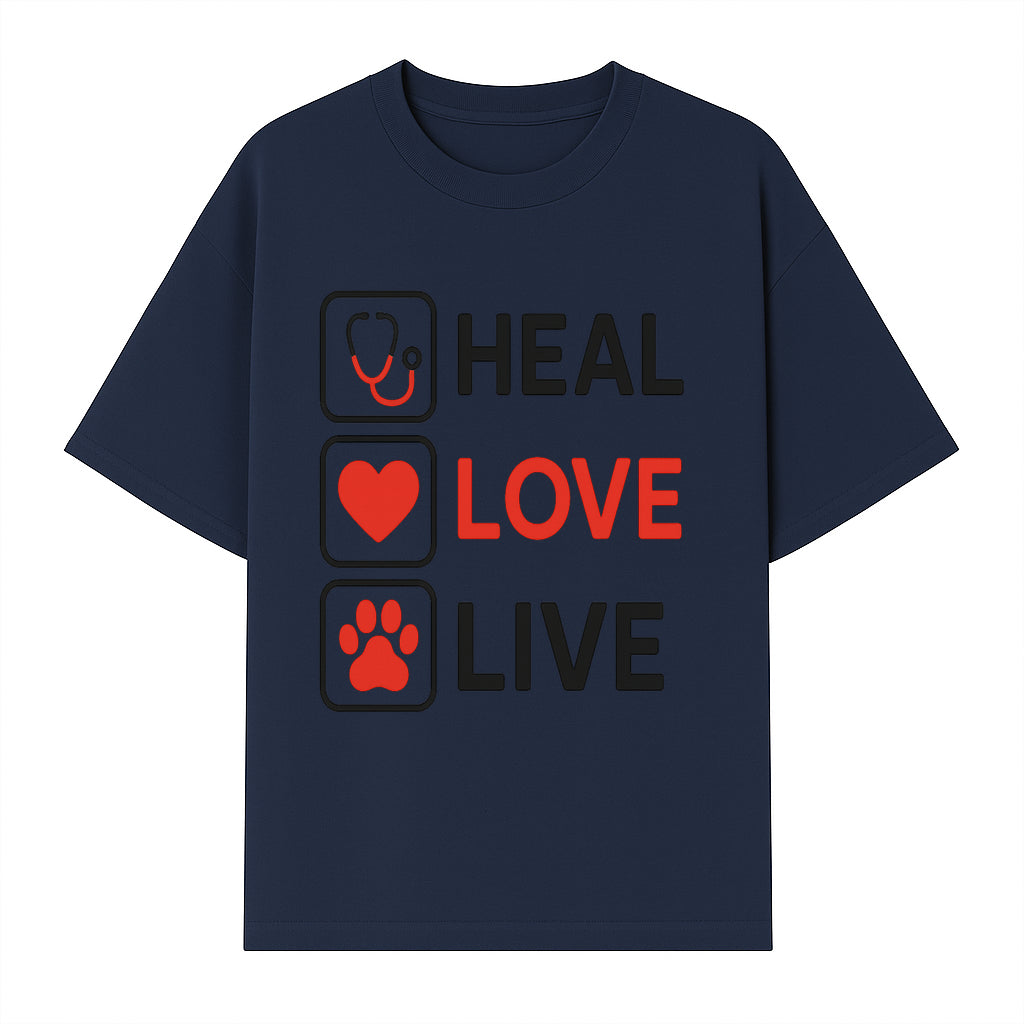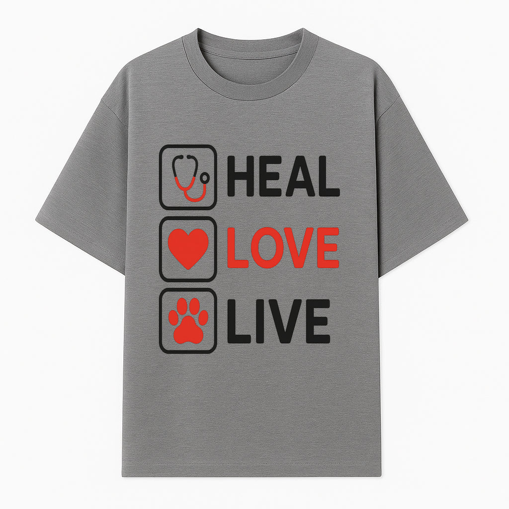 Stethoscope Wall Art - Heal, Love, Live Neon Sign - Inspirational Decor for Medical Professionals and Animal Lovers - T-shirt