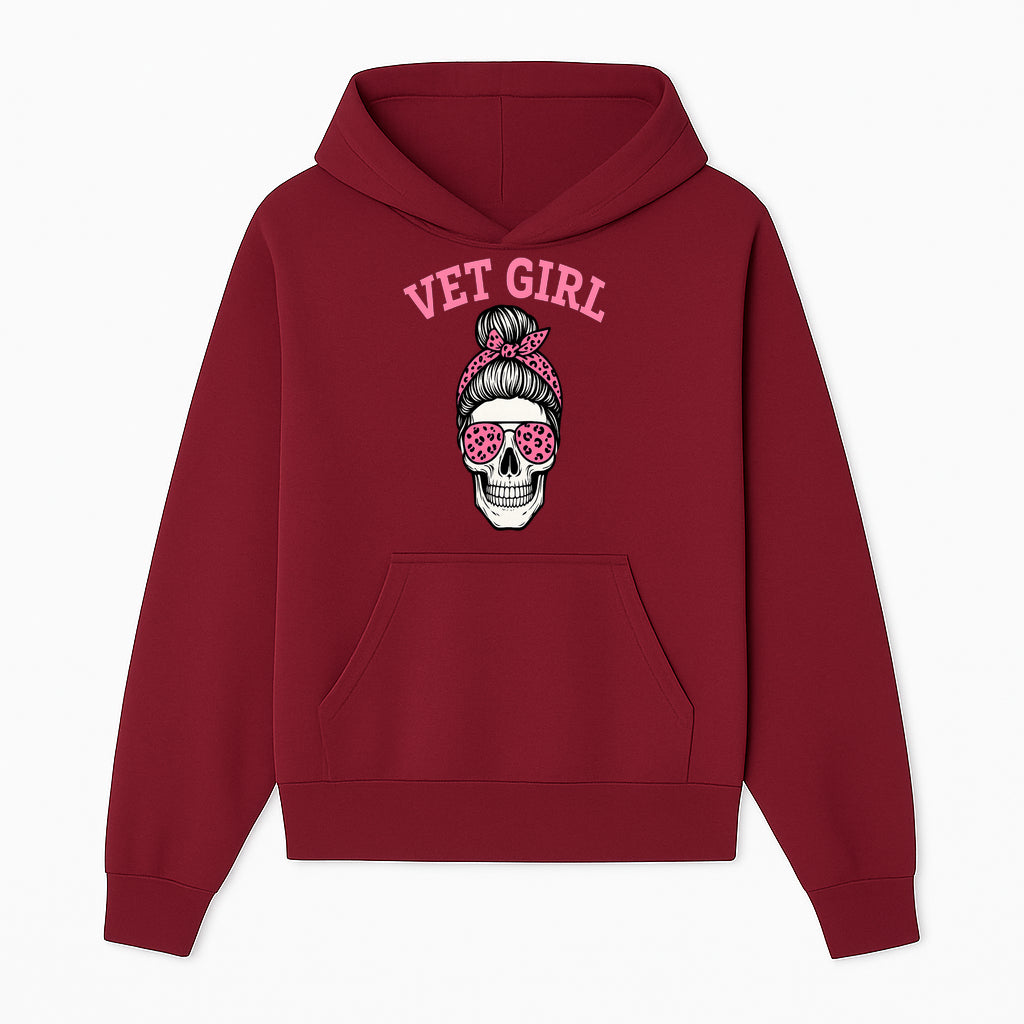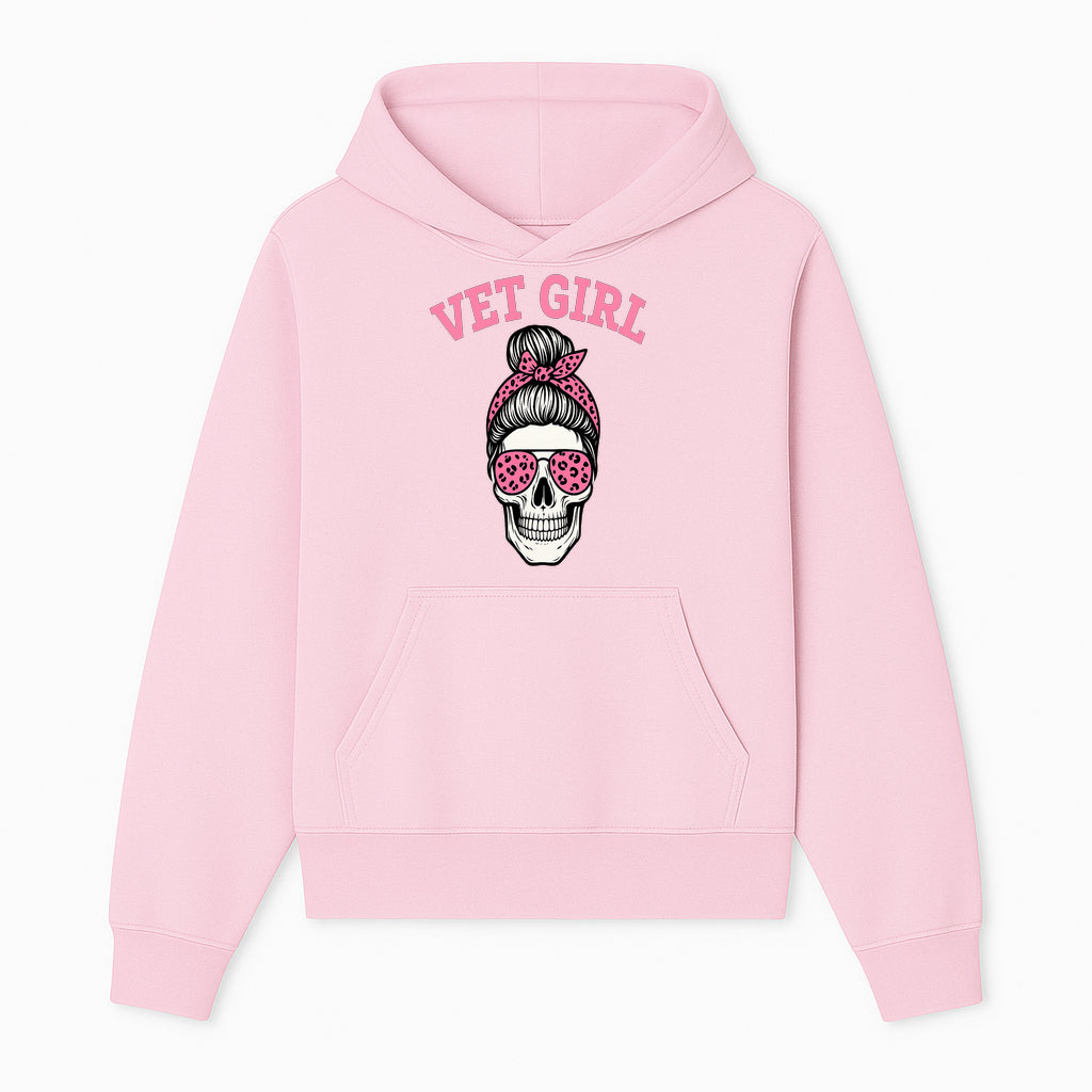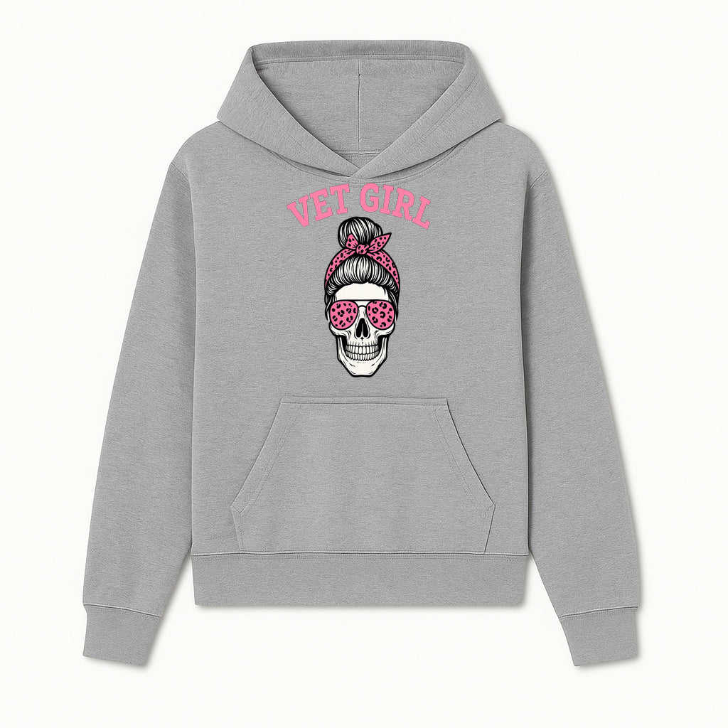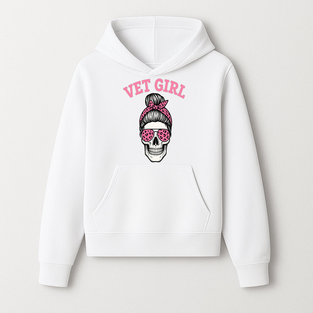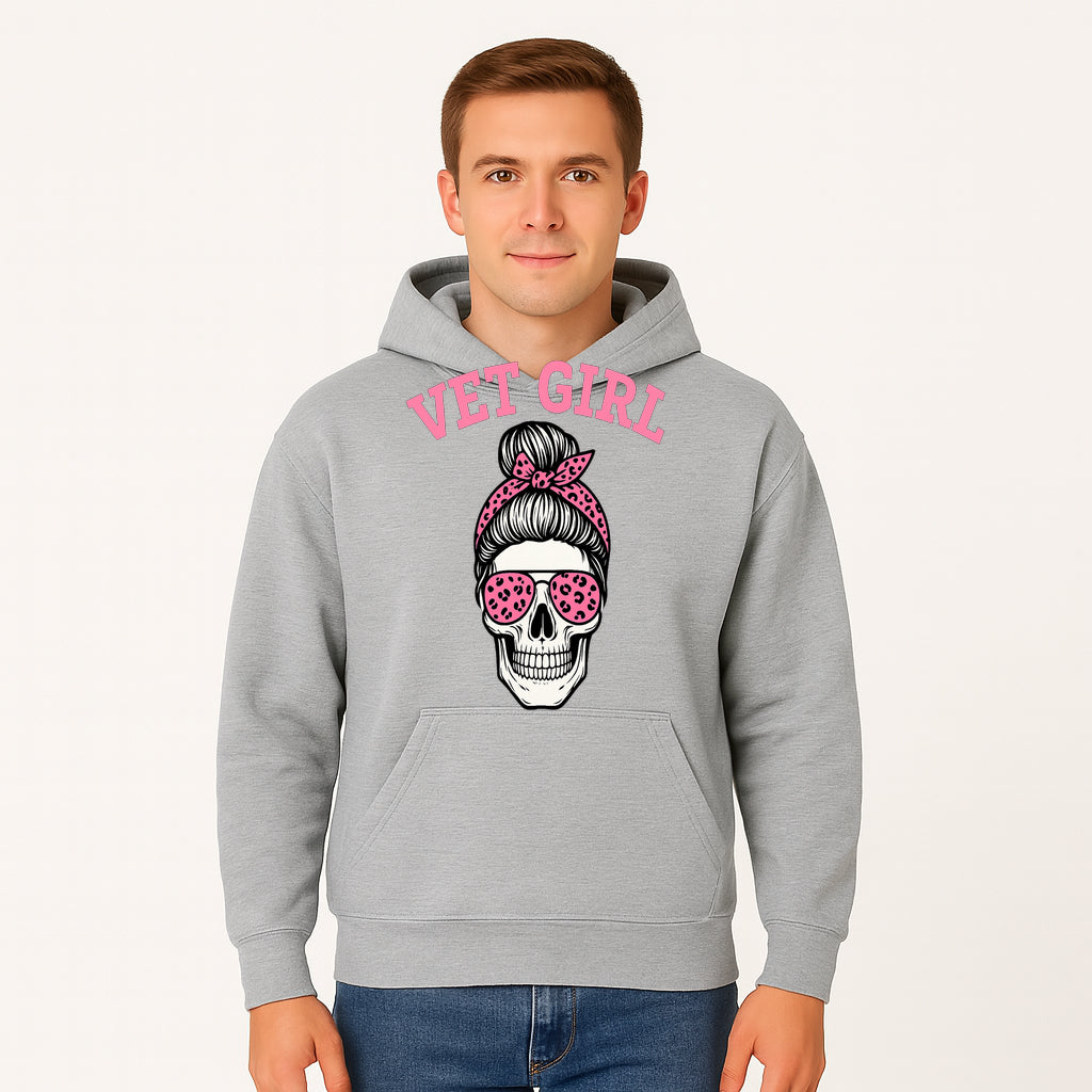 Vet Girl Skull Graphic Tee - Trendy Pink Leopard Sunglasses & Bandana Design for Animal Lovers - Hoodie