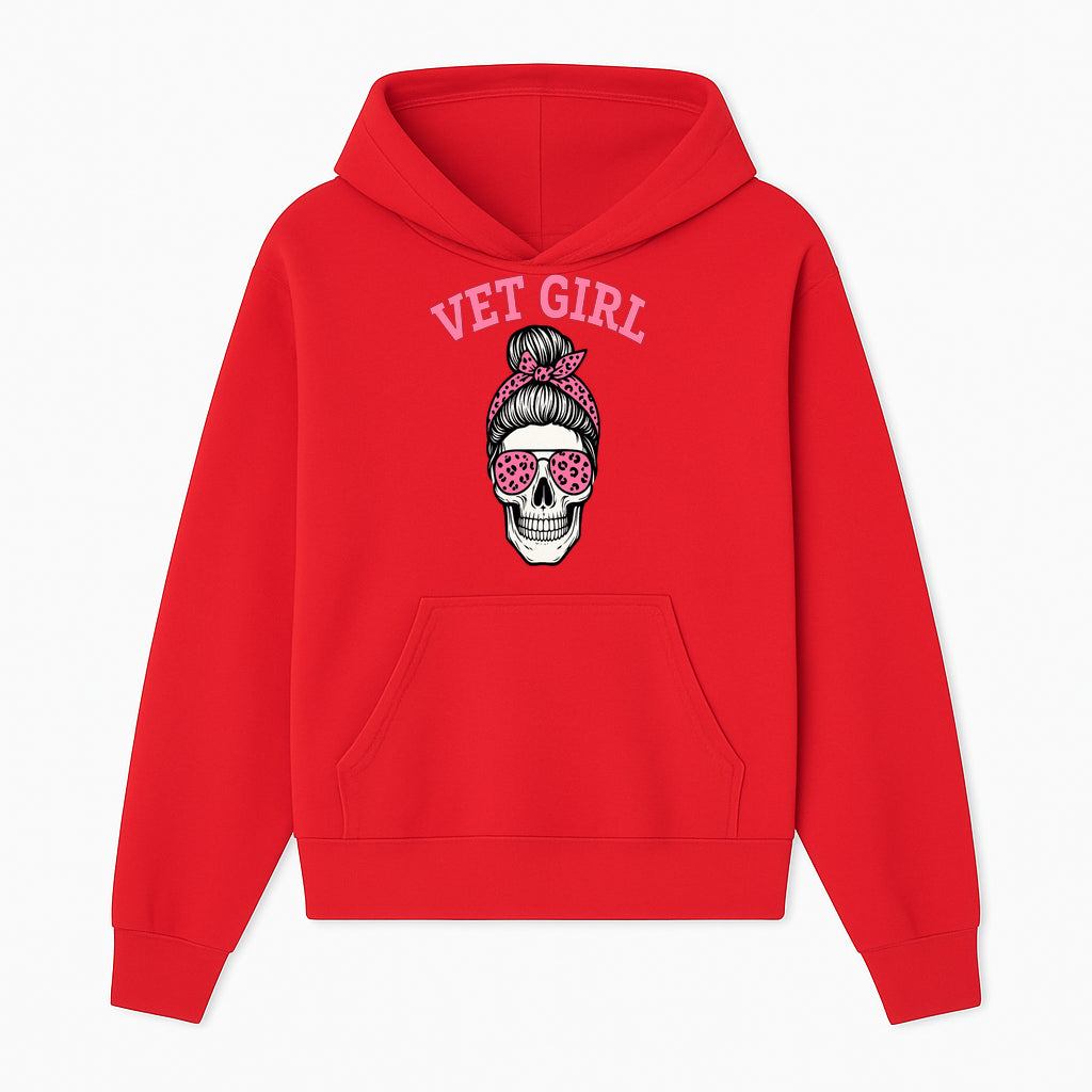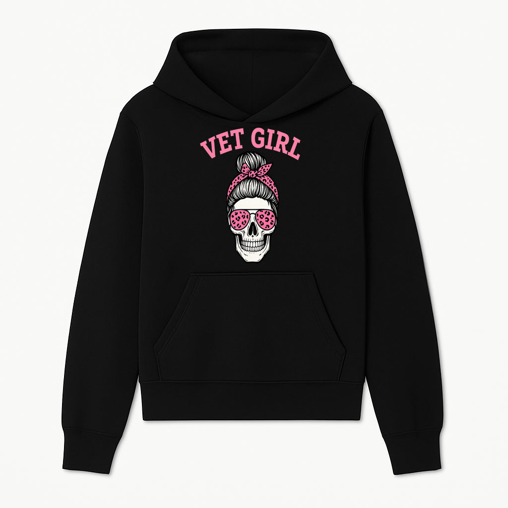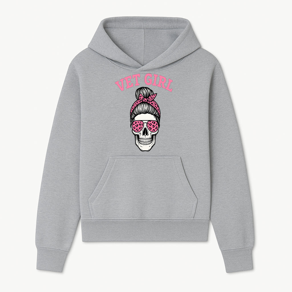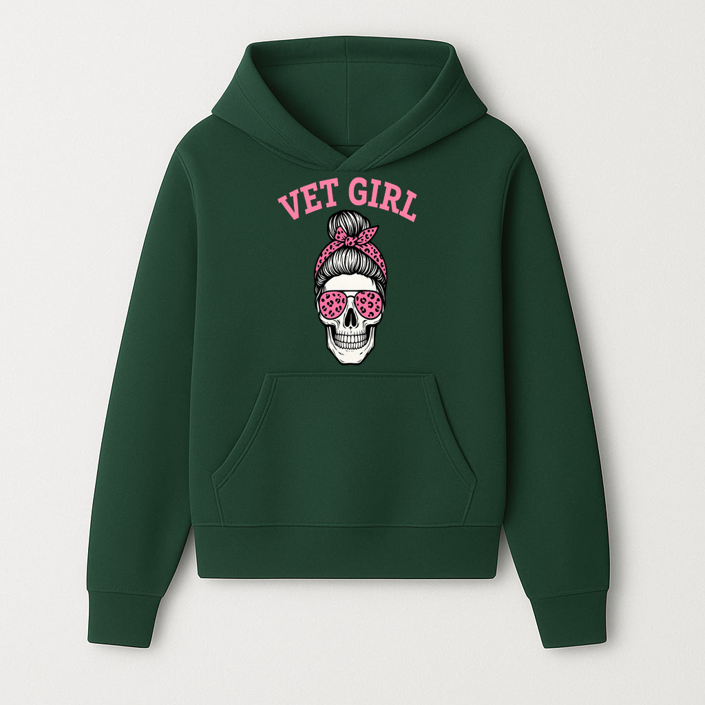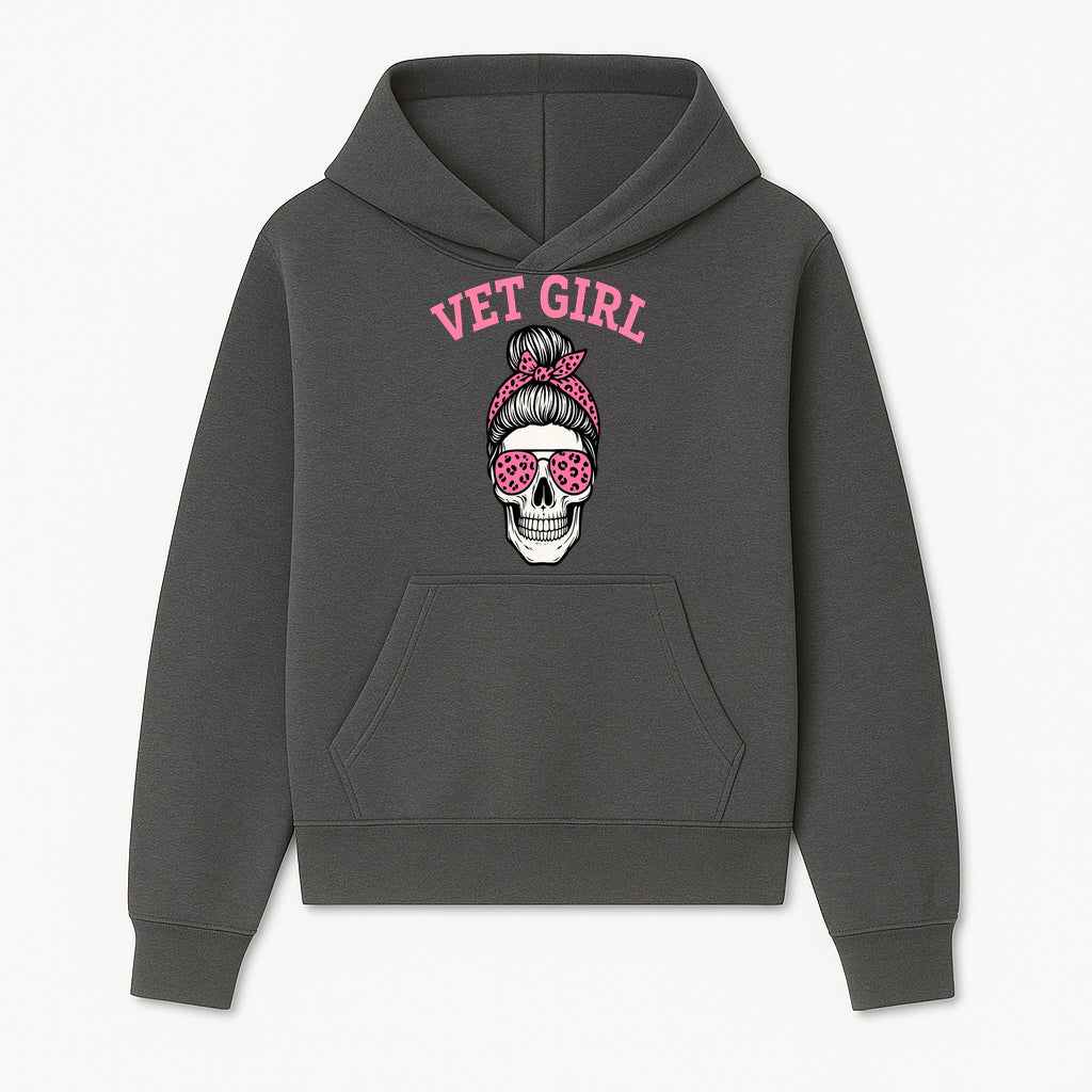 Vet Girl Skull Graphic Tee - Trendy Pink Leopard Sunglasses & Bandana Design for Animal Lovers - Hoodie