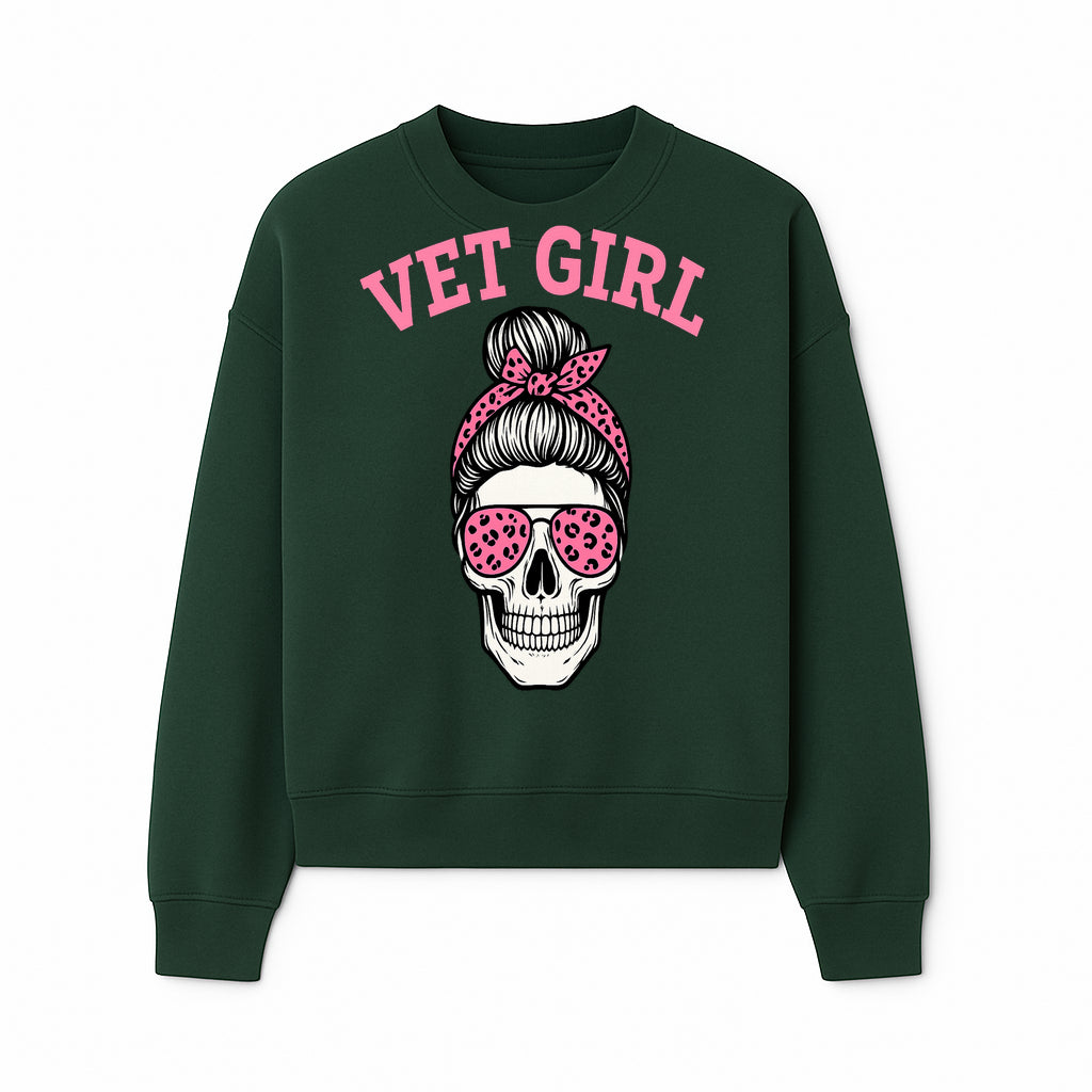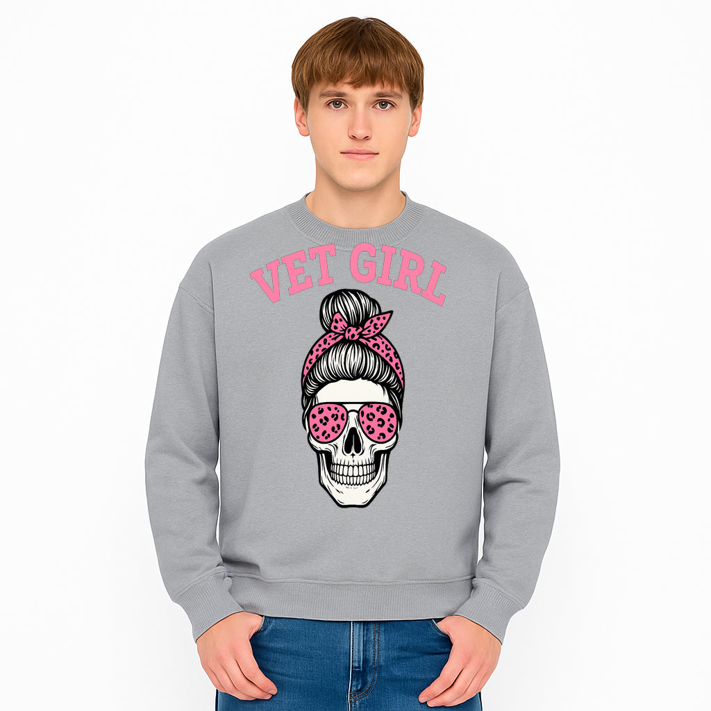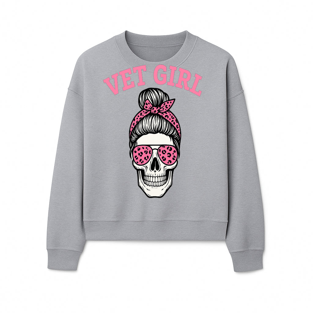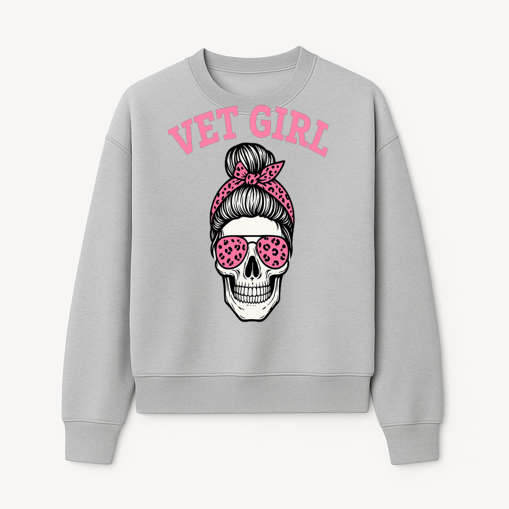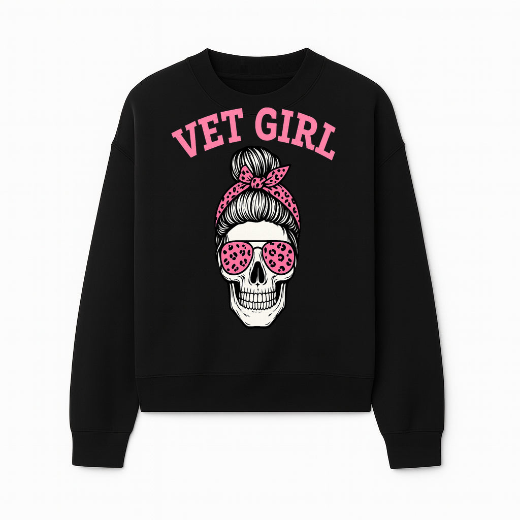 Vet Girl Skull Graphic Tee - Trendy Pink Leopard Sunglasses & Bandana Design for Animal Lovers - Sweatshirt