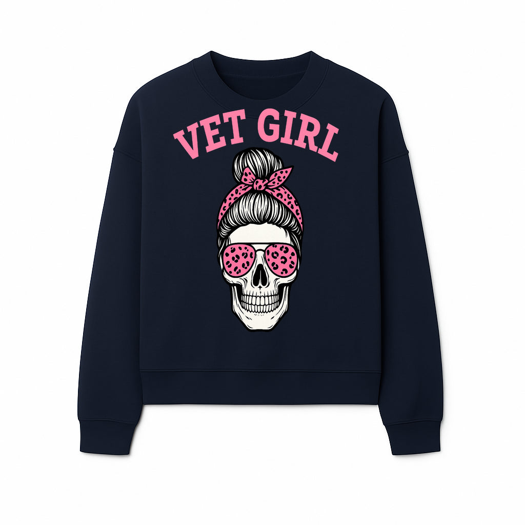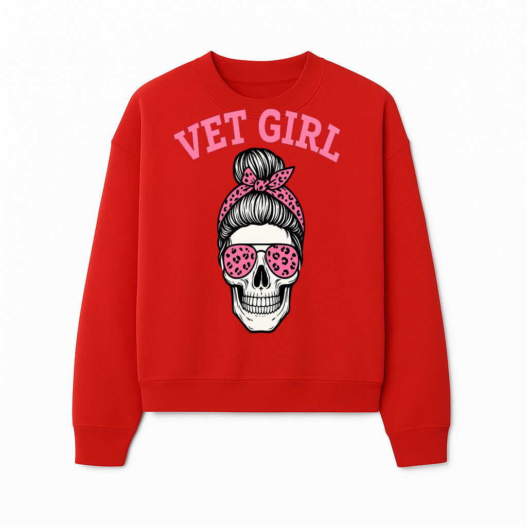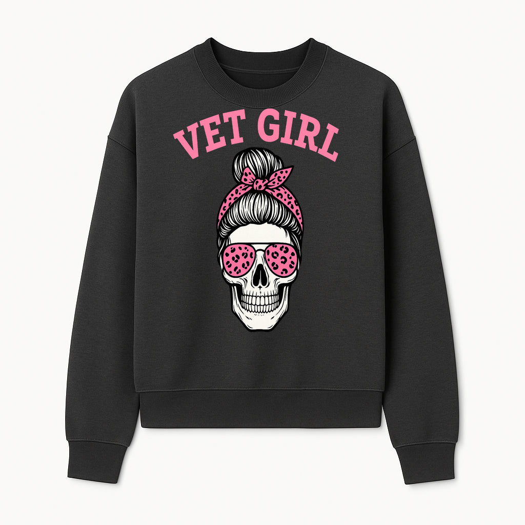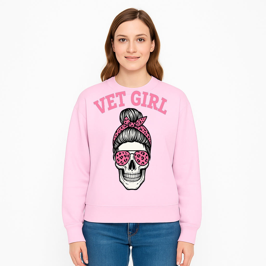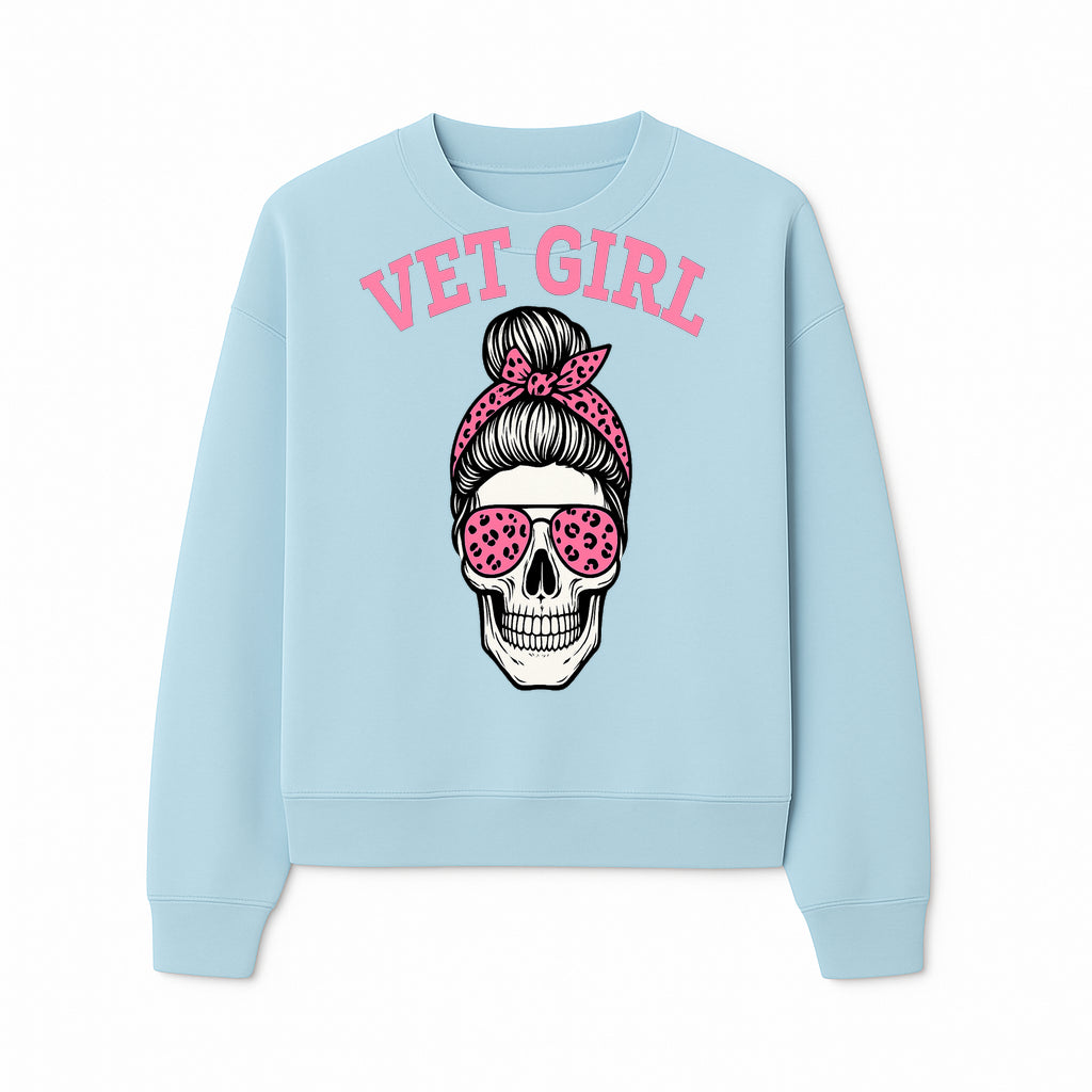 Vet Girl Skull Graphic Tee - Trendy Pink Leopard Sunglasses & Bandana Design for Animal Lovers - Sweatshirt