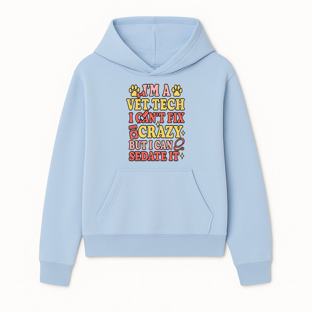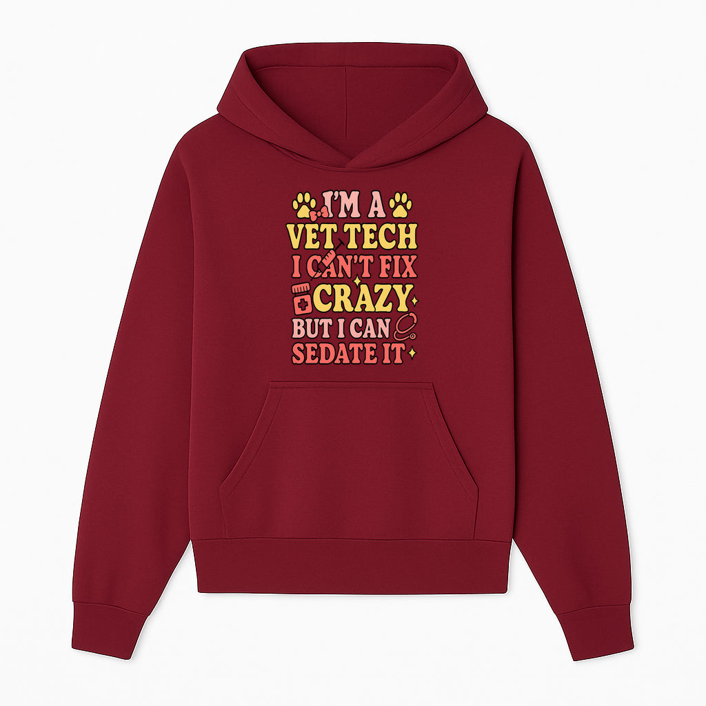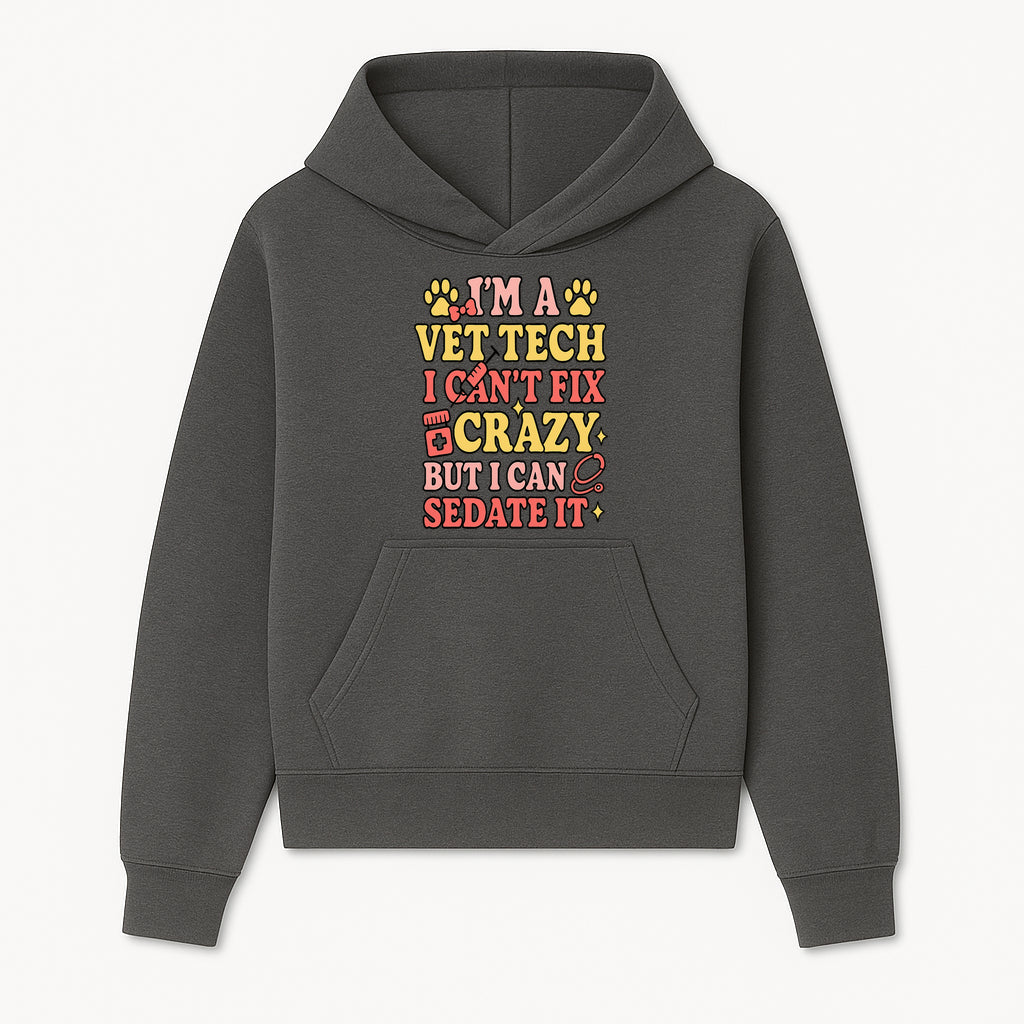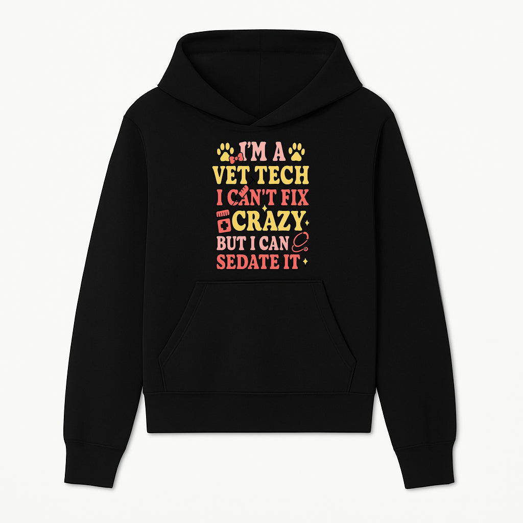 Vet Tech Humor Shirt - I m a Vet Tech, I Can t Fix Crazy but I Can Sedate It - Fun Gift for Animal Lovers and Professionals - Hoodie
