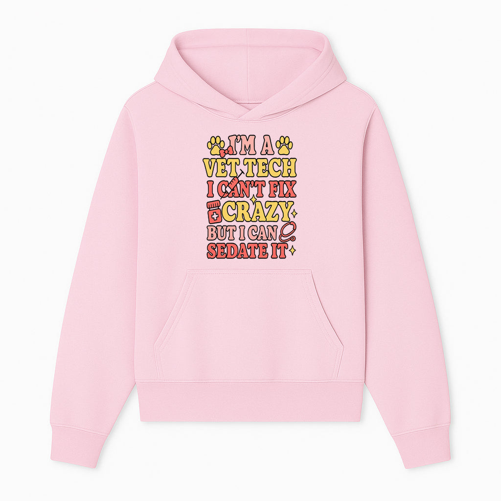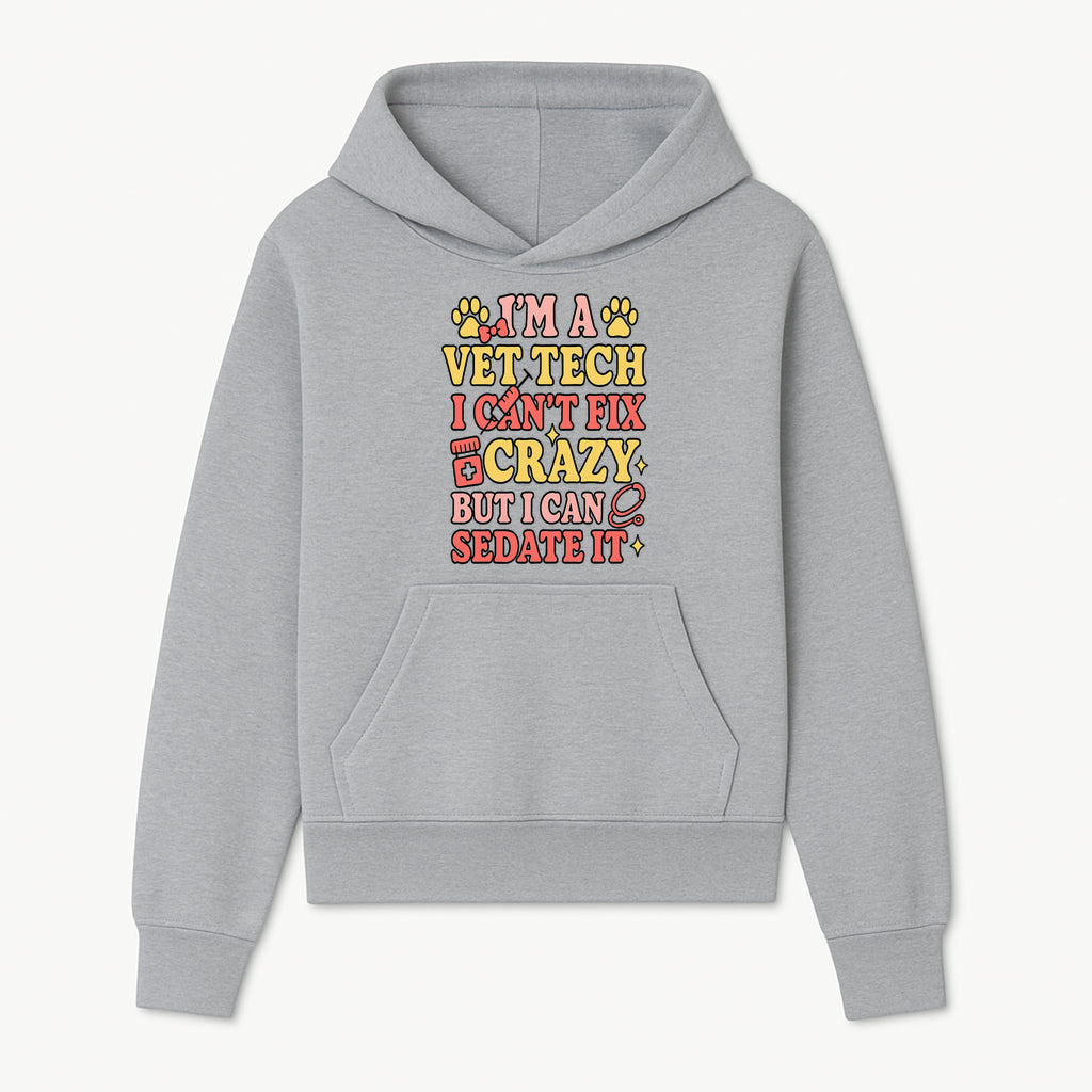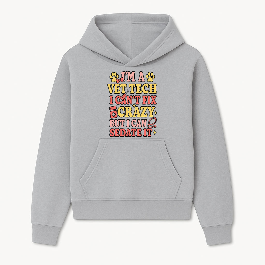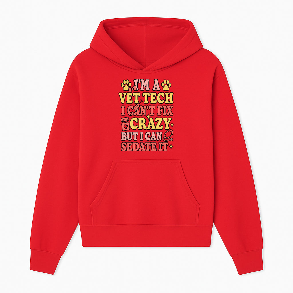 Vet Tech Humor Shirt - I m a Vet Tech, I Can t Fix Crazy but I Can Sedate It - Fun Gift for Animal Lovers and Professionals - Hoodie