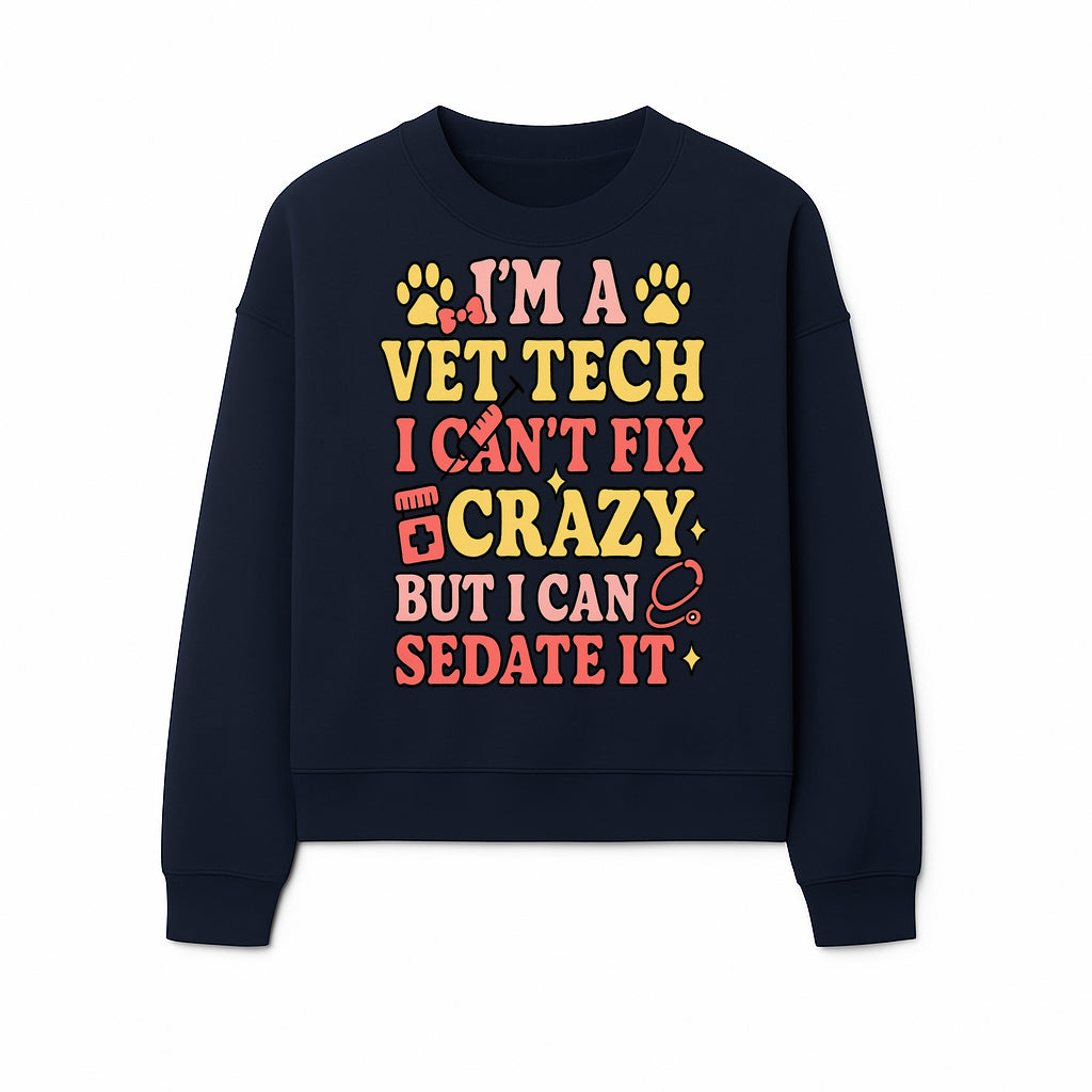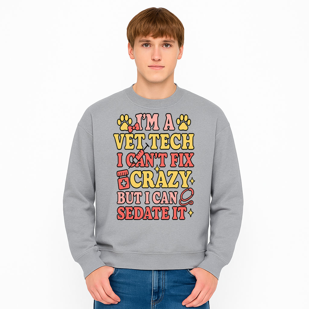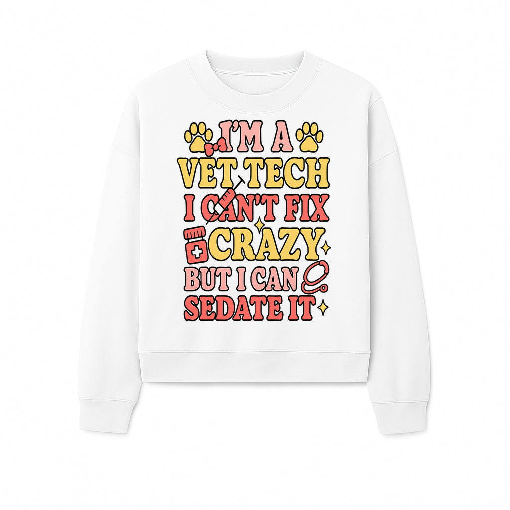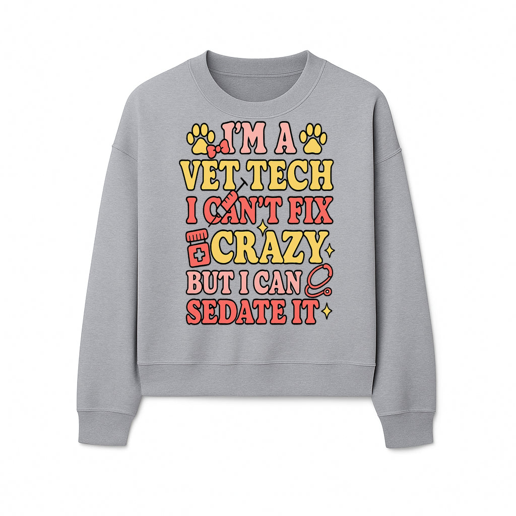 Vet Tech Humor Shirt - I m a Vet Tech, I Can t Fix Crazy but I Can Sedate It - Fun Gift for Animal Lovers and Professionals - Sweatshirt