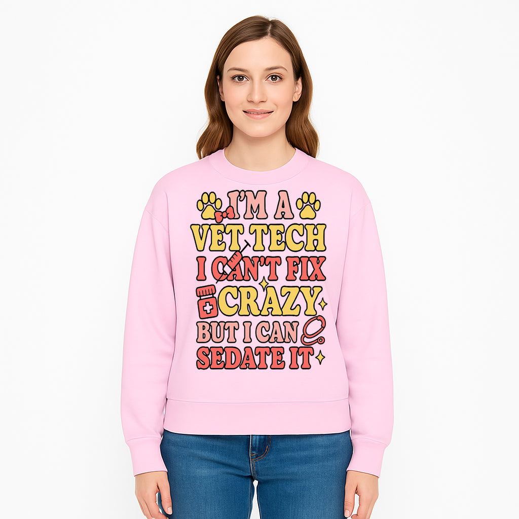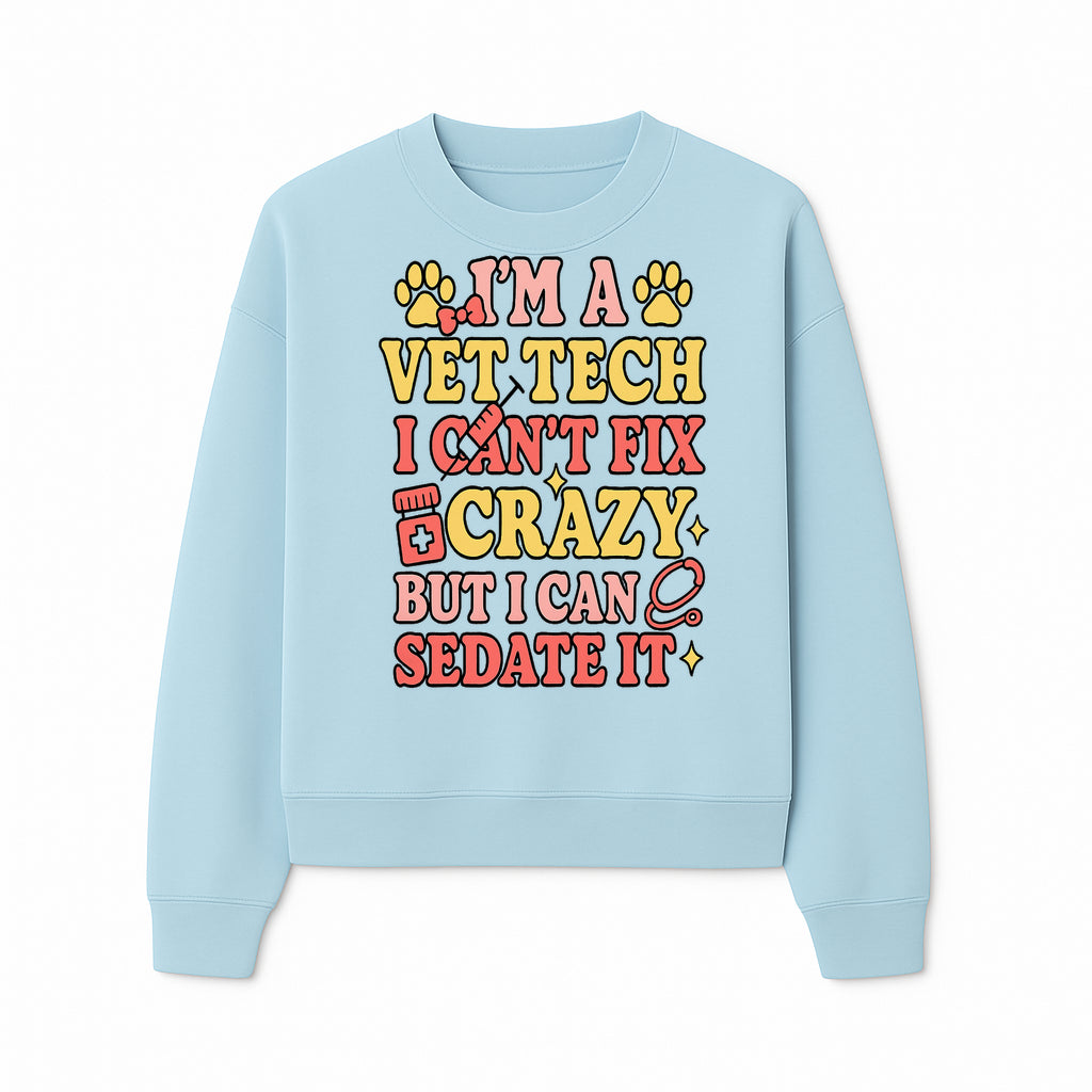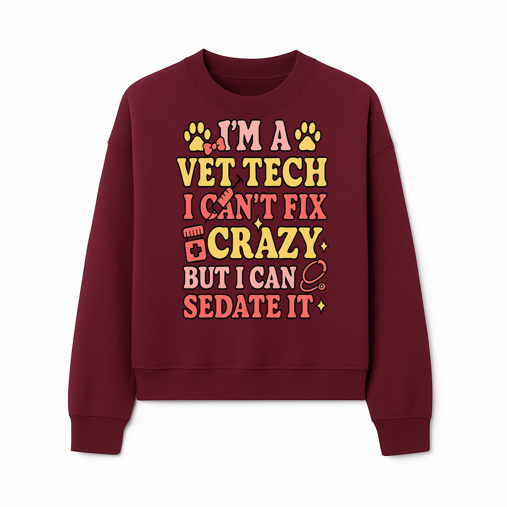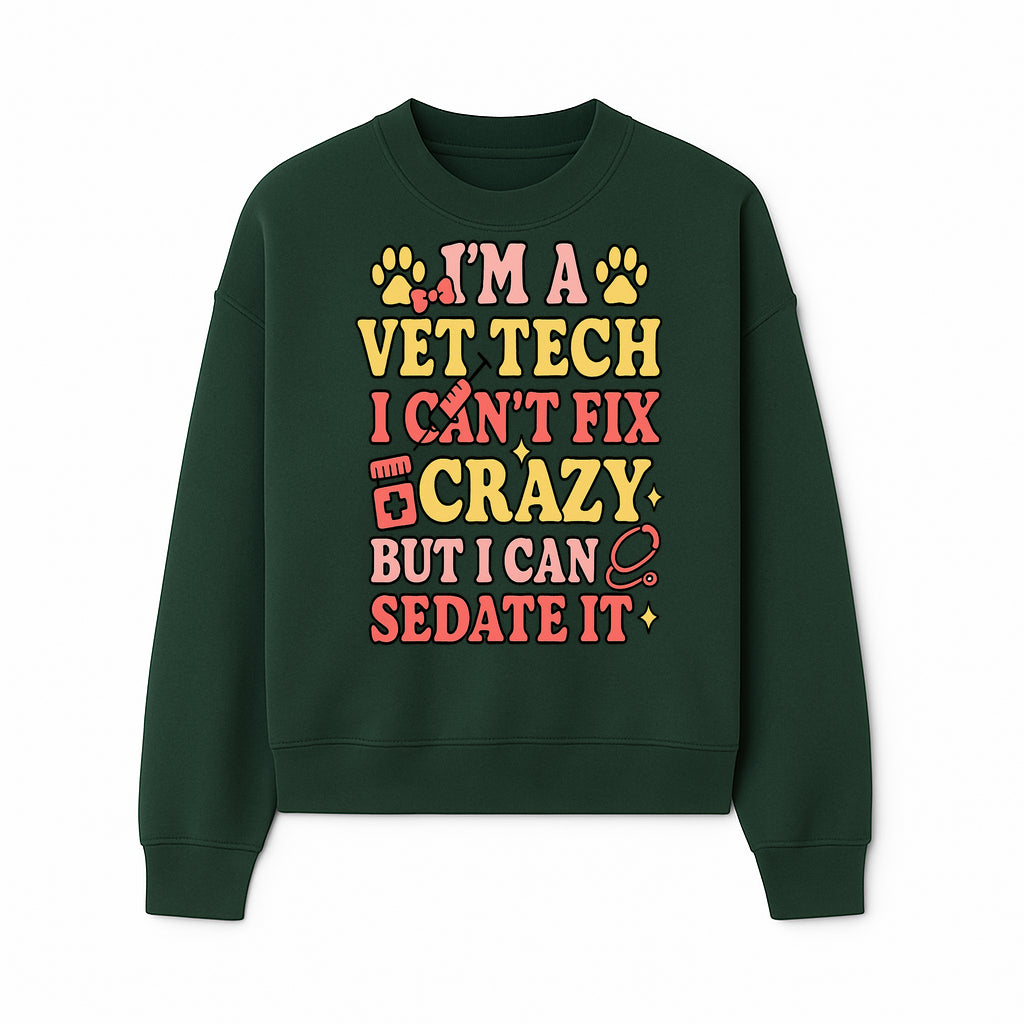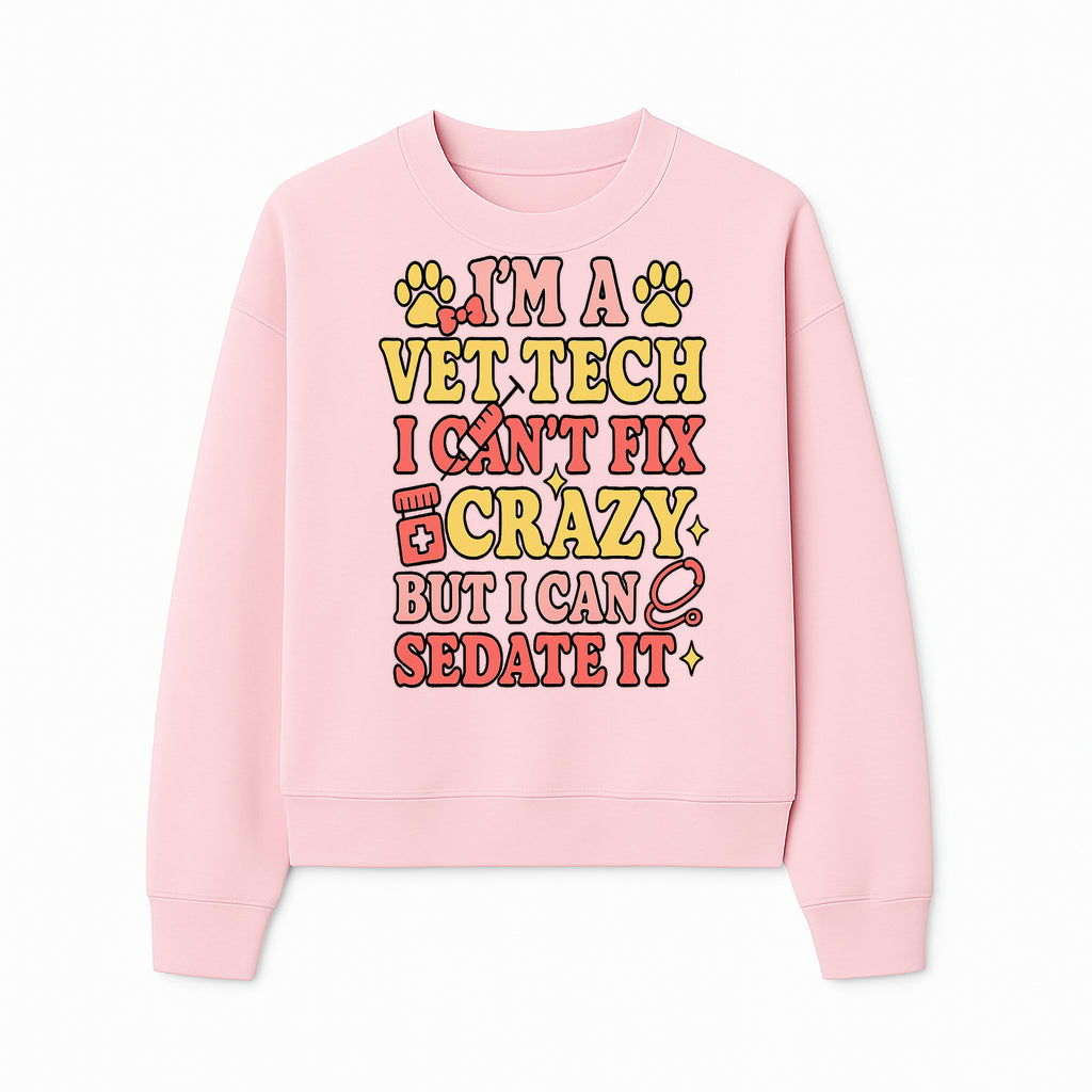 Vet Tech Humor Shirt - I m a Vet Tech, I Can t Fix Crazy but I Can Sedate It - Fun Gift for Animal Lovers and Professionals - Sweatshirt