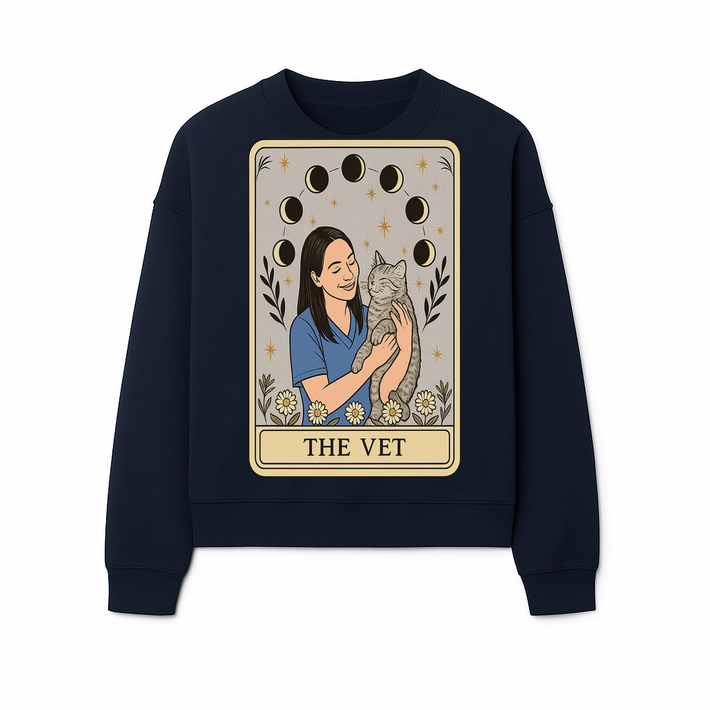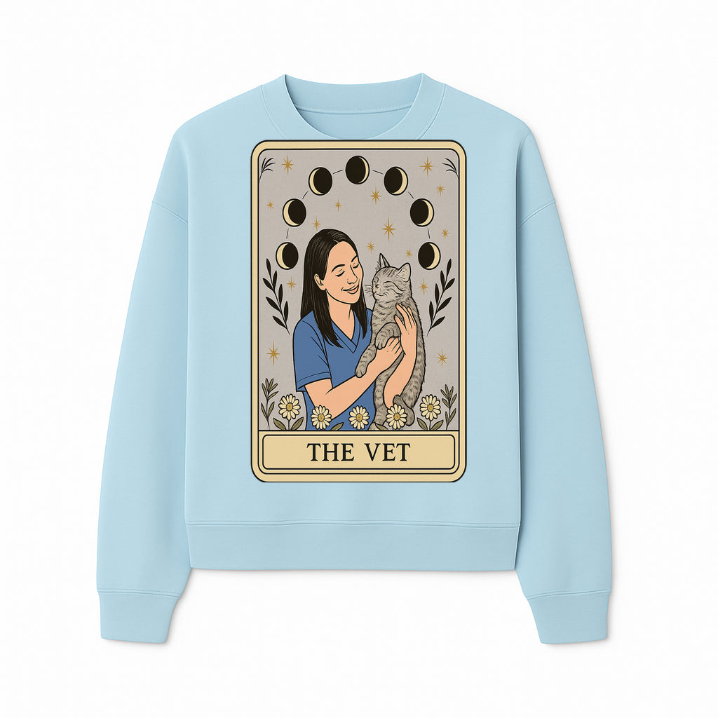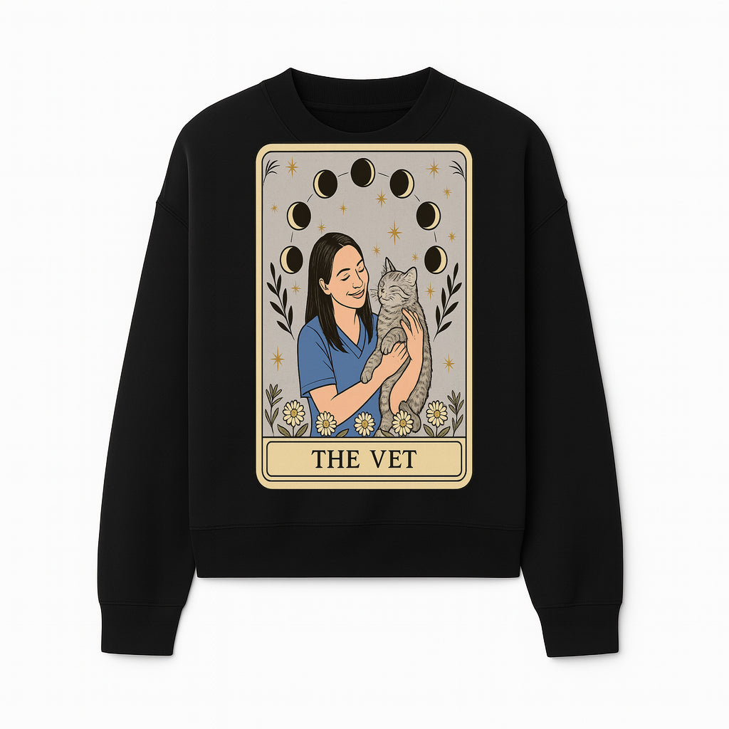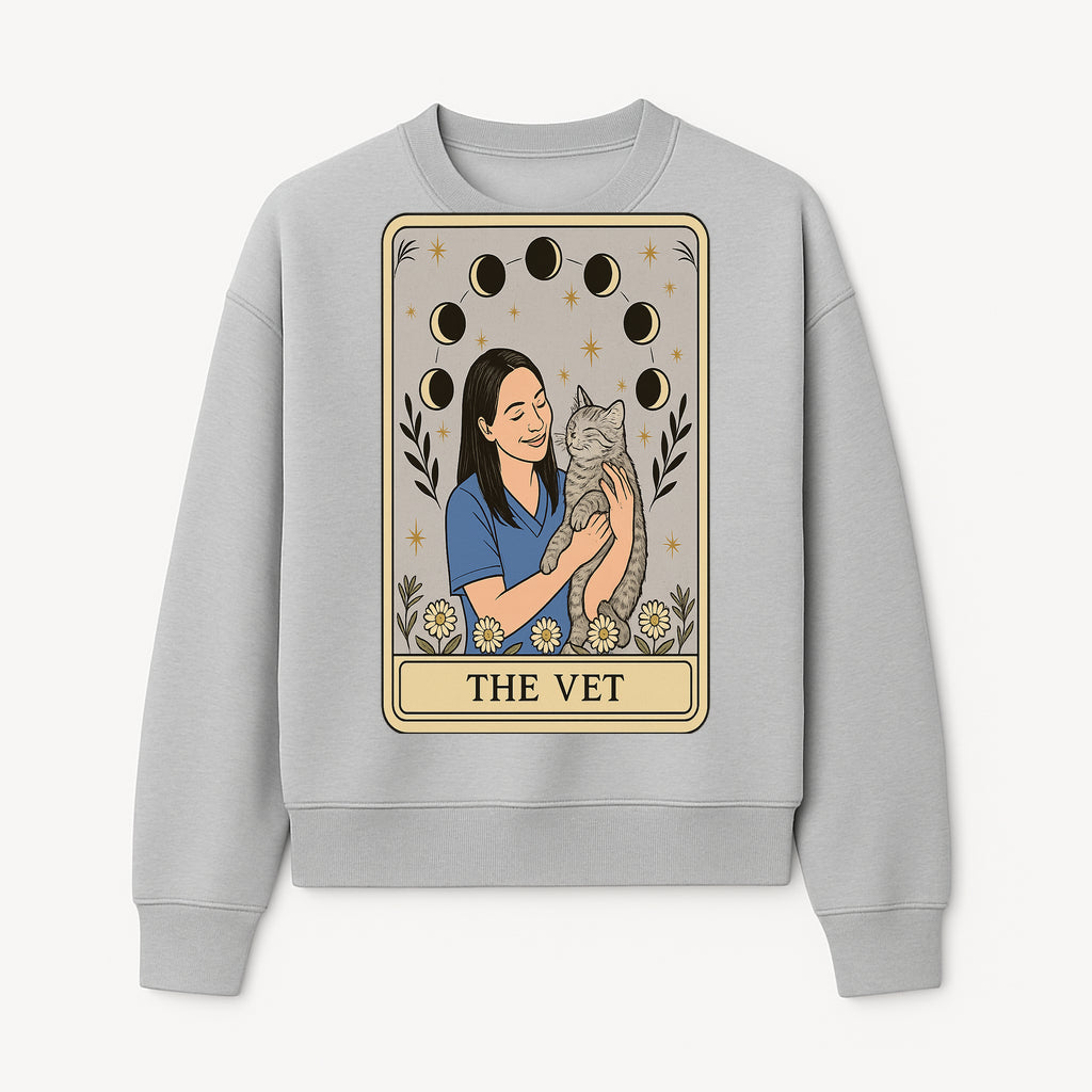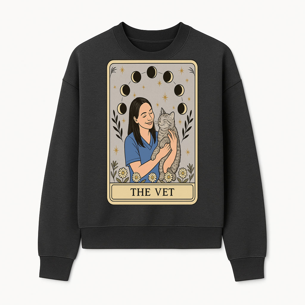 Veterinarian Art Print - Cat Lover Decor - Floral Moon Phases - Cute Vet and Cat Illustration - Animal Care Gifts - Sweatshirt