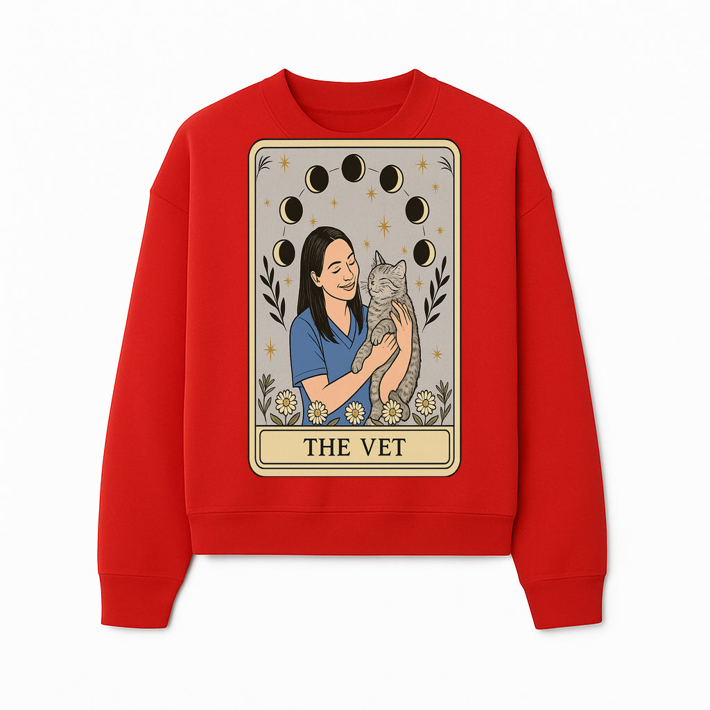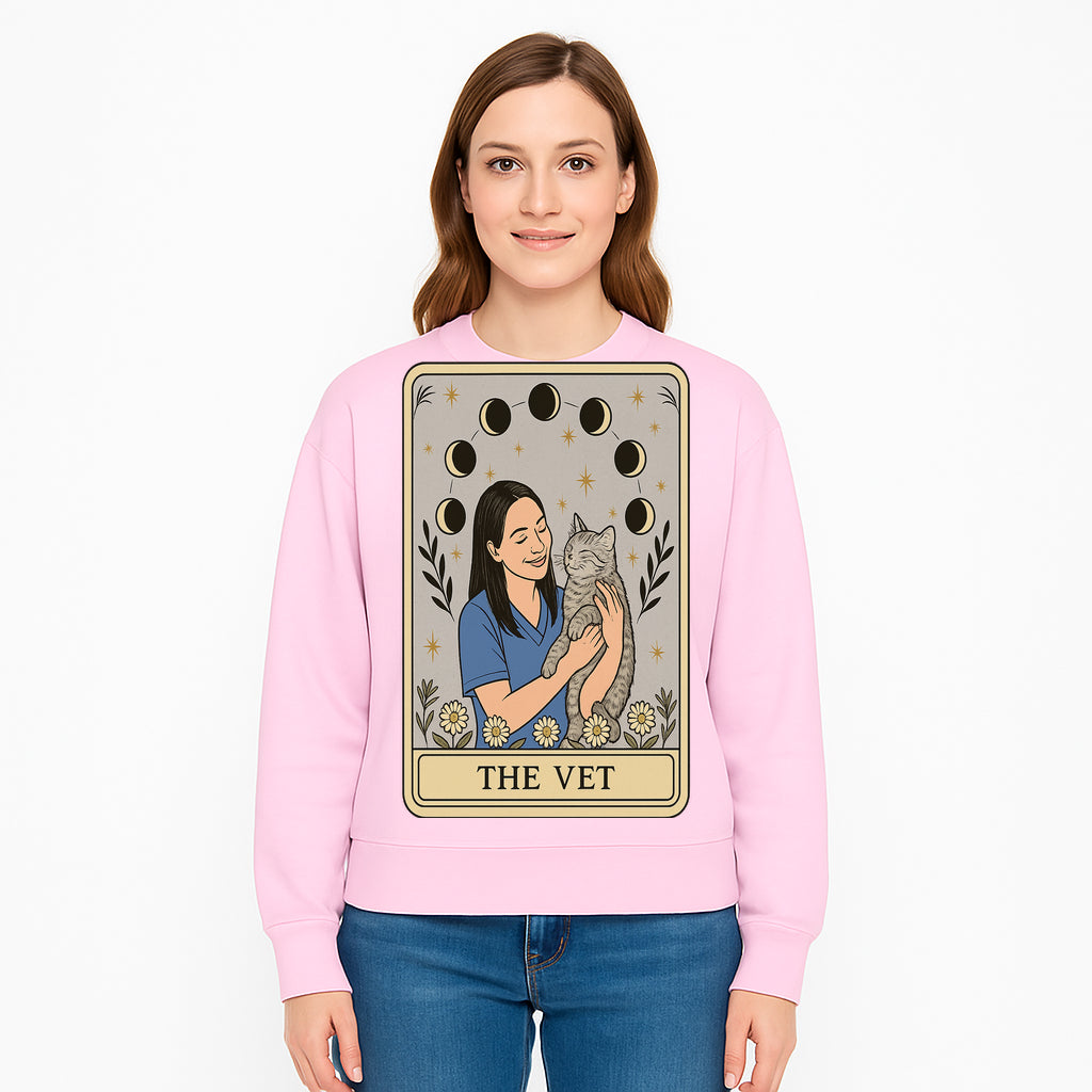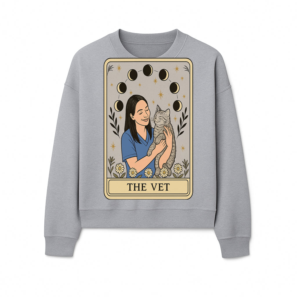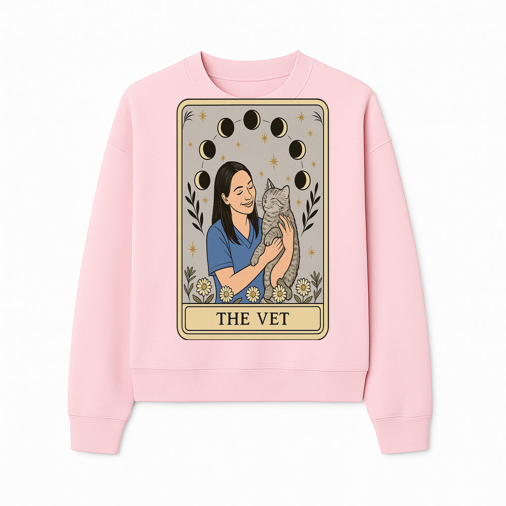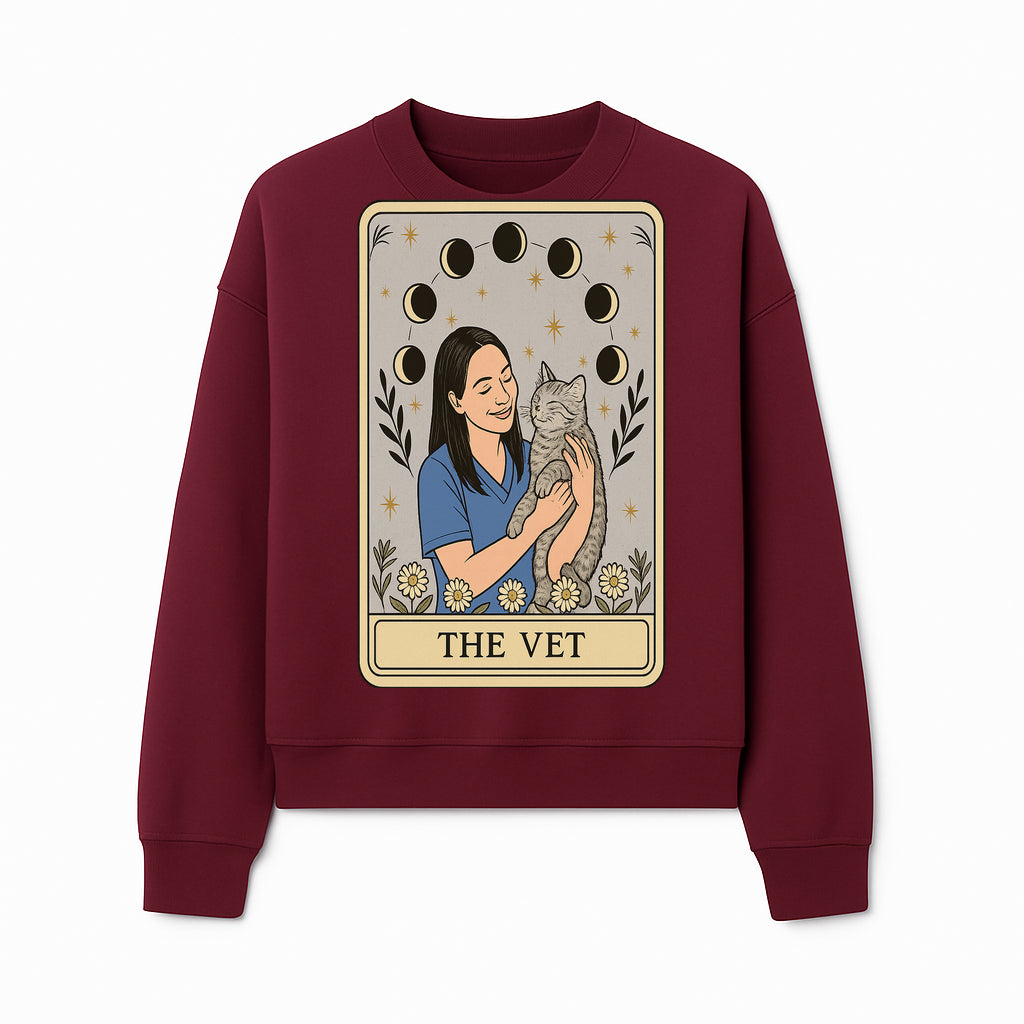 Veterinarian Art Print - Cat Lover Decor - Floral Moon Phases - Cute Vet and Cat Illustration - Animal Care Gifts - Sweatshirt