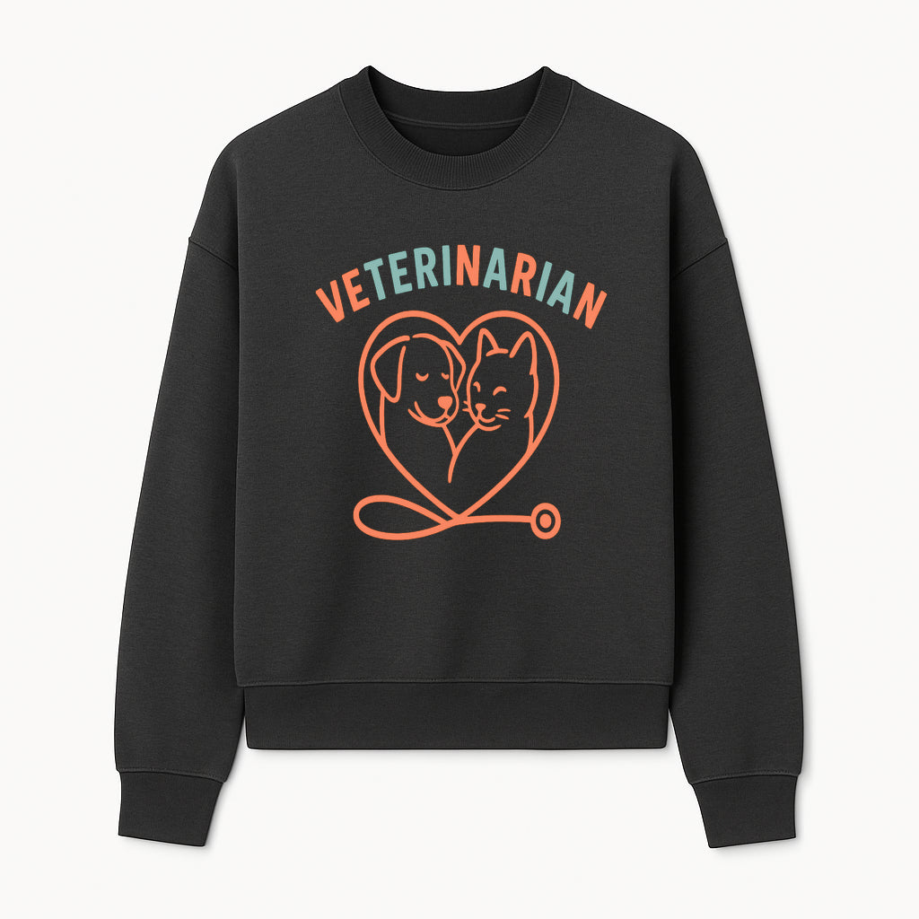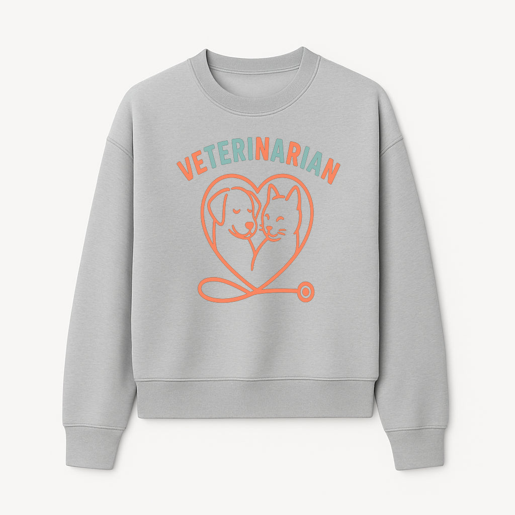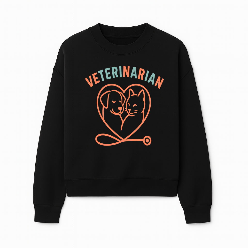 Veterinarian Love Art Print - Dog and Cat Heart Illustration for Pet Lovers - Animal Care Decor - Sweatshirt
