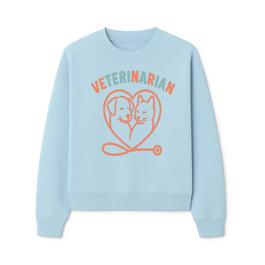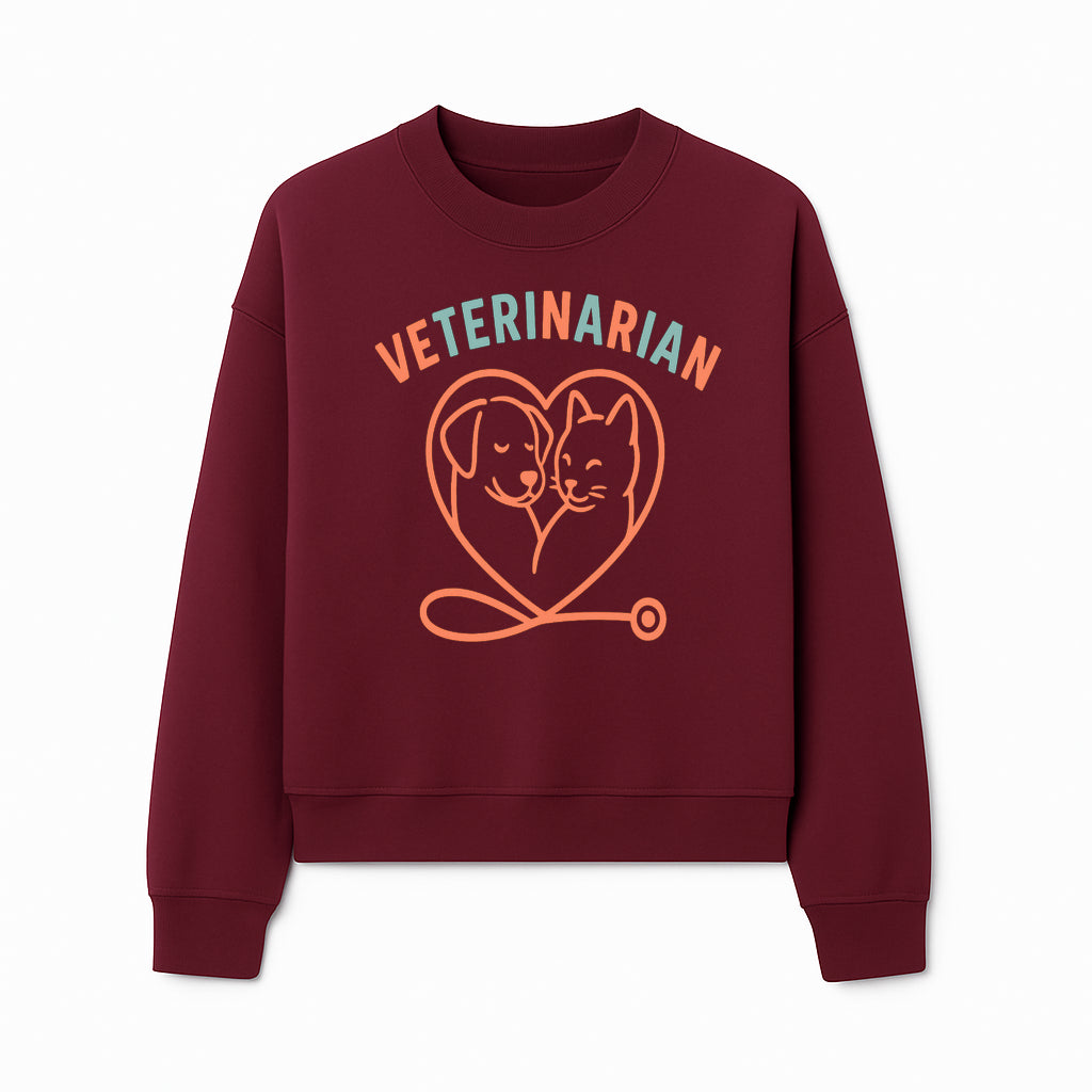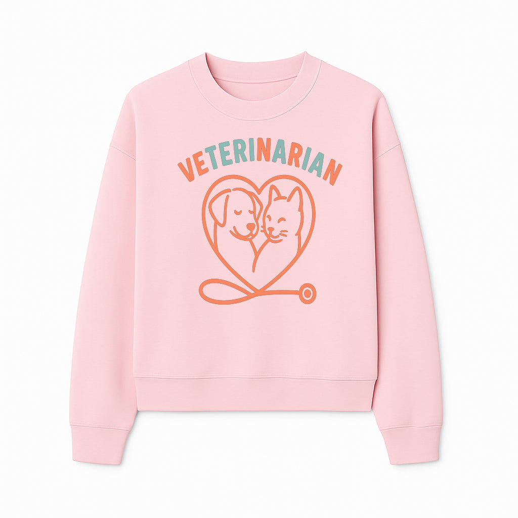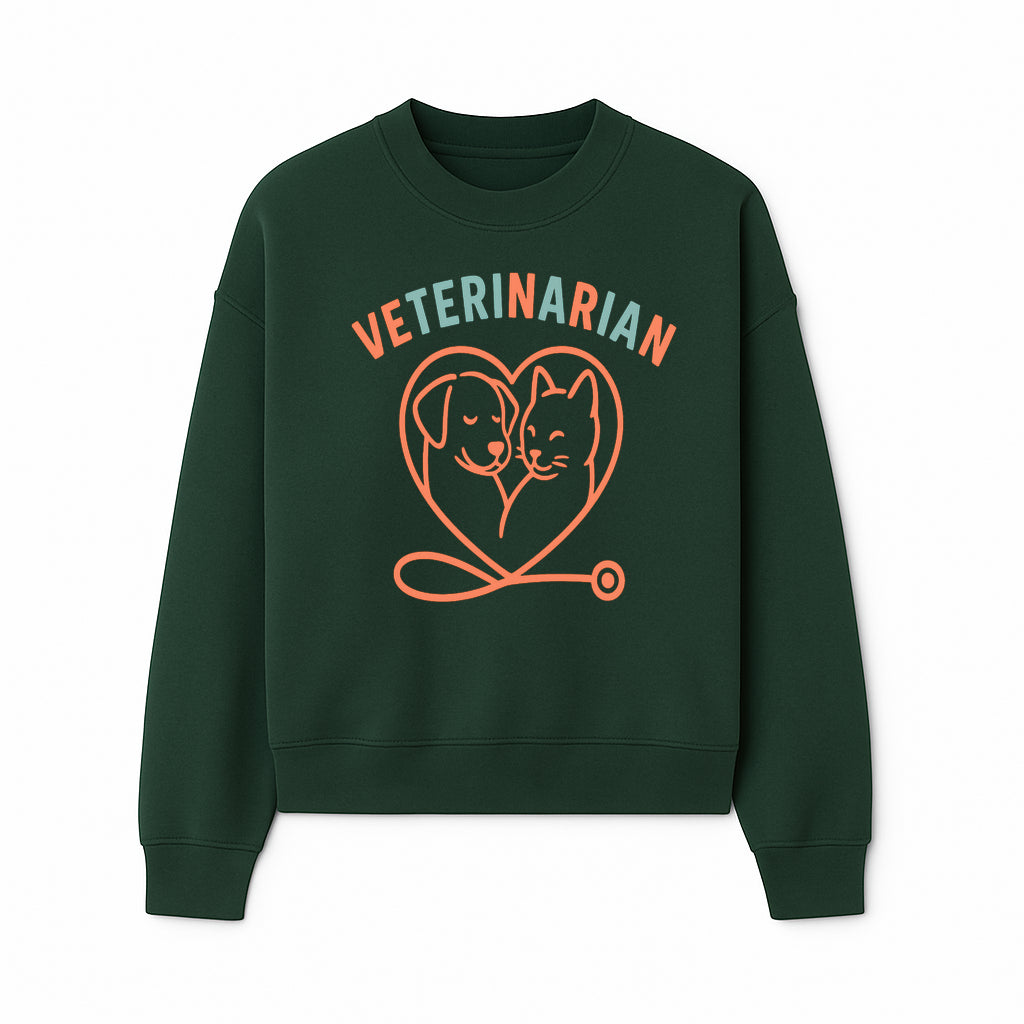 Veterinarian Love Art Print - Dog and Cat Heart Illustration for Pet Lovers - Animal Care Decor - Sweatshirt