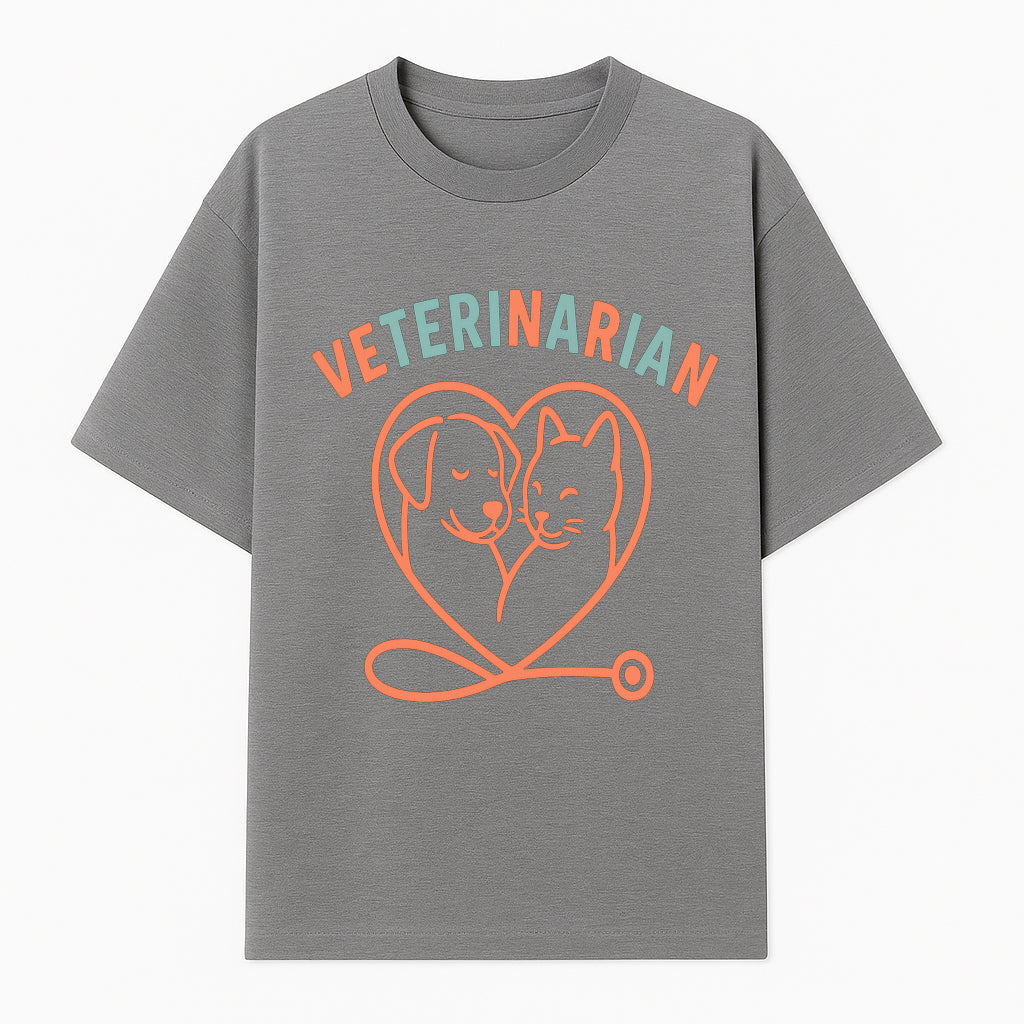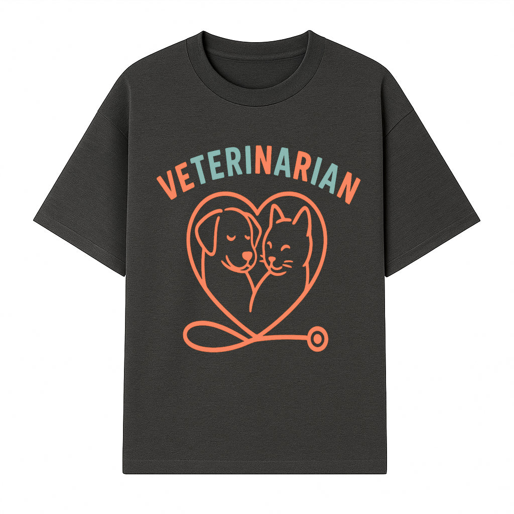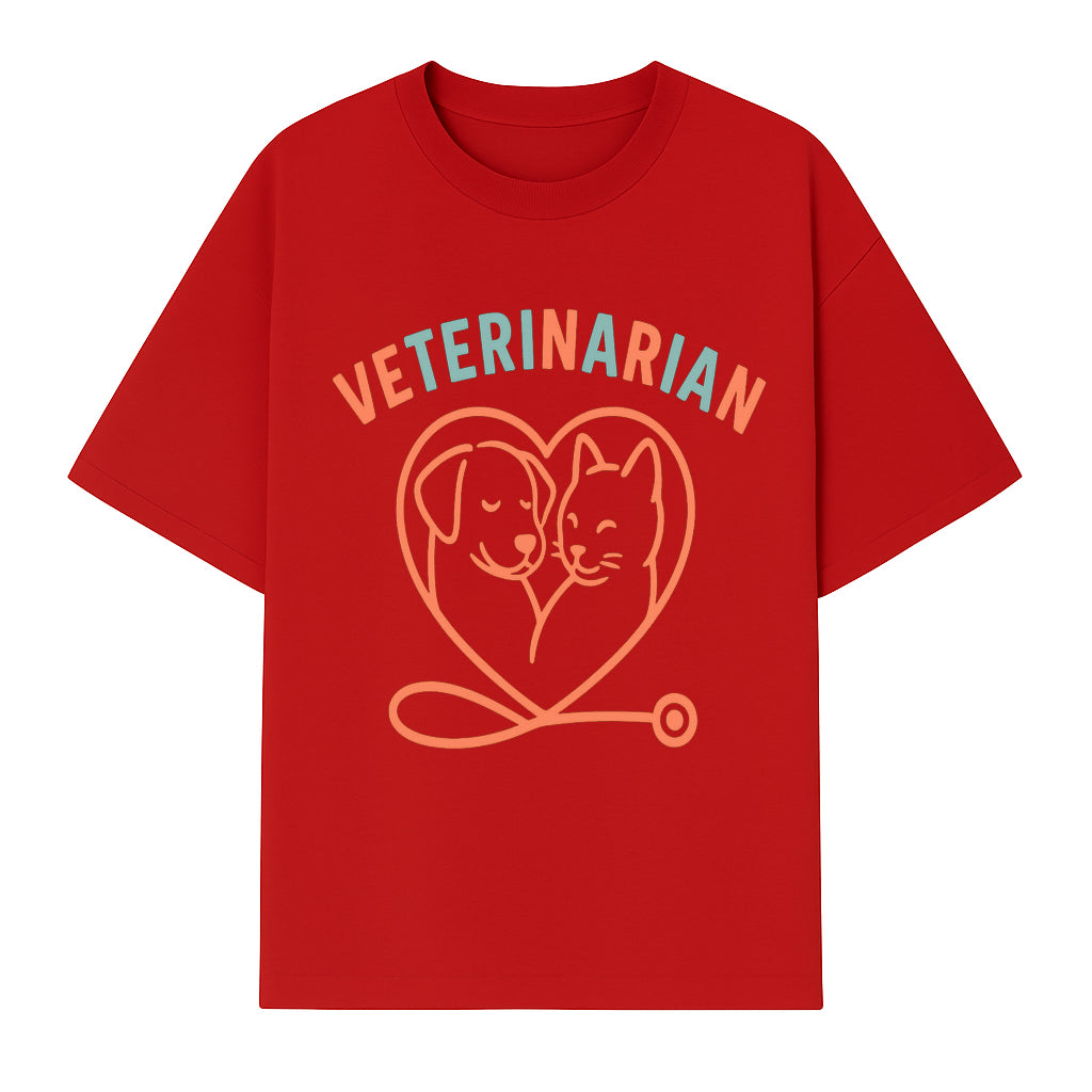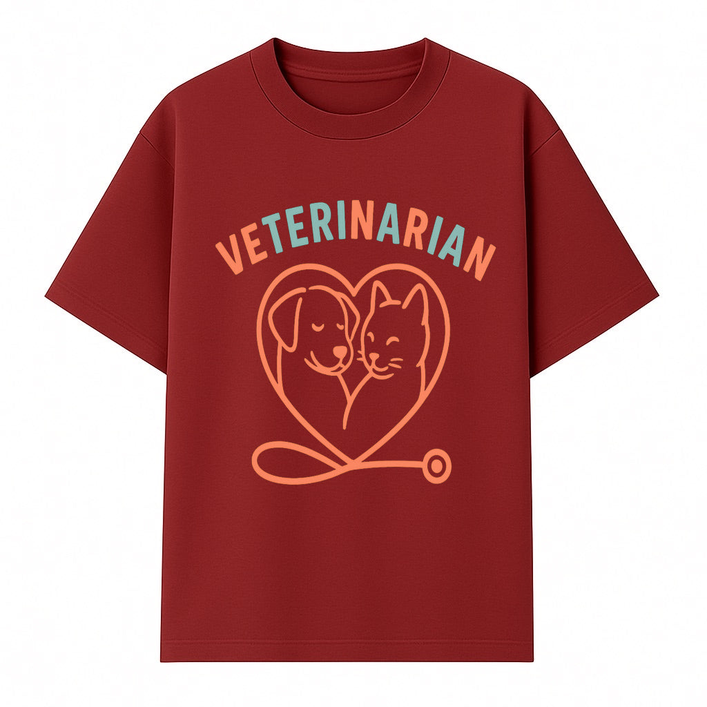 Veterinarian Love Art Print - Dog and Cat Heart Illustration for Pet Lovers - Animal Care Decor - T-shirt