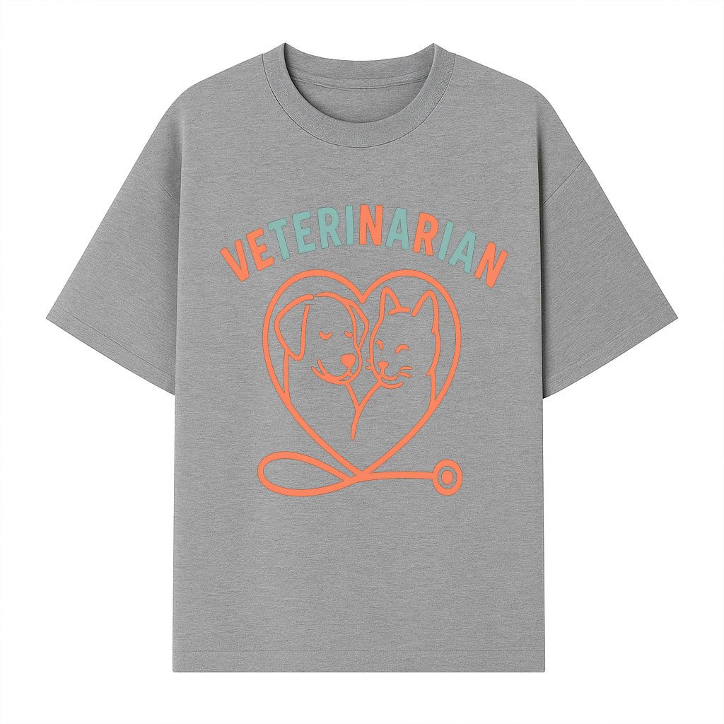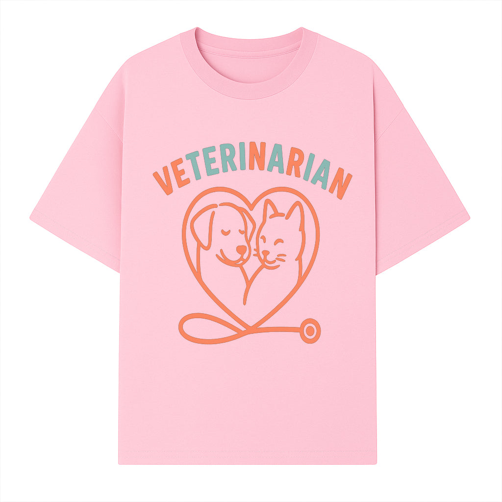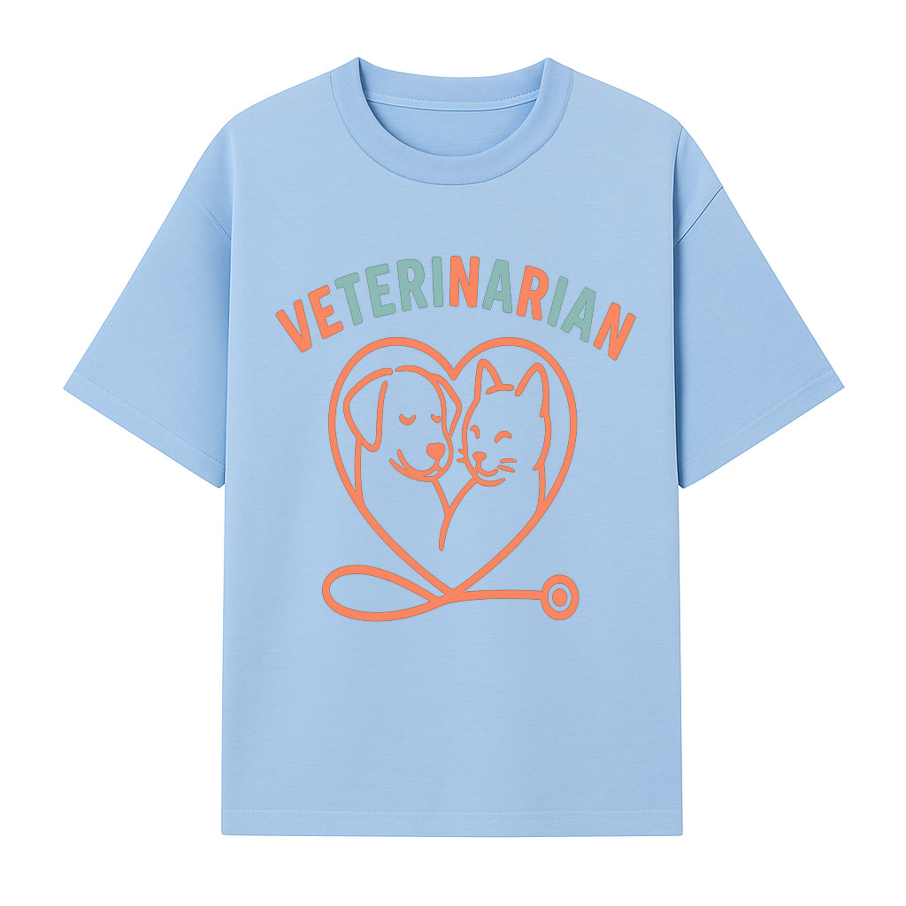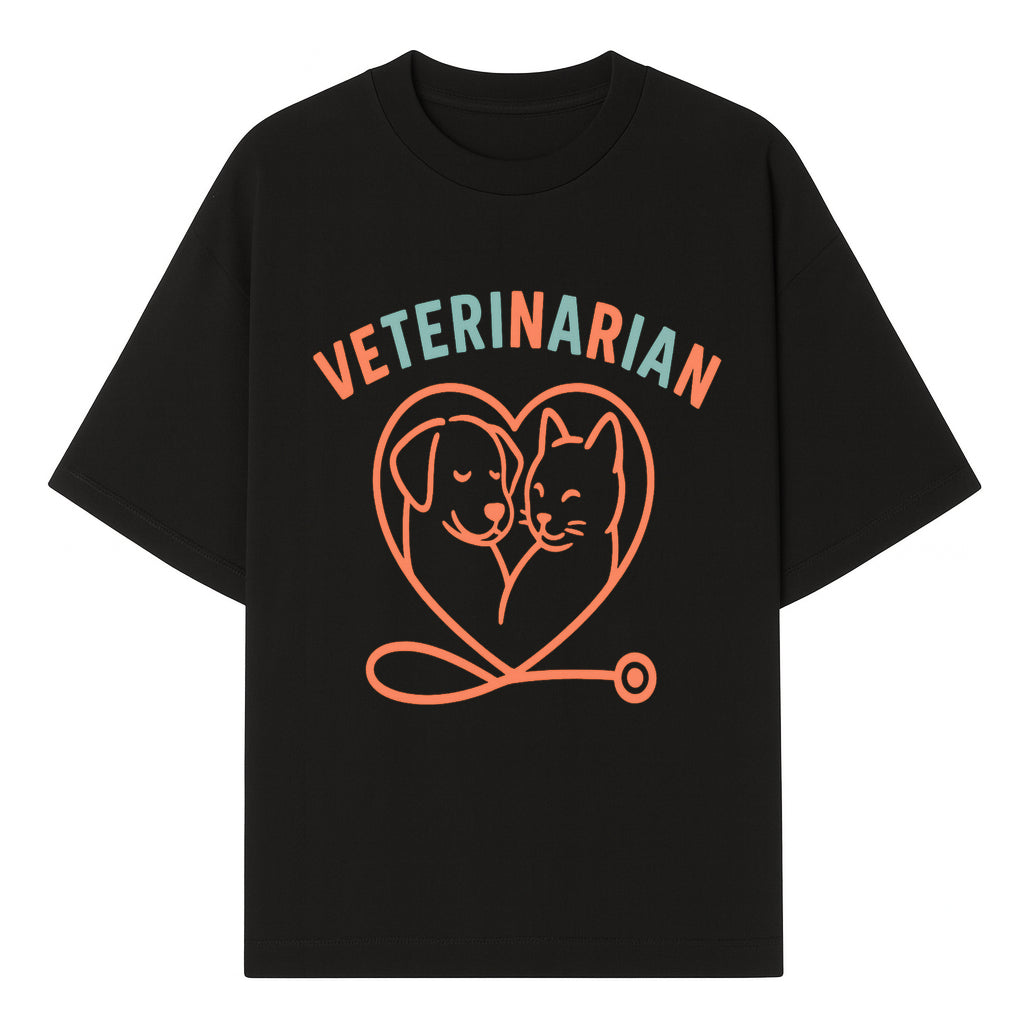 Veterinarian Love Art Print - Dog and Cat Heart Illustration for Pet Lovers - Animal Care Decor - T-shirt