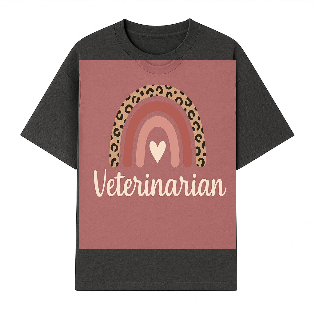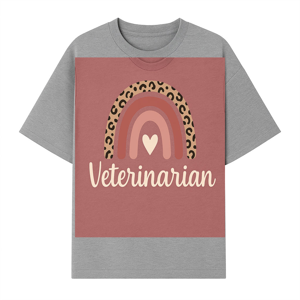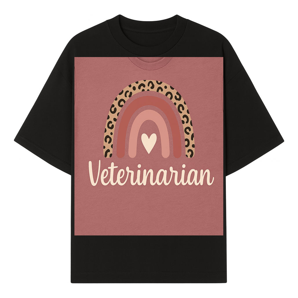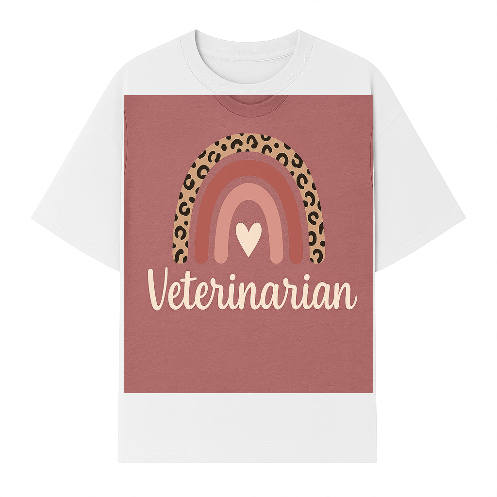 Veterinarian Rainbow Graphic Tee | Cute Animal Lover Shirt | Leopard Print Design | Pet Care Apparel | Gifts for Vet Professionals - T-shirt