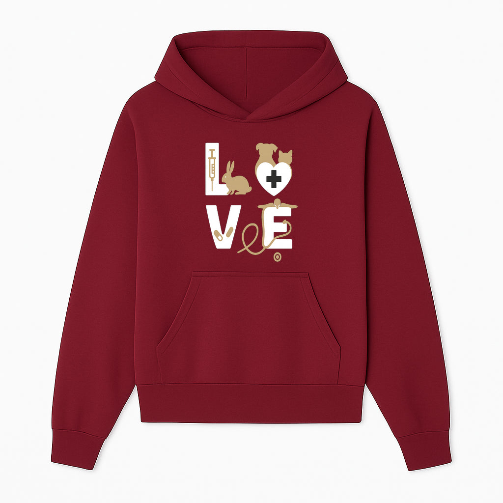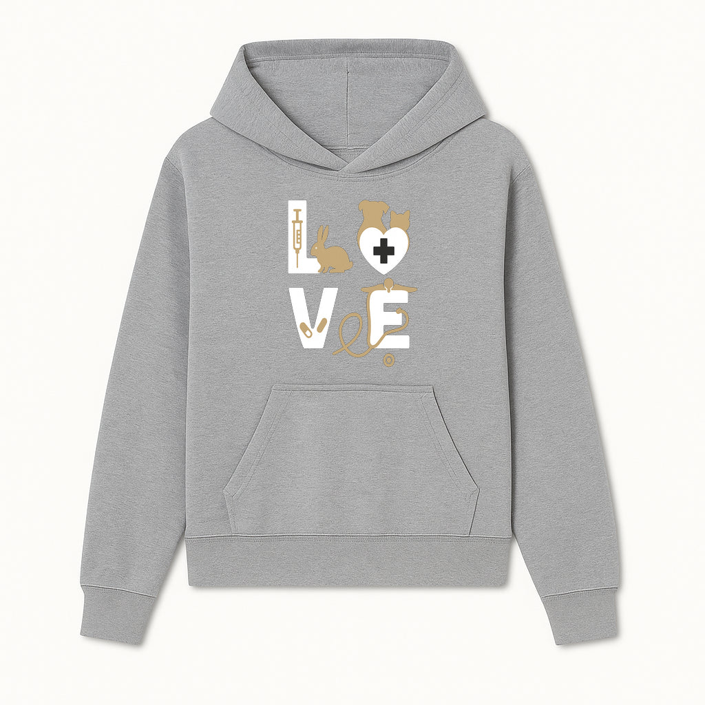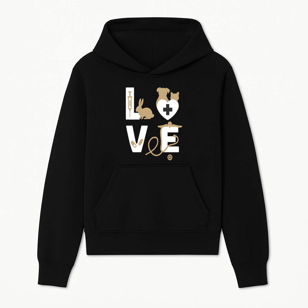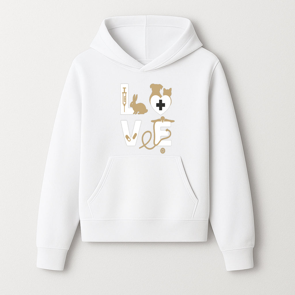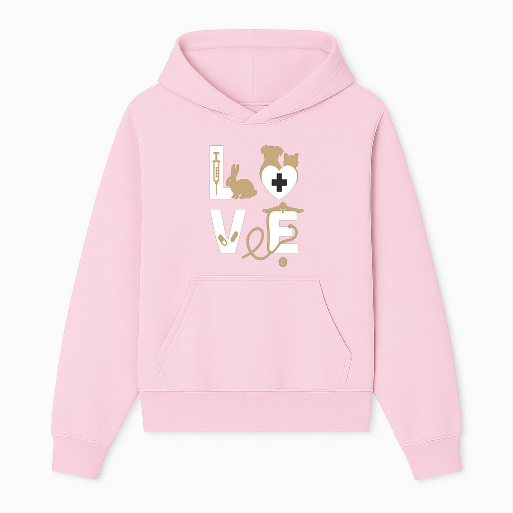 Veterinary Love Decor: Heartwarming Wall Art for Pet Owners - Cute Rabbit, Dog, Cat, and Medical Symbols - Hoodie