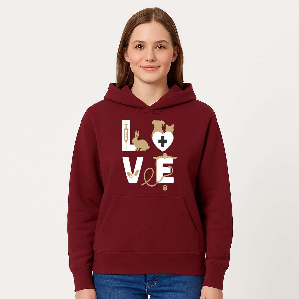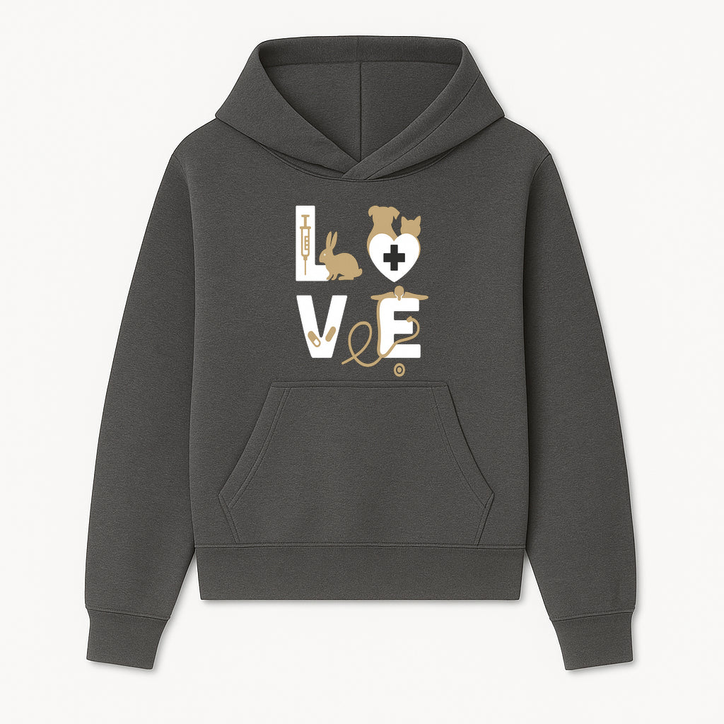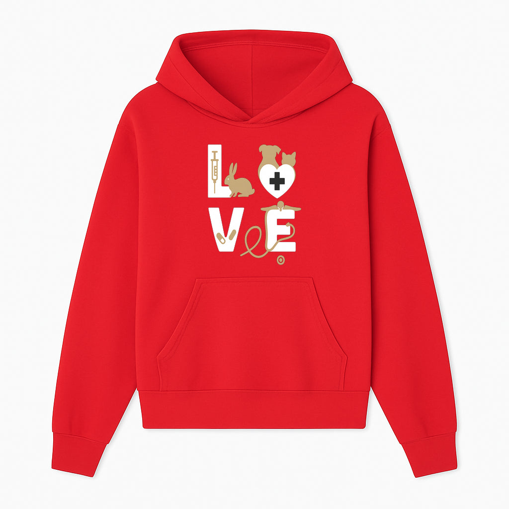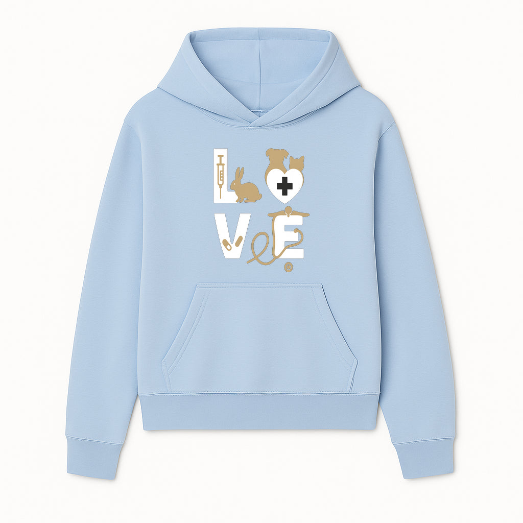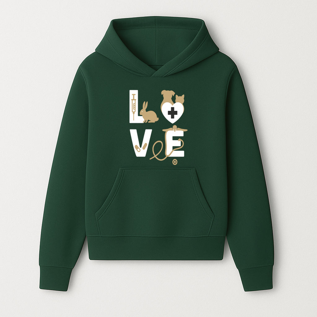 Veterinary Love Decor: Heartwarming Wall Art for Pet Owners - Cute Rabbit, Dog, Cat, and Medical Symbols - Hoodie