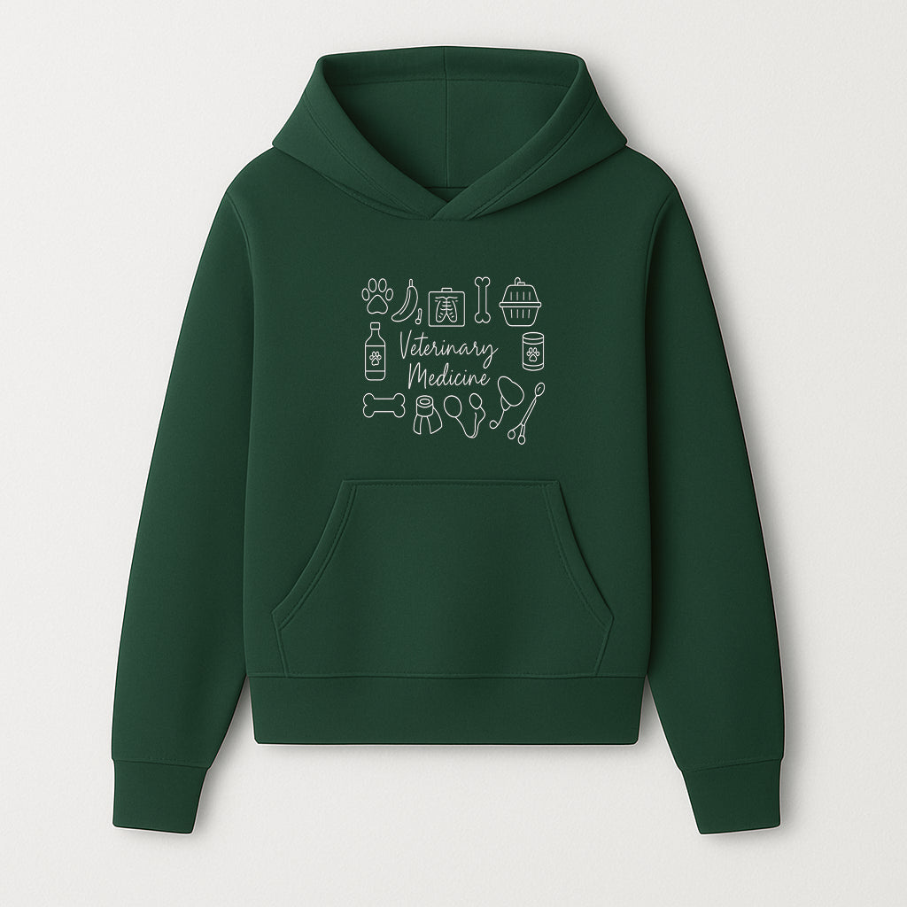Veterinary Medicine Design with Pets, Veterinary Tools, Paw Prints, and Animal Care Symbols - Perfect for Vet Lovers and Professionals - Hoodie