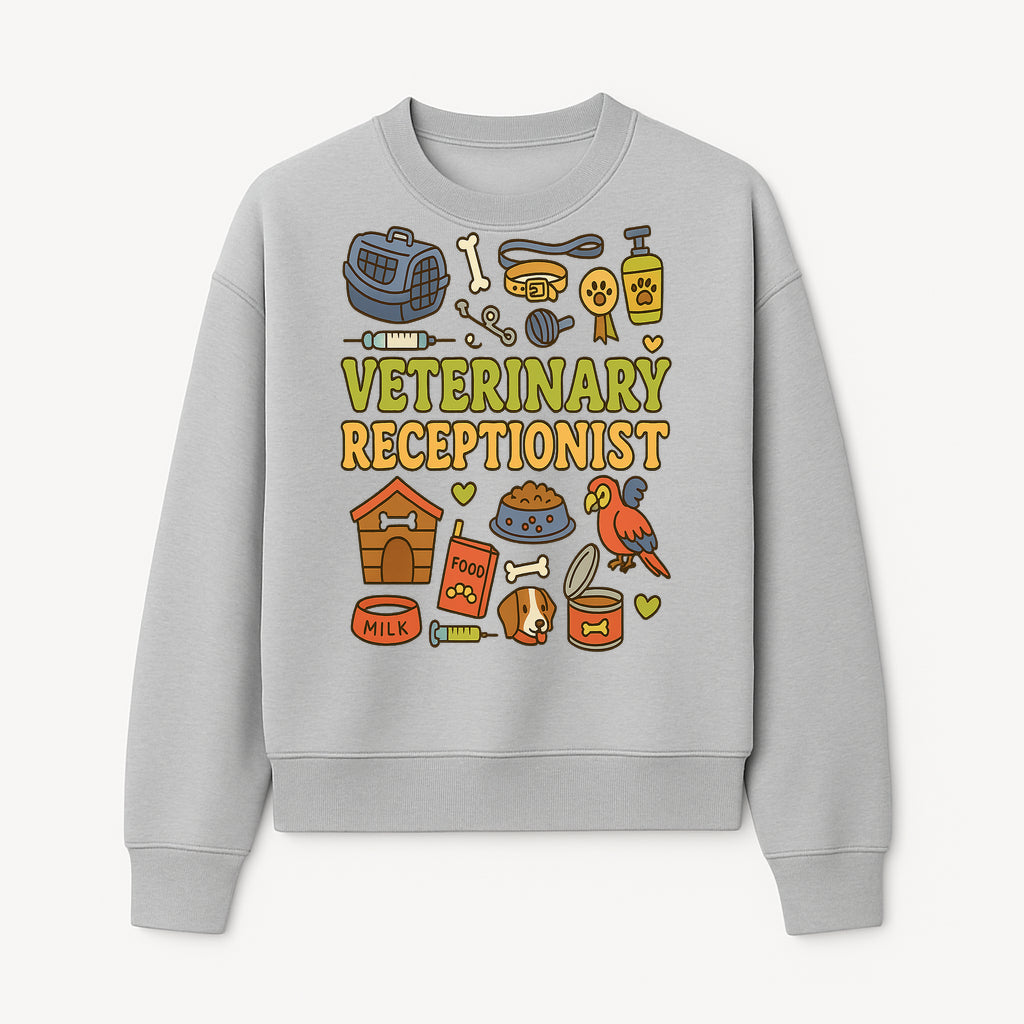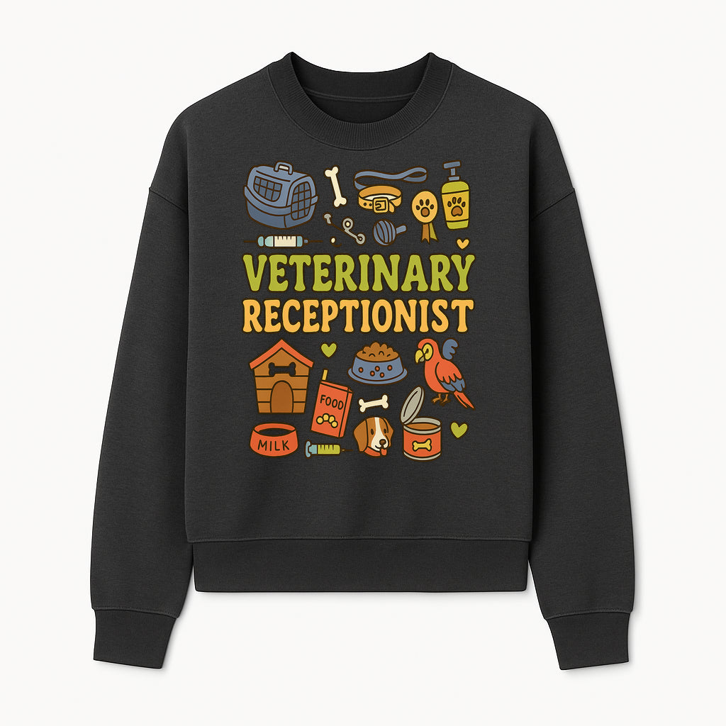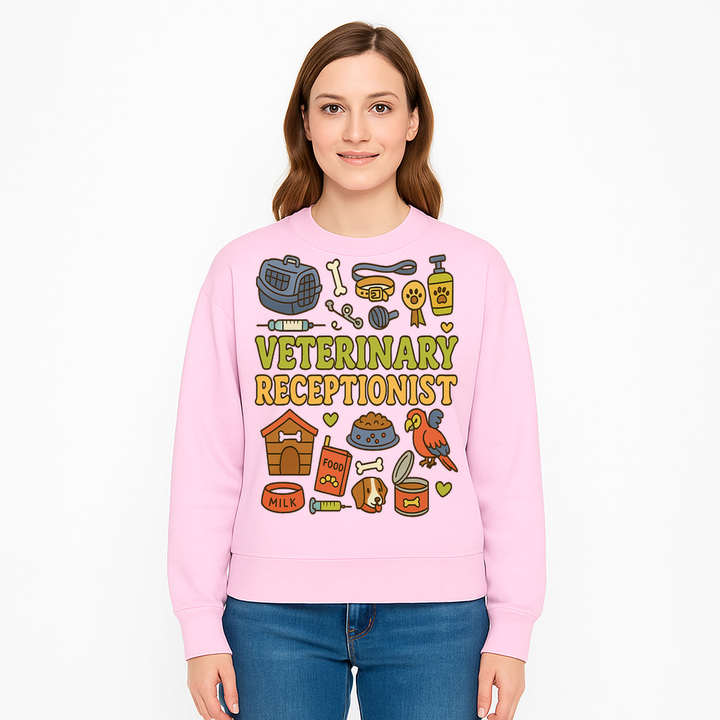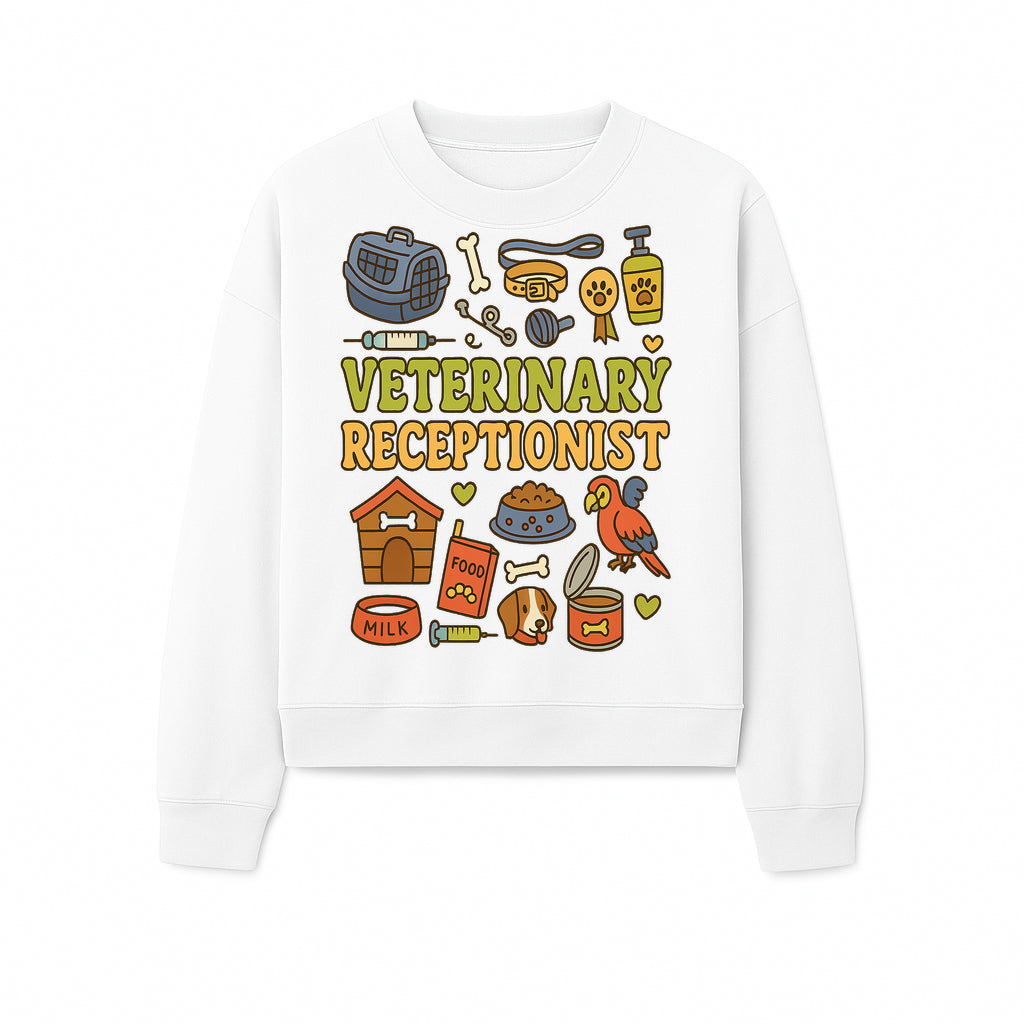 Veterinary Receptionist Art Print - Cute Animal Illustrations, Pet Care Theme, Perfect Gift for Animal Lovers and Vet Professionals - Sweatshirt