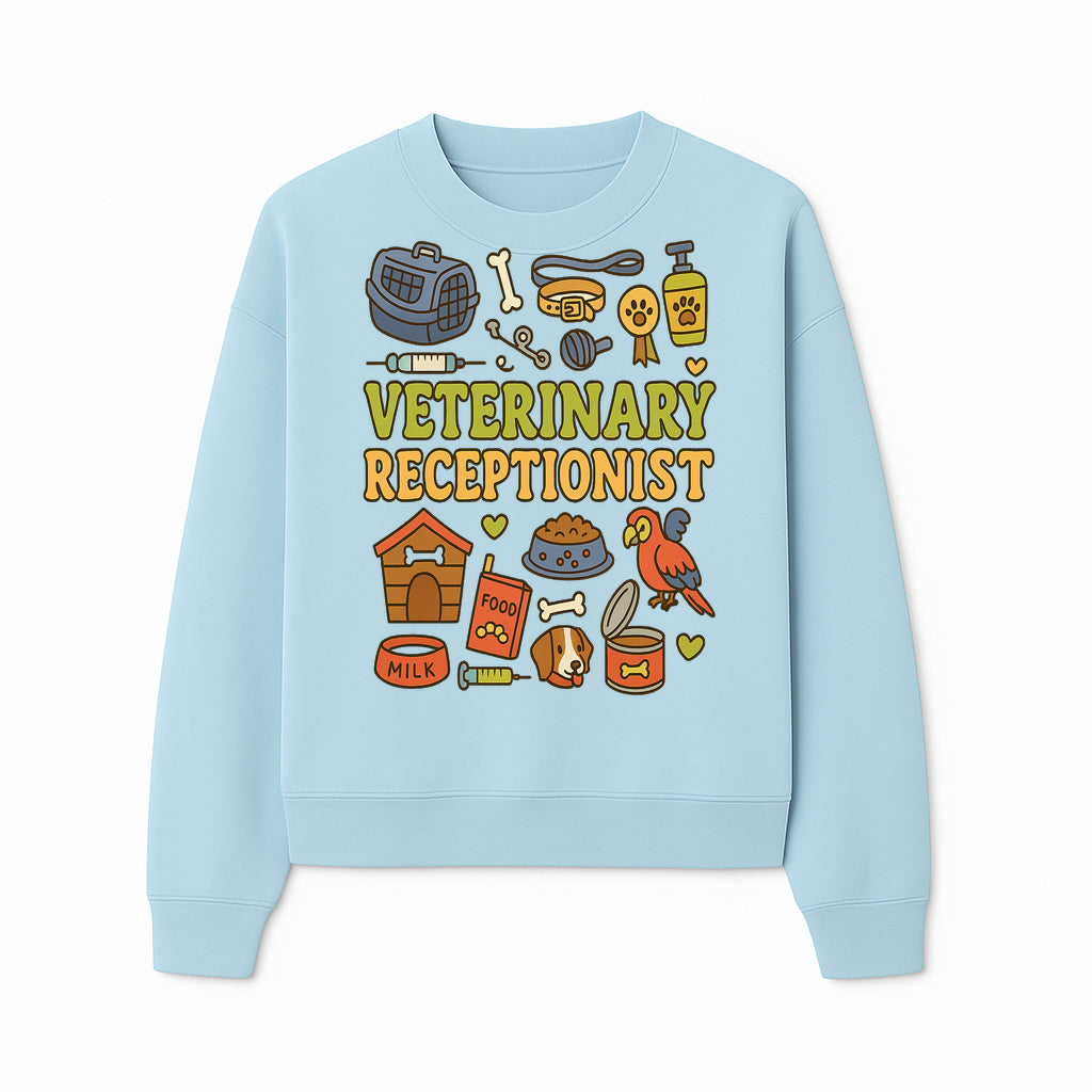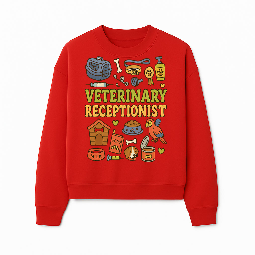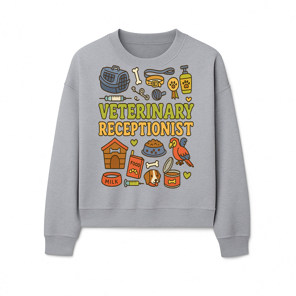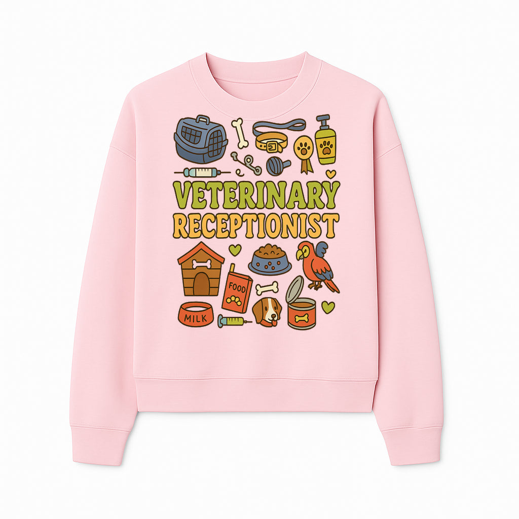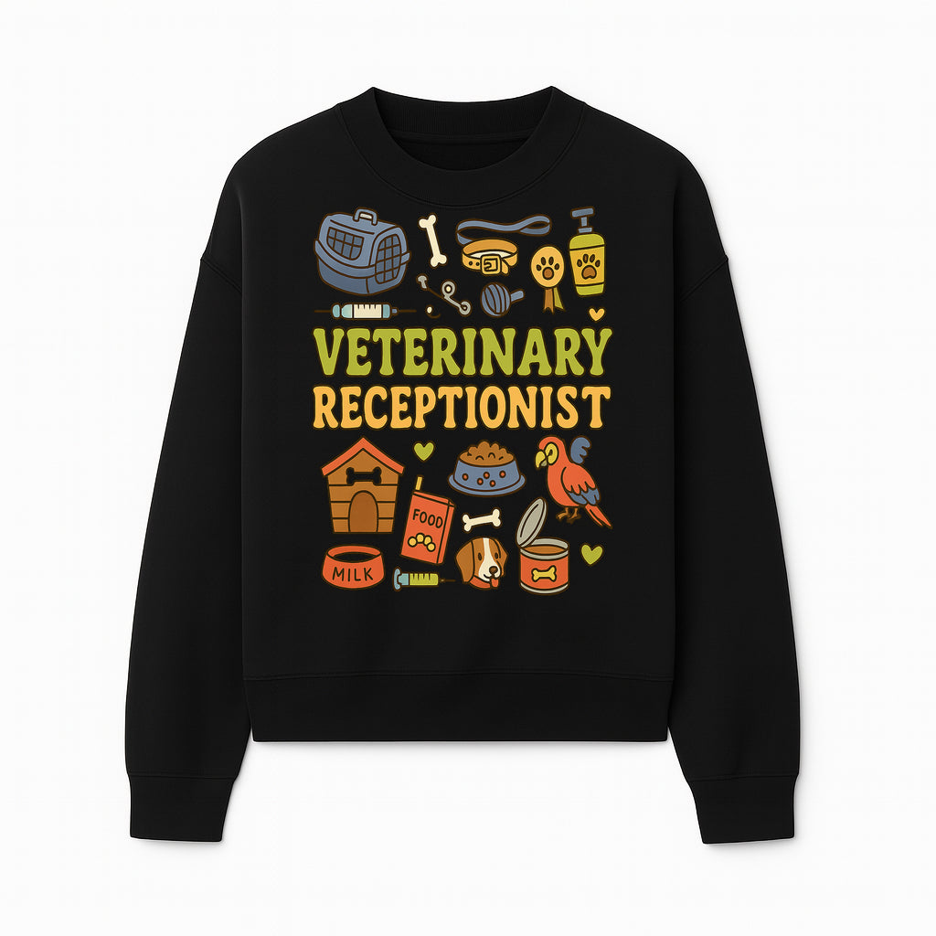 Veterinary Receptionist Art Print - Cute Animal Illustrations, Pet Care Theme, Perfect Gift for Animal Lovers and Vet Professionals - Sweatshirt