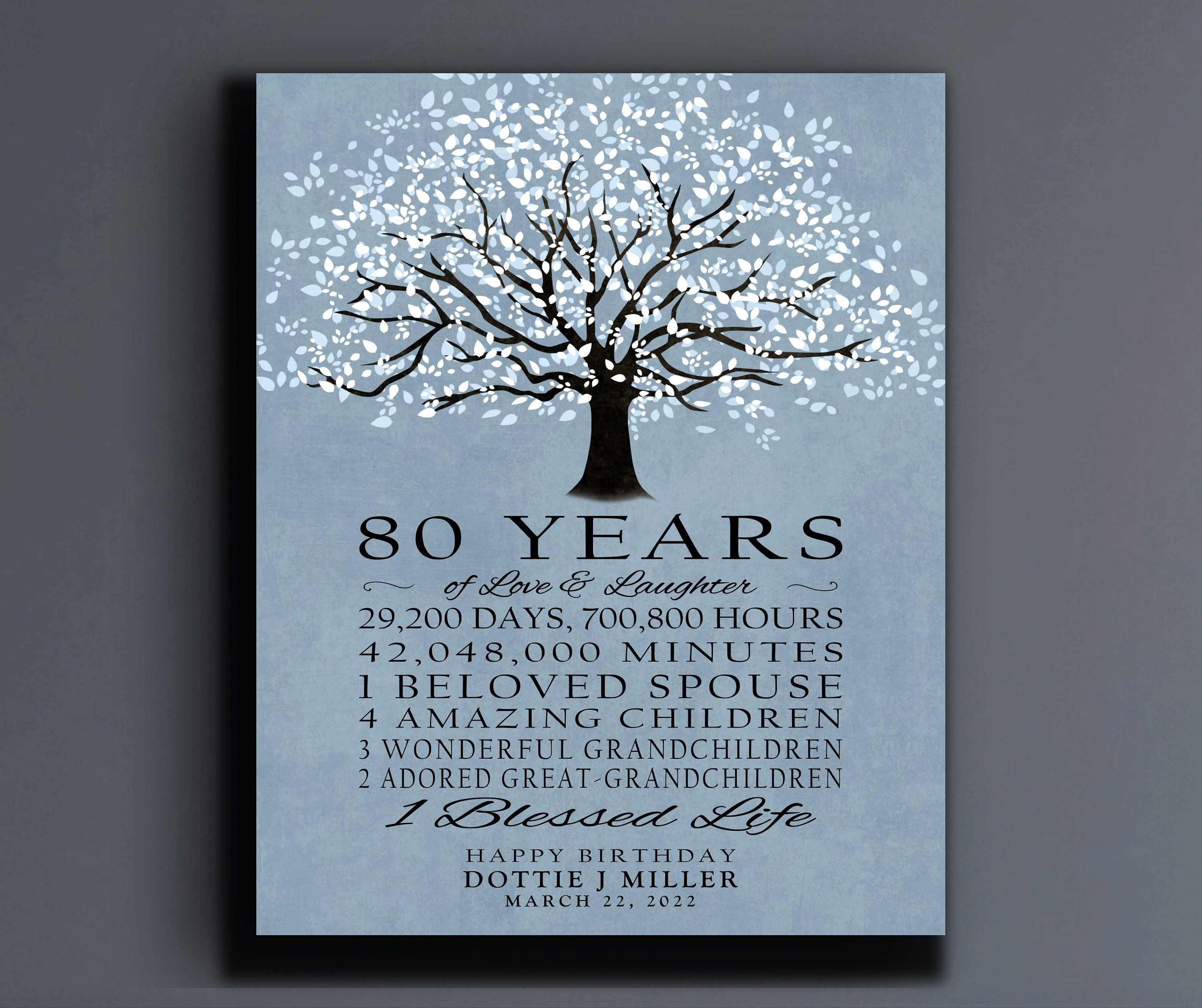 80 Years 80th BIRTHDAY GIFT Personalized 80th Birthday Years Happy Birthday Tree Parent Grandparent Gift Idea from Children Grandchildren