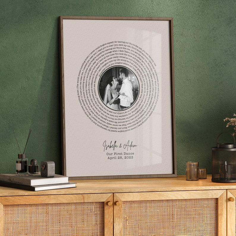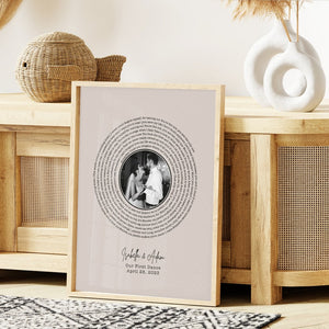 Custom Vinyl Lyrics Framed Canvas Art Print with Photo, Personalized Wedding Gift, Gift for Her Custom Song Lyrics Wall Art First Dance Song