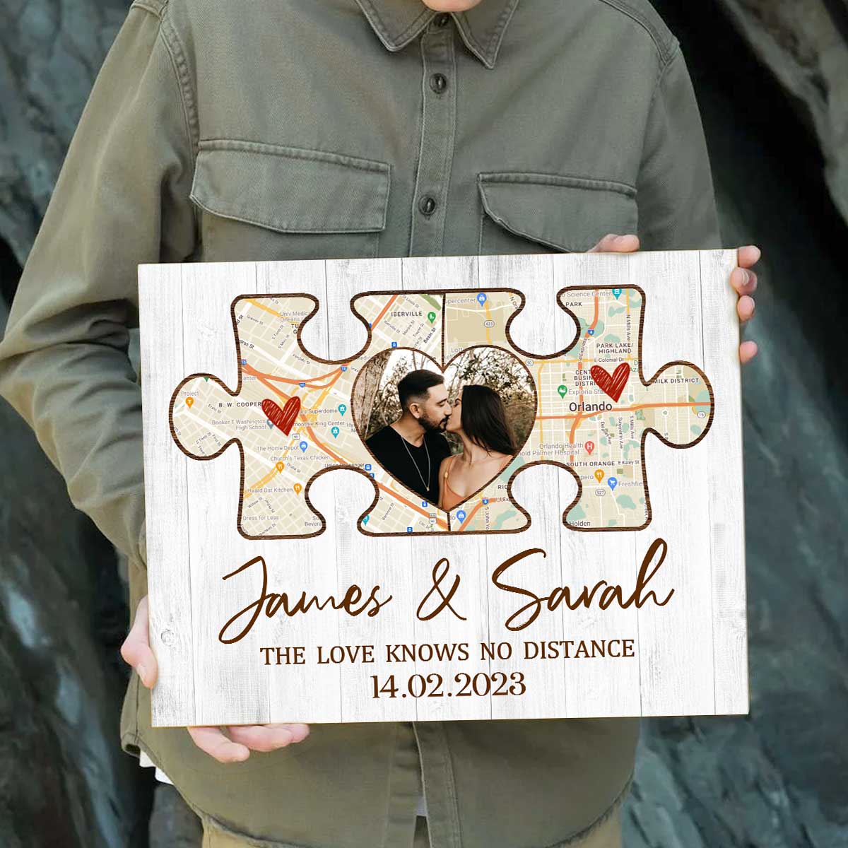 Long Distance Map Gift, Personalized Couple Puzzle Map Canvas Print, Long Distance Relationship Valentines Gift
