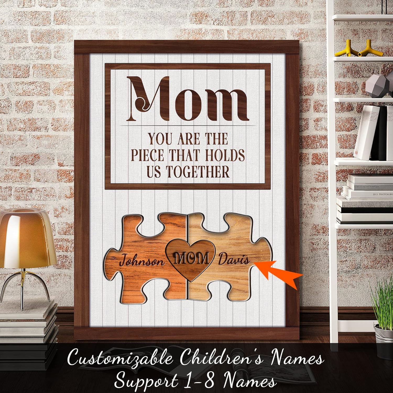 Personalized Mother's Day Gifts for Mom from Son Daughter Unique Birthday Presents for Mom Custom Puzzle Sign Canvas Prints Rustic Wall Art Home Decor