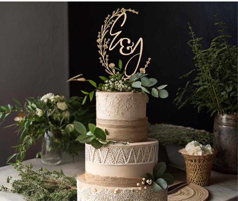 Custom Wedding Cake Toppers, Rustic Wedding Cake Topper, Custom Cake Topper, Initial Cake Topper,Cake Topper Wedding Gold