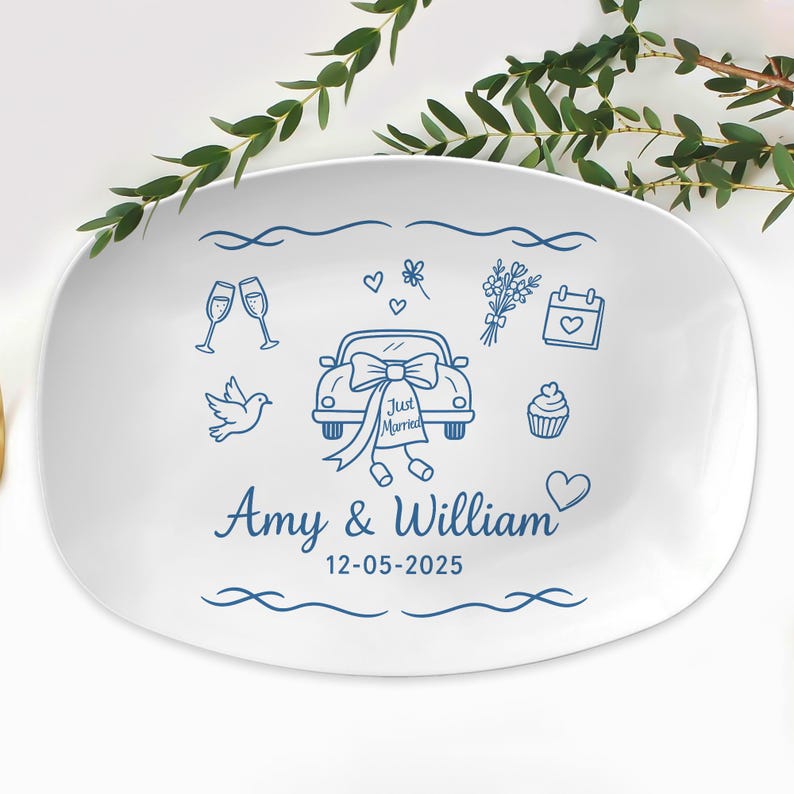 Custom Wedding Platter Personalized Just Married Plate with Names & Date, Engagement Gift, Bridal Shower Keepsake, Newlywed Decor