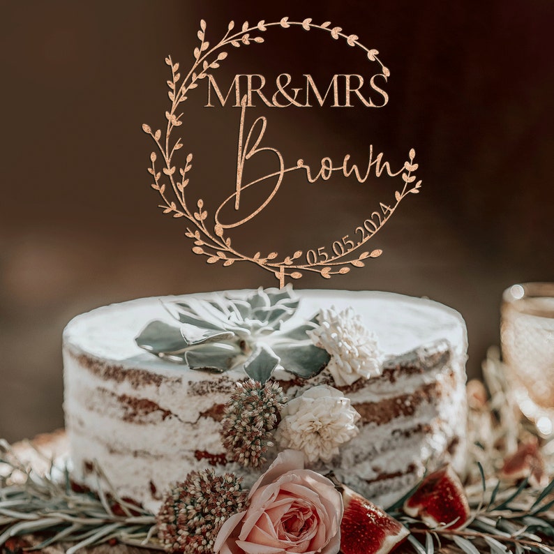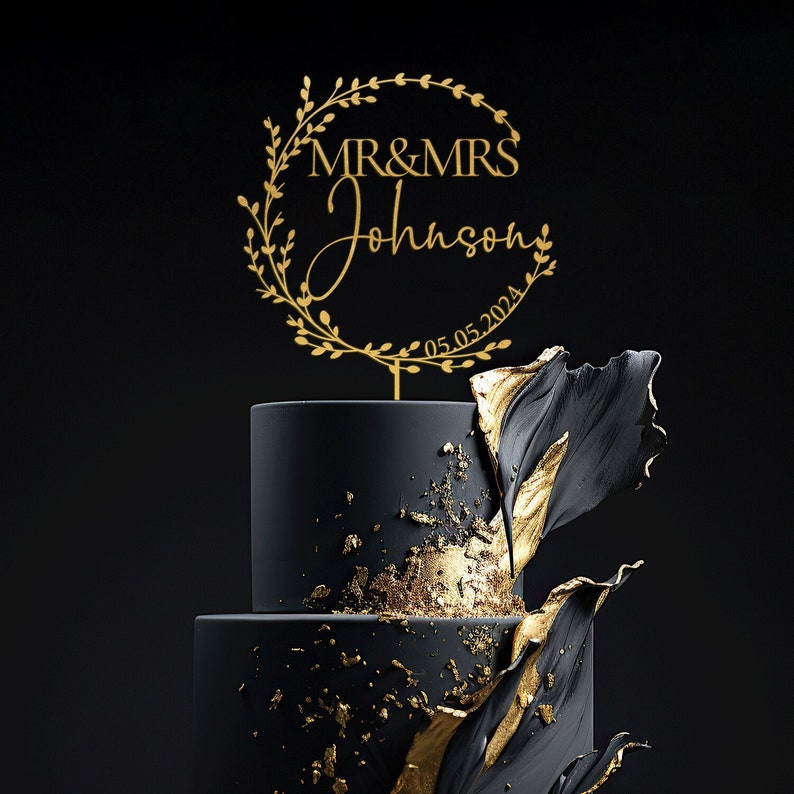 Gold wedding cake topper, Mr Mrs cake topper,Personalized cake topper,Wedding cake topper,Anniversary Cake topper,Custom cake topper, Rustic