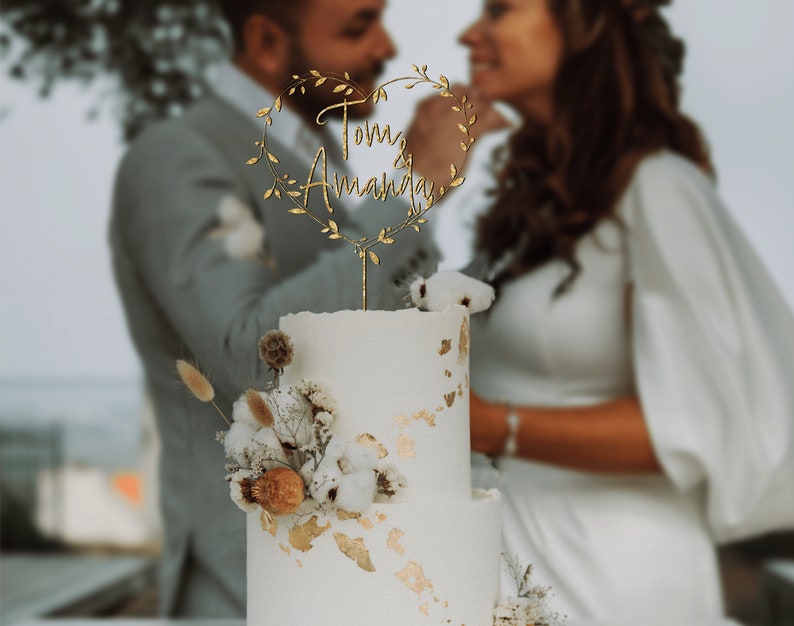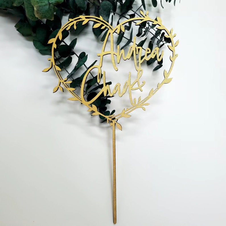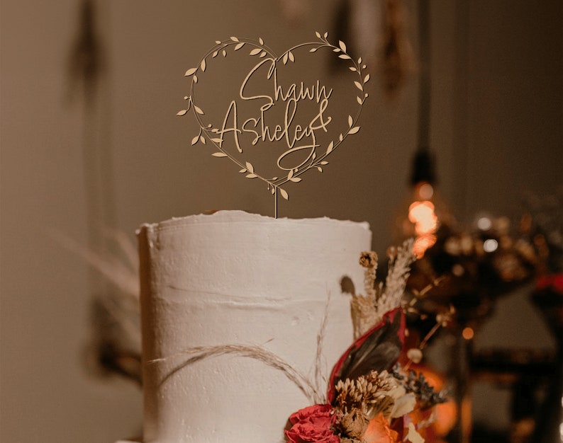 Personalized Wedding Cake Topper with heart, Custom Couples Script Cake Topper for Weddings, Rustic cake topper, Anniversary Cake toppers