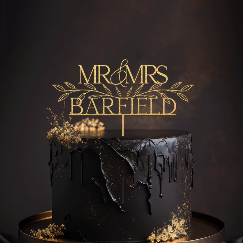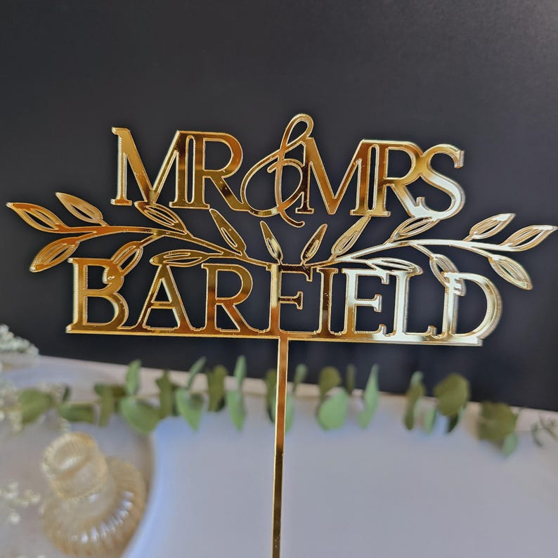 Rustic Gold Wedding Cake Topper, Floral Cake topper for Wedding, Mr and Mrs Cake Toppers, Custom Cake Toppers, Anniversary Cake Topper