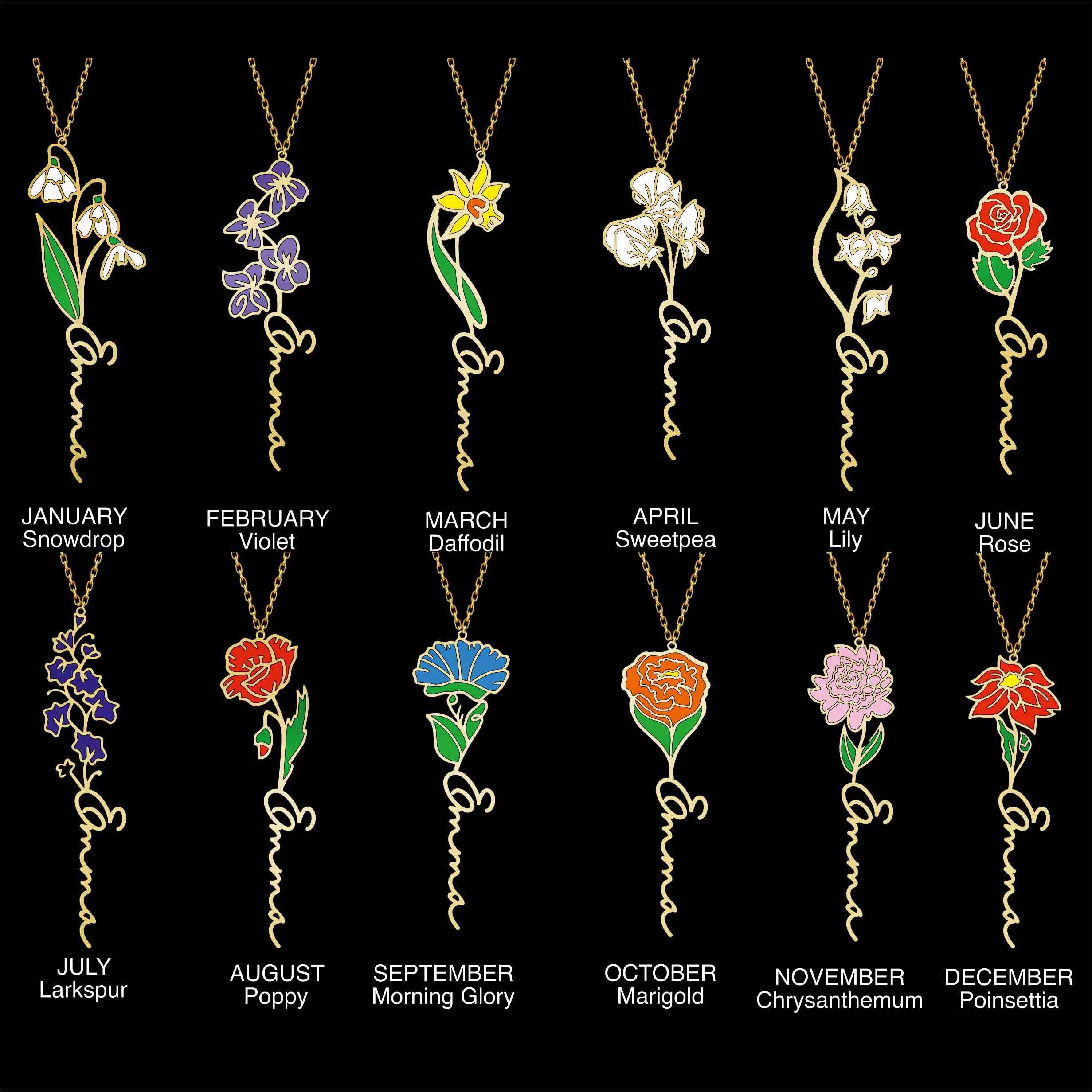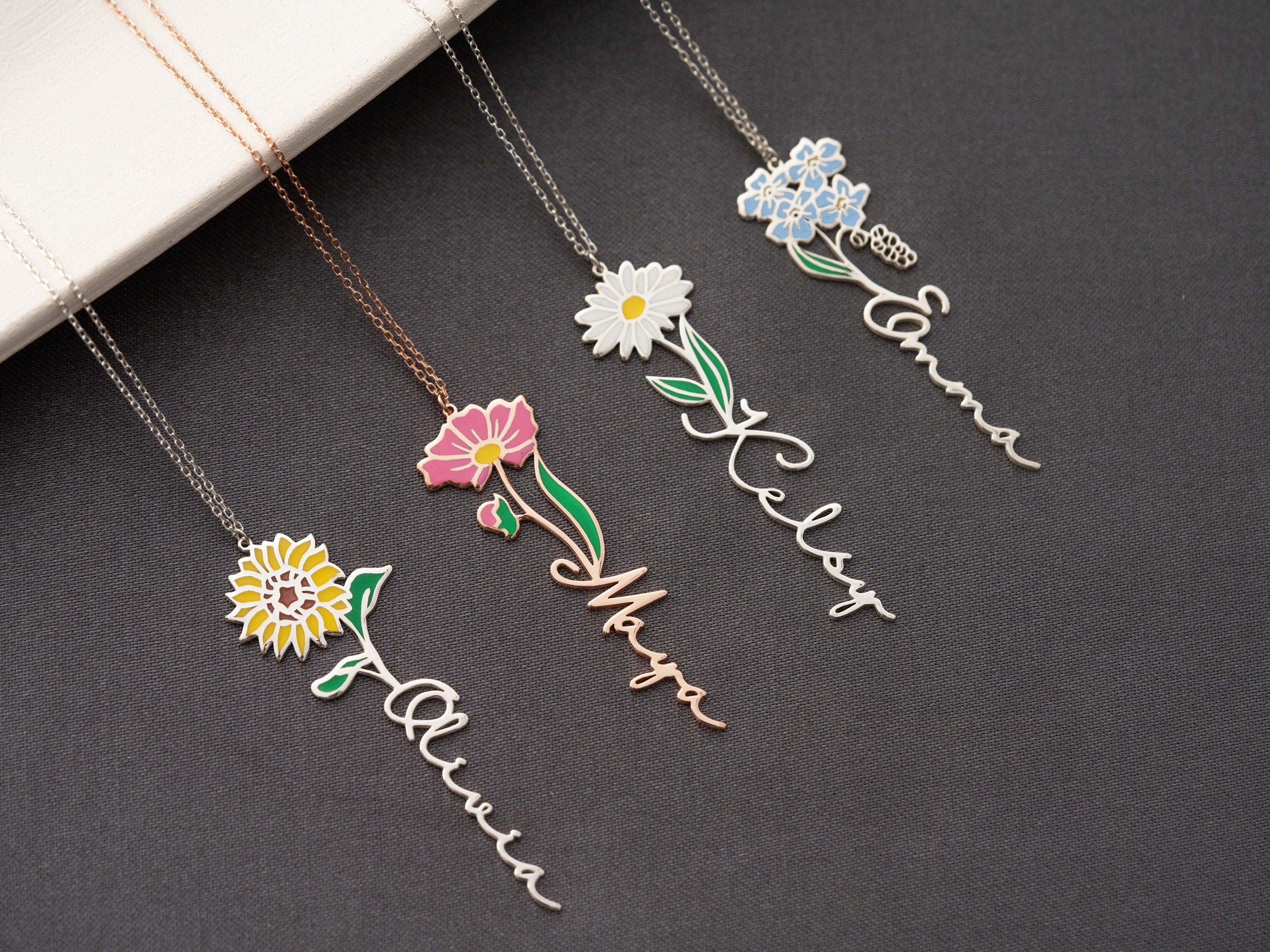 Personalized Birth Flower Necklace Custom Name Necklace Floral Name Necklace Custom Name Jewelry, Personalized Gifts For Her Christmas Gifts