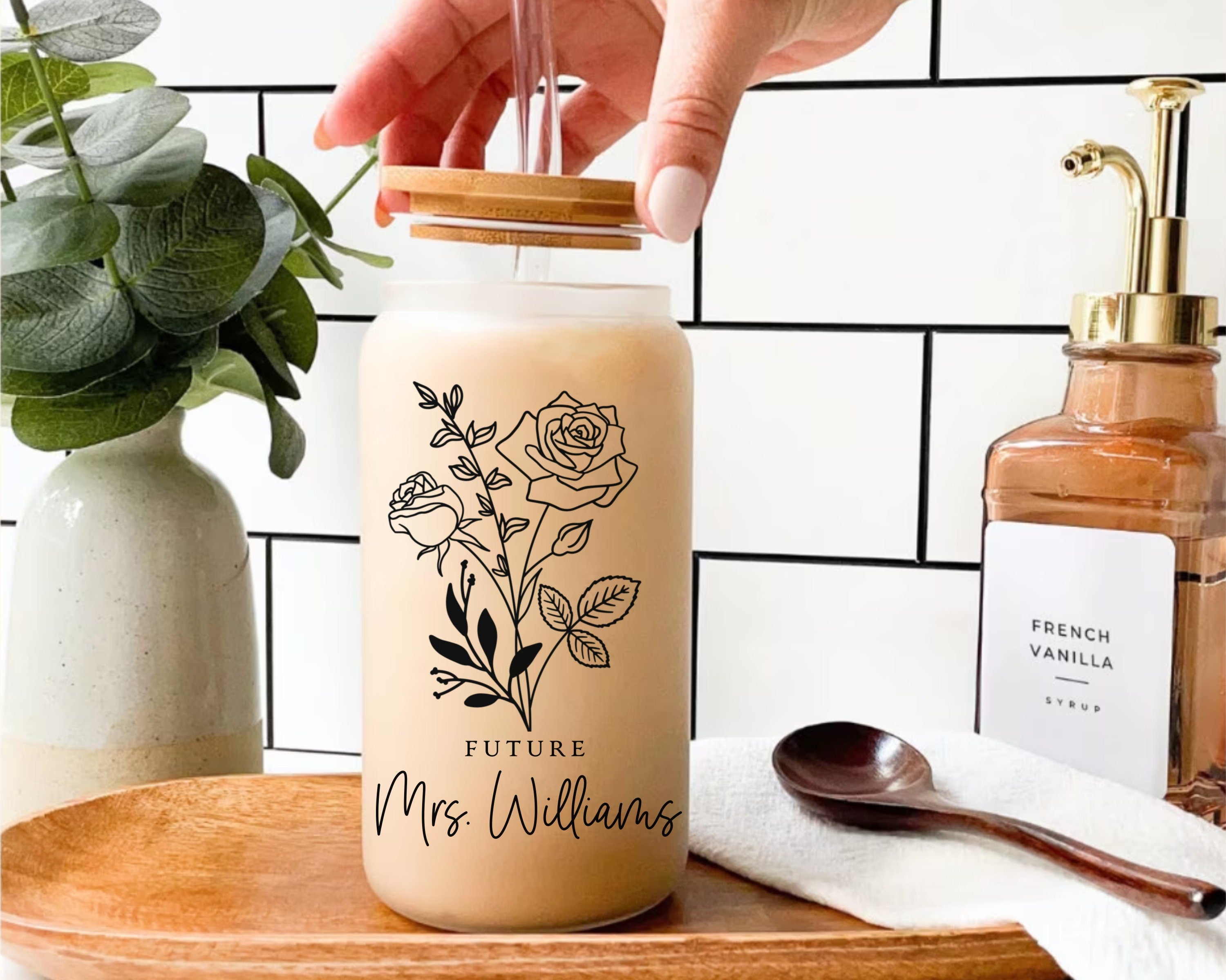 Personalized Future Mrs Coffee Glass Cup, Custom Engagement Gift, Bridal Shower Gift, Bride To Be, Fianc e Gift, Gift for Her