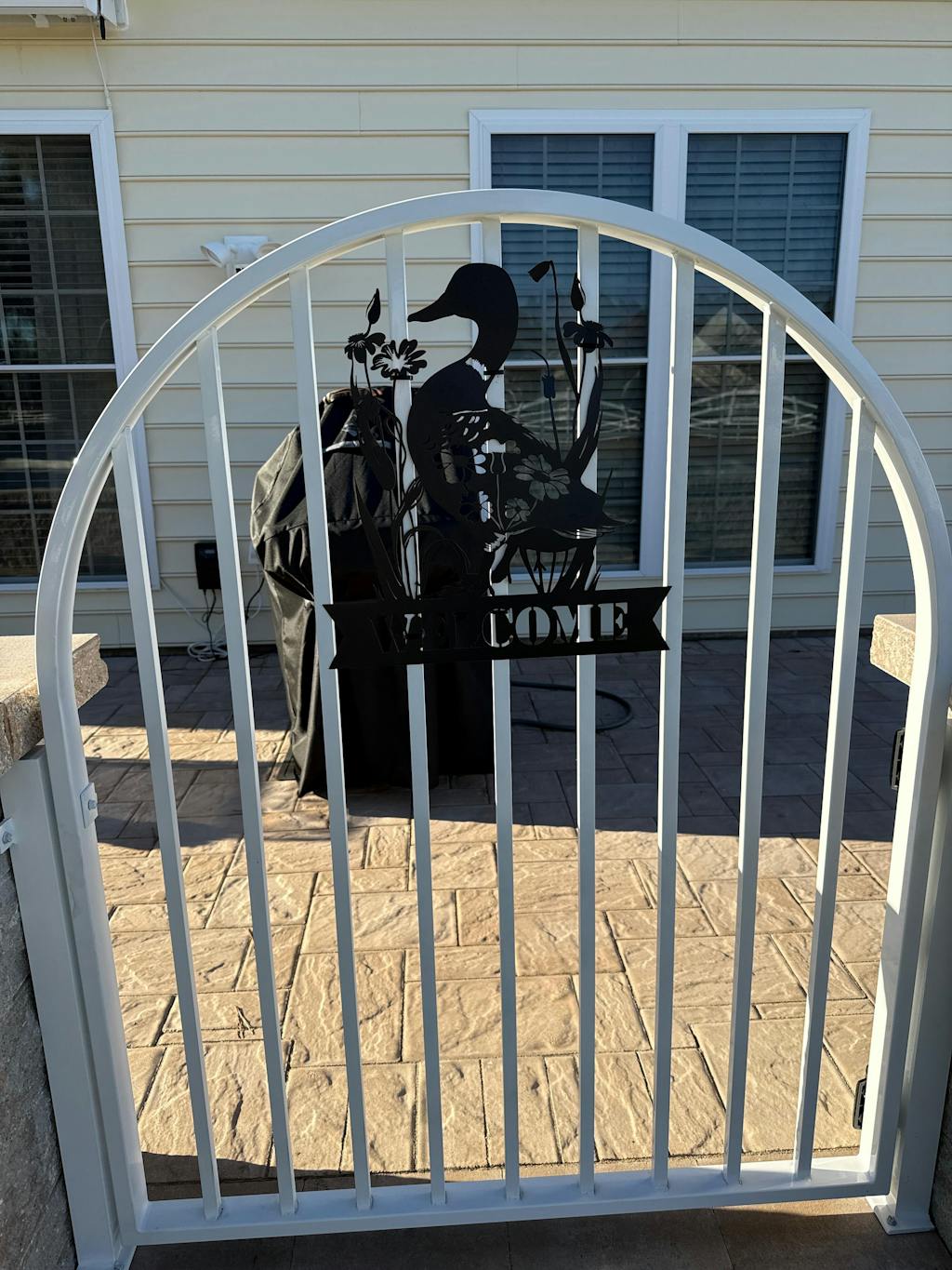 I love it; it’s perfect. Exactly as the photo appears. I hung it from my arch aluminum gate. I used zip ties to attach to the gate.