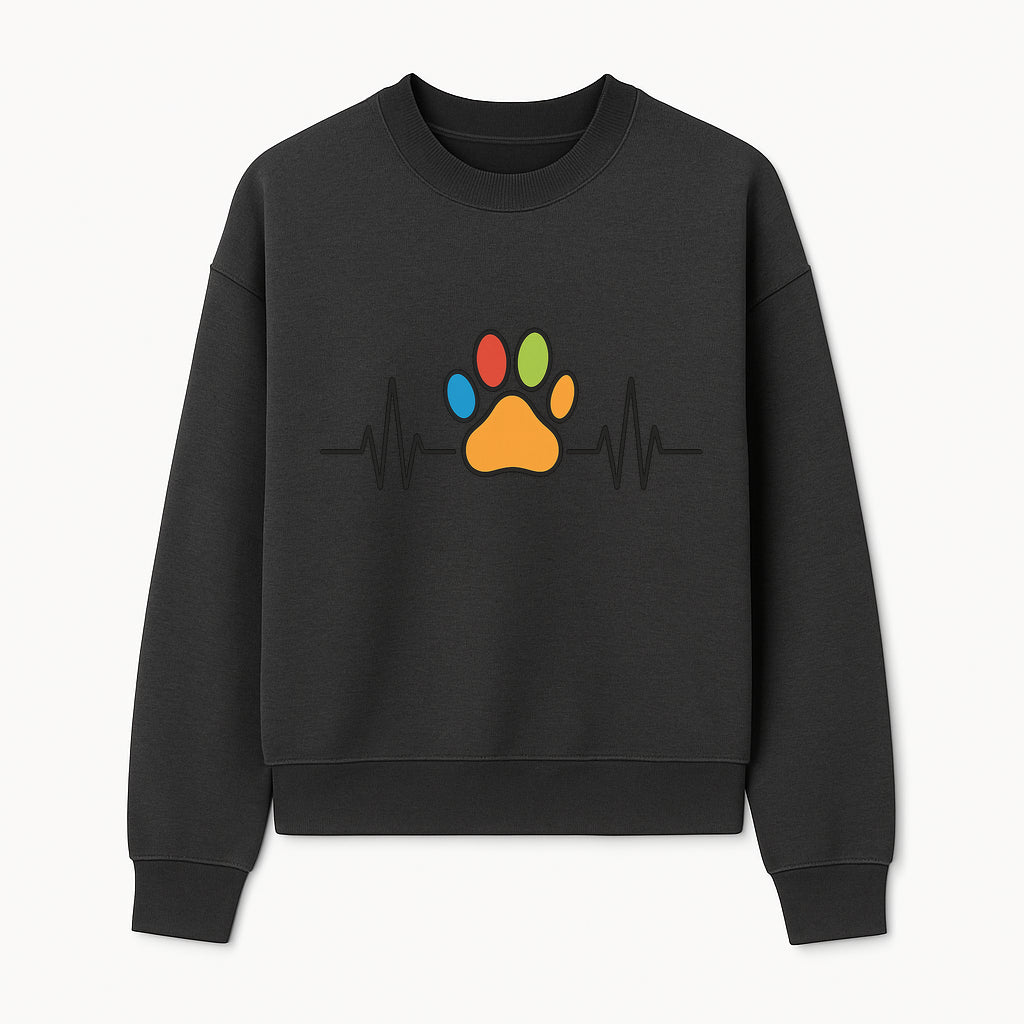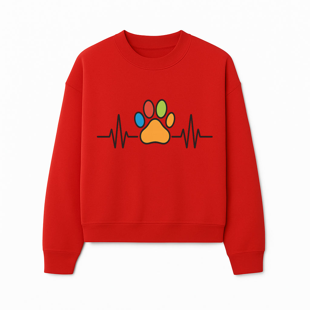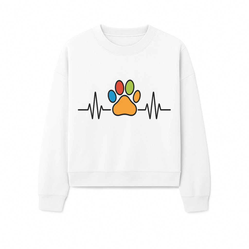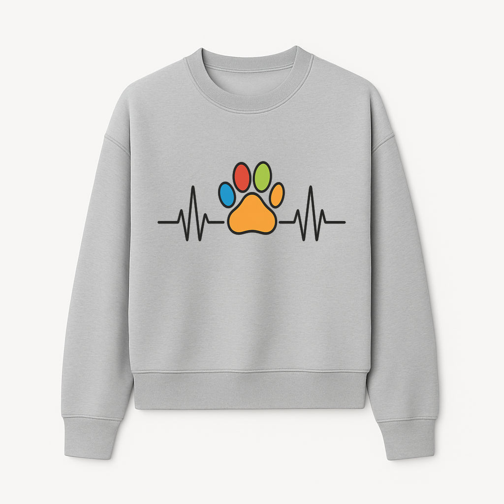 Colorful Paw Print with Heartbeat Design - Pet Lover's Wall Art, Canvas Print, Home Decor, Dog/Cat Owner Gift, Veterinary Theme - Sweatshirt