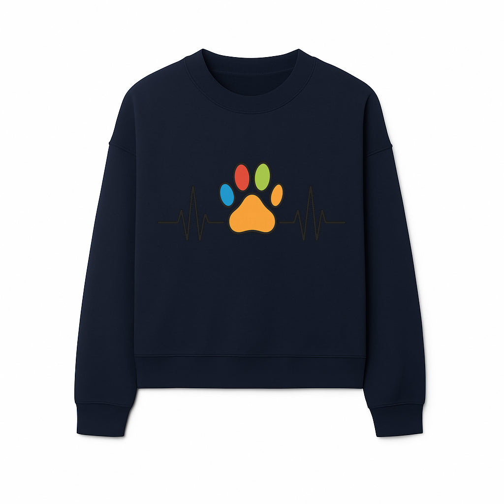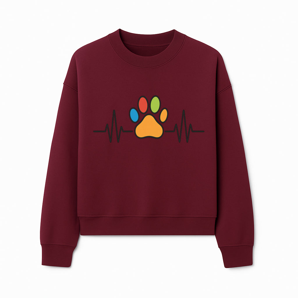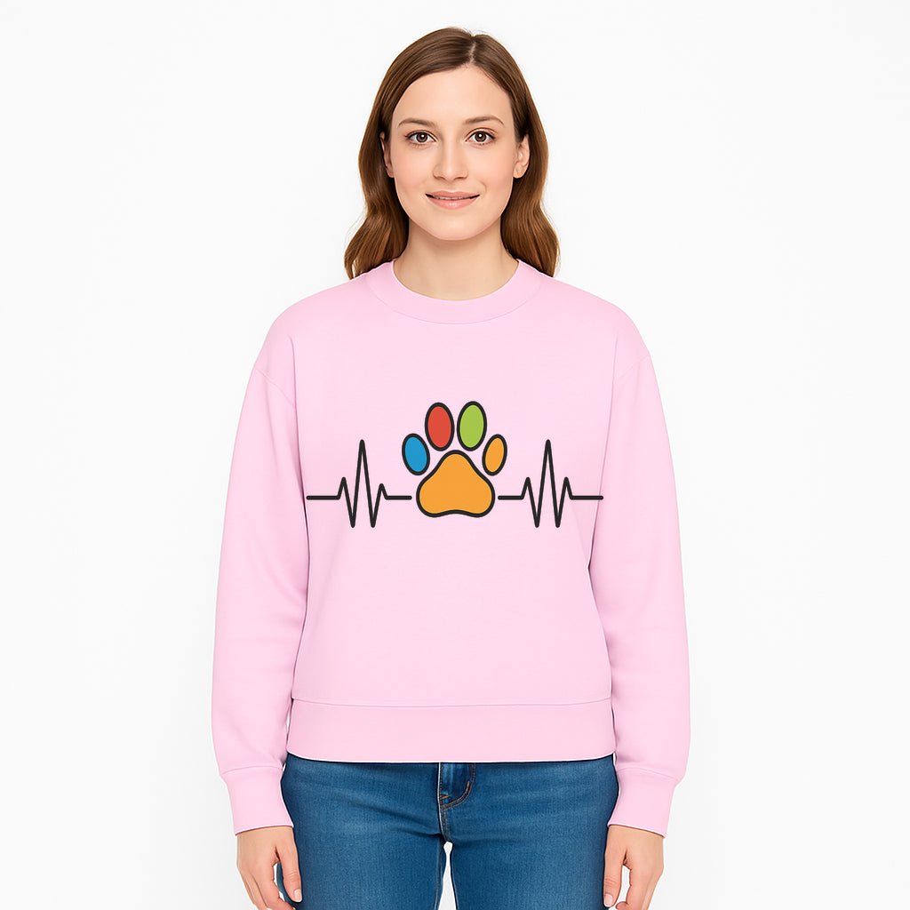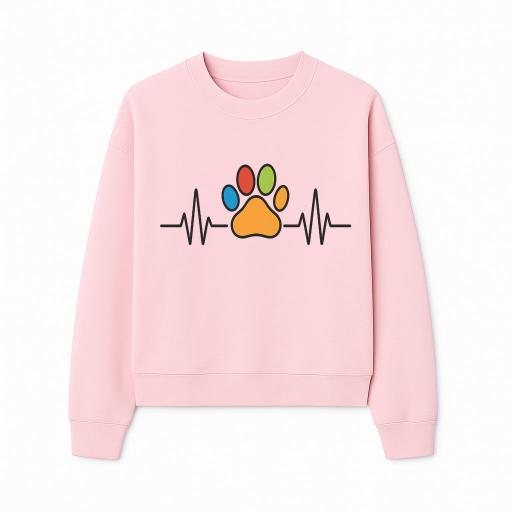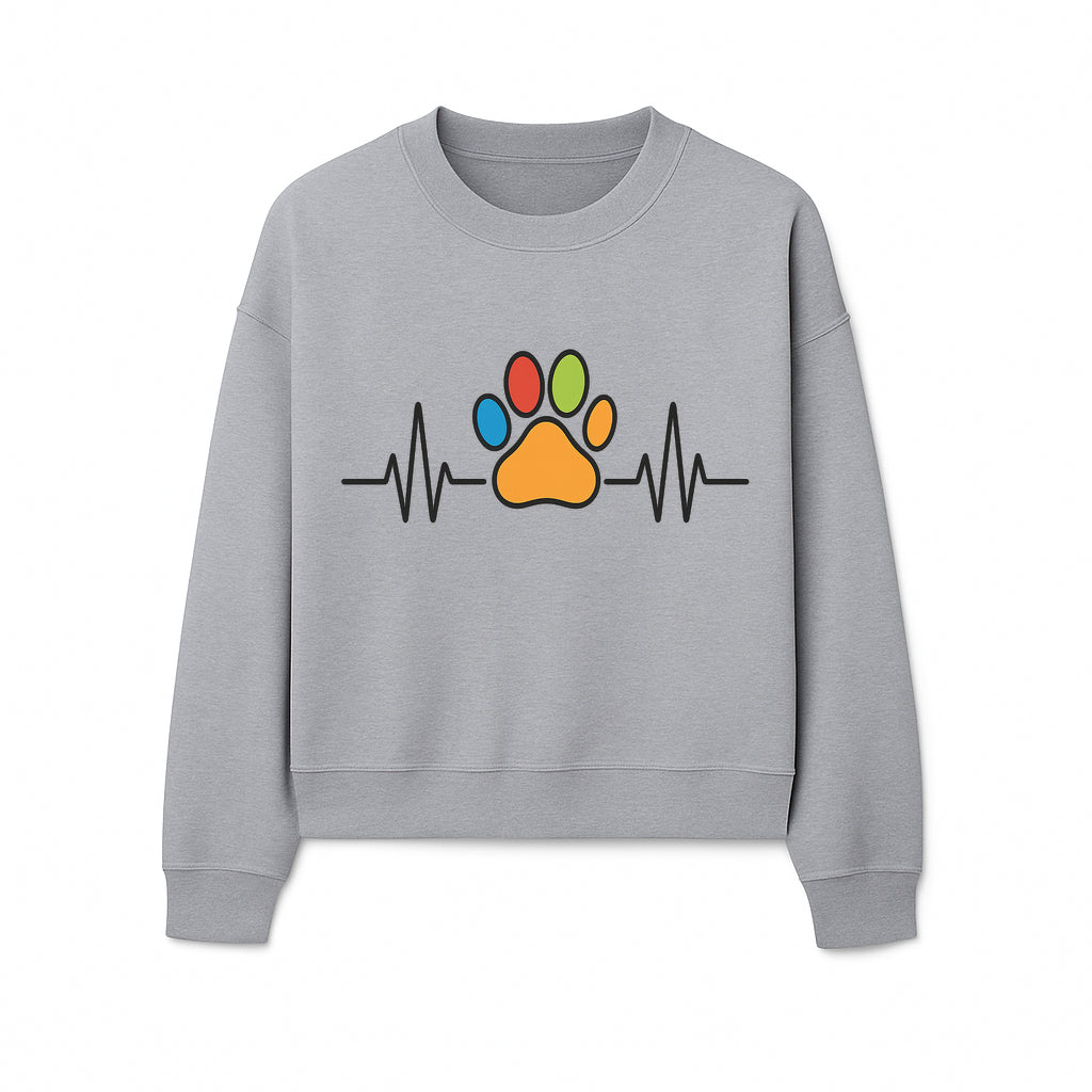 Colorful Paw Print with Heartbeat Design - Pet Lover's Wall Art, Canvas Print, Home Decor, Dog/Cat Owner Gift, Veterinary Theme - Sweatshirt