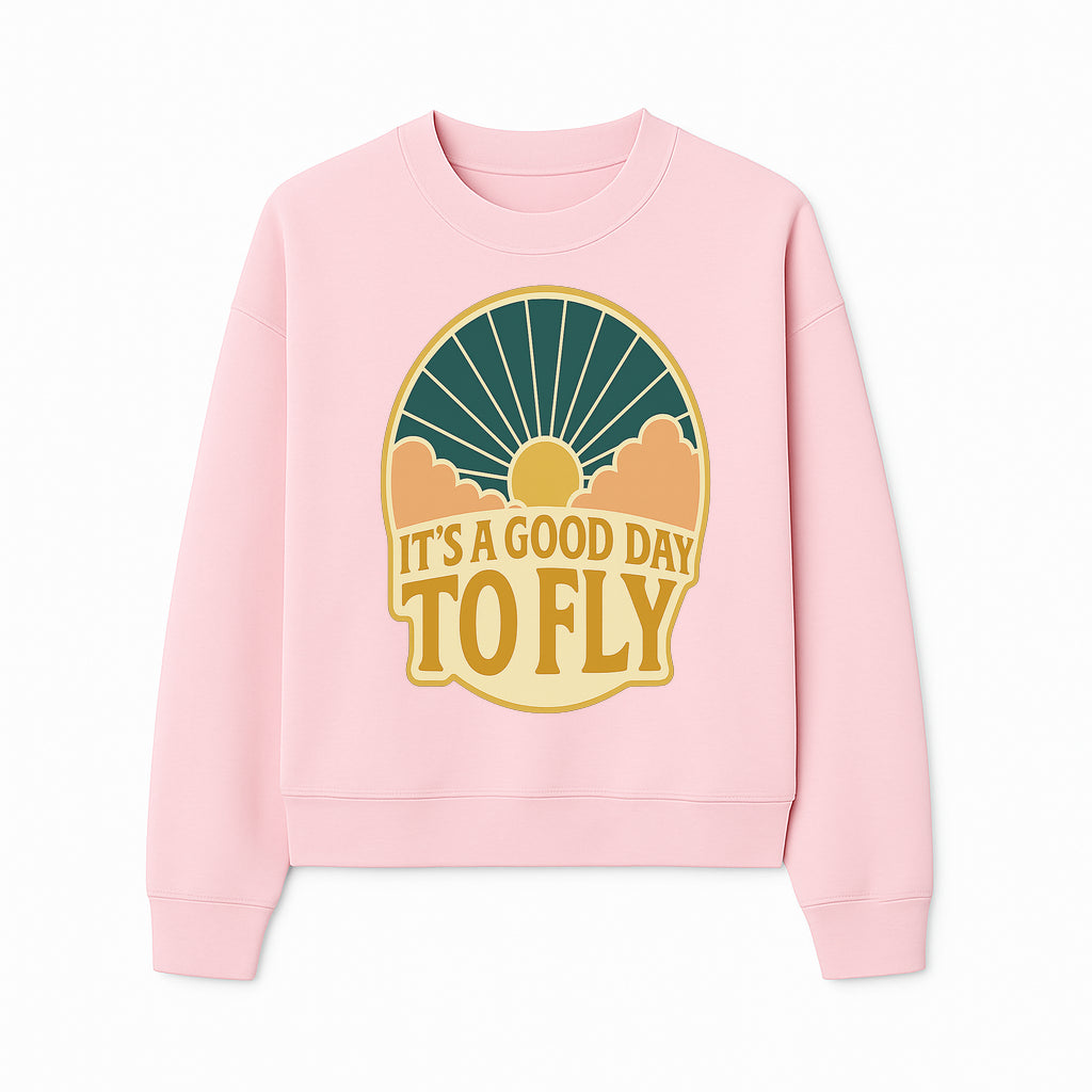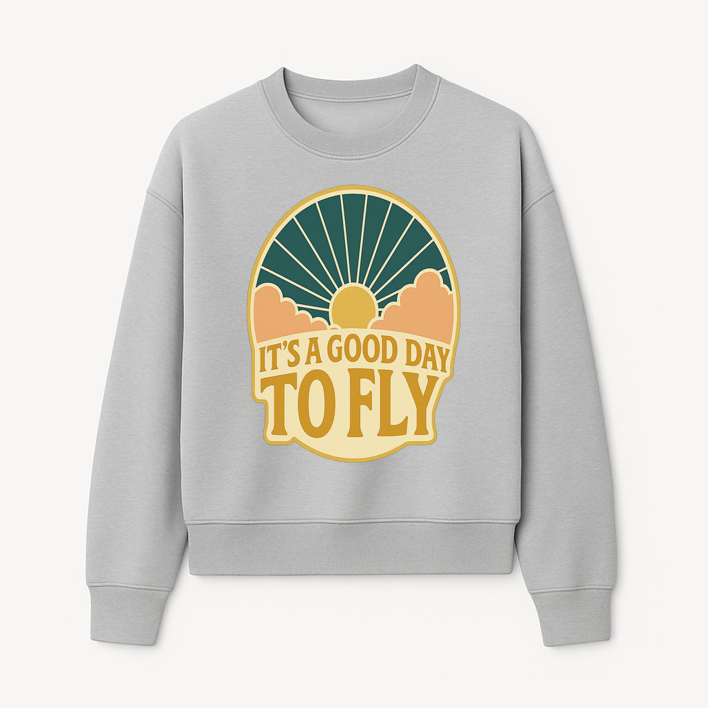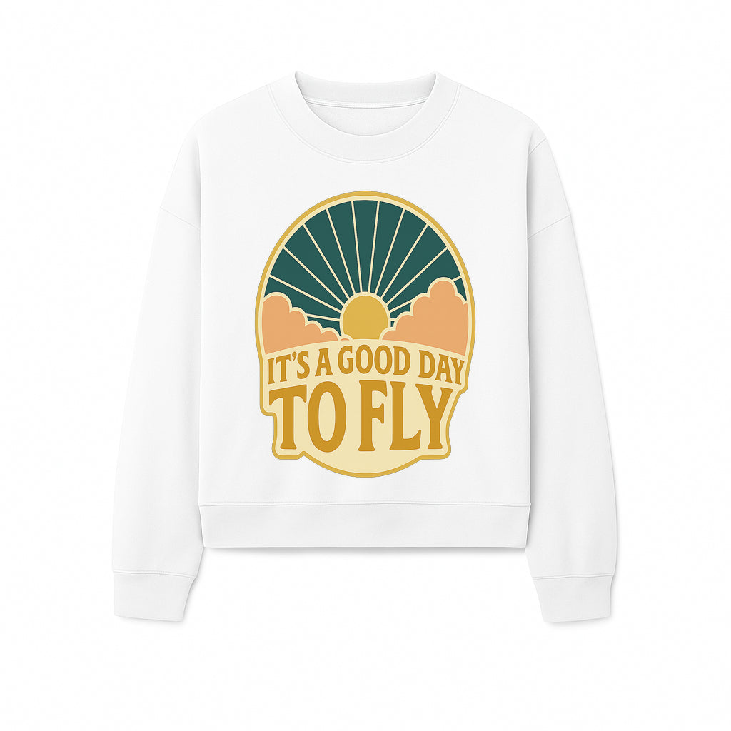 Vintage Style It's a Good Day to Fly Design - Sun and Clouds Graphic - Perfect for Aviation Enthusiasts, Travel Lovers, and Adventure Seekers - Sweatshirt